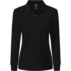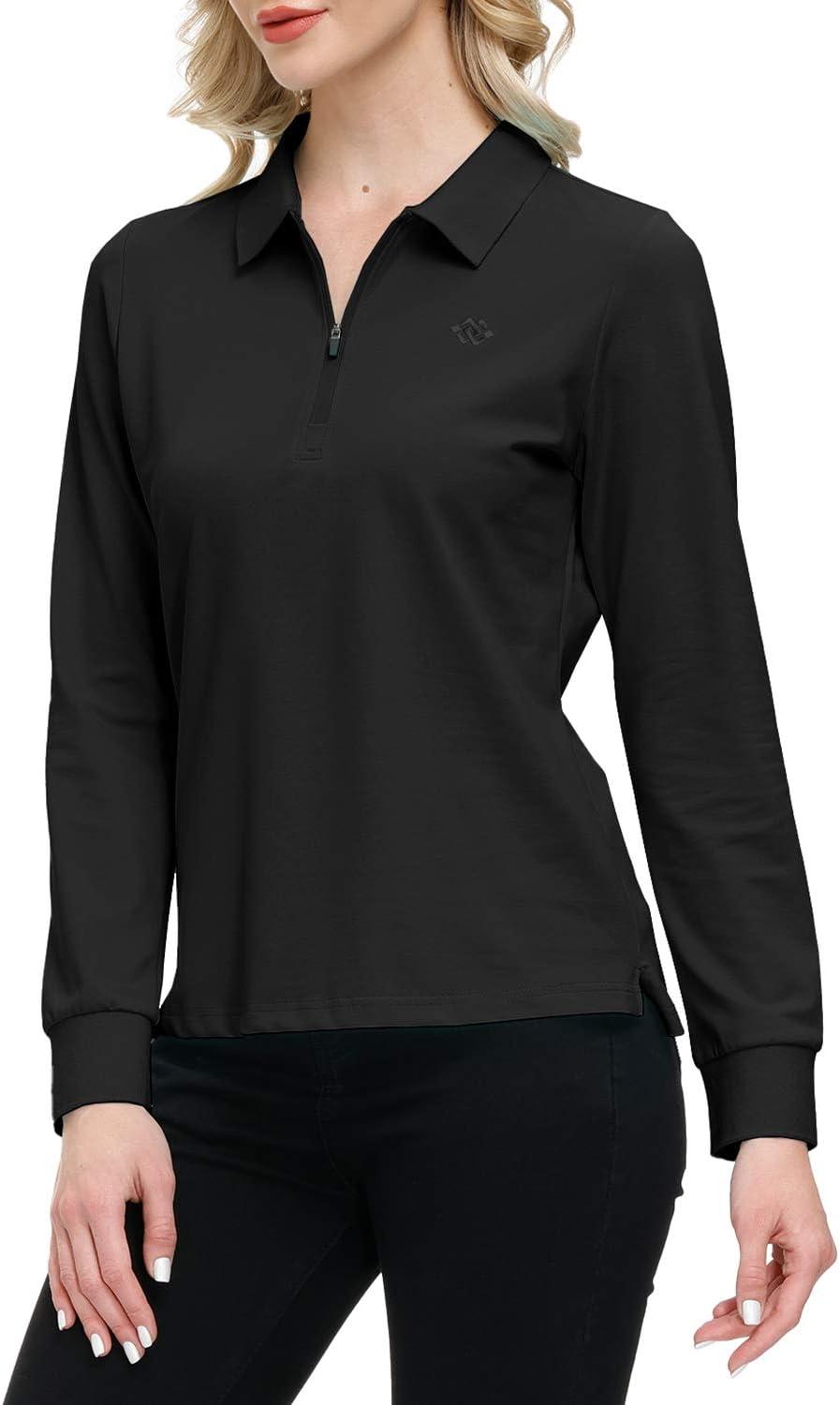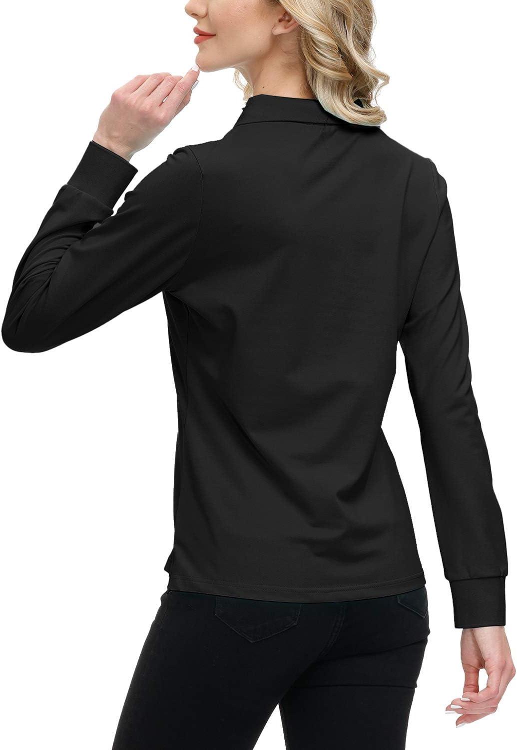 JINSHI Women’s Golf Polo Shirt Long Sleeves Zip Up Sport Active Shirts Quick Dry Athletic T-Shirt Casual Tennis Tops Slim Fit(Black)