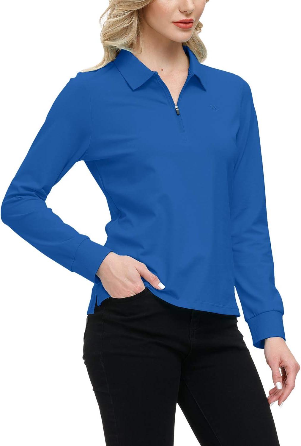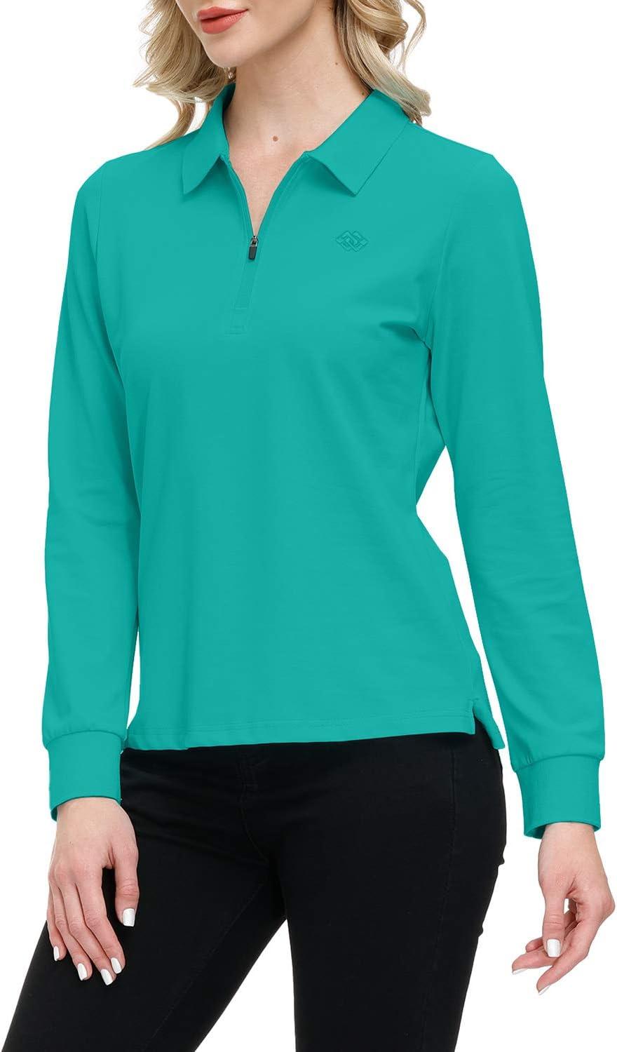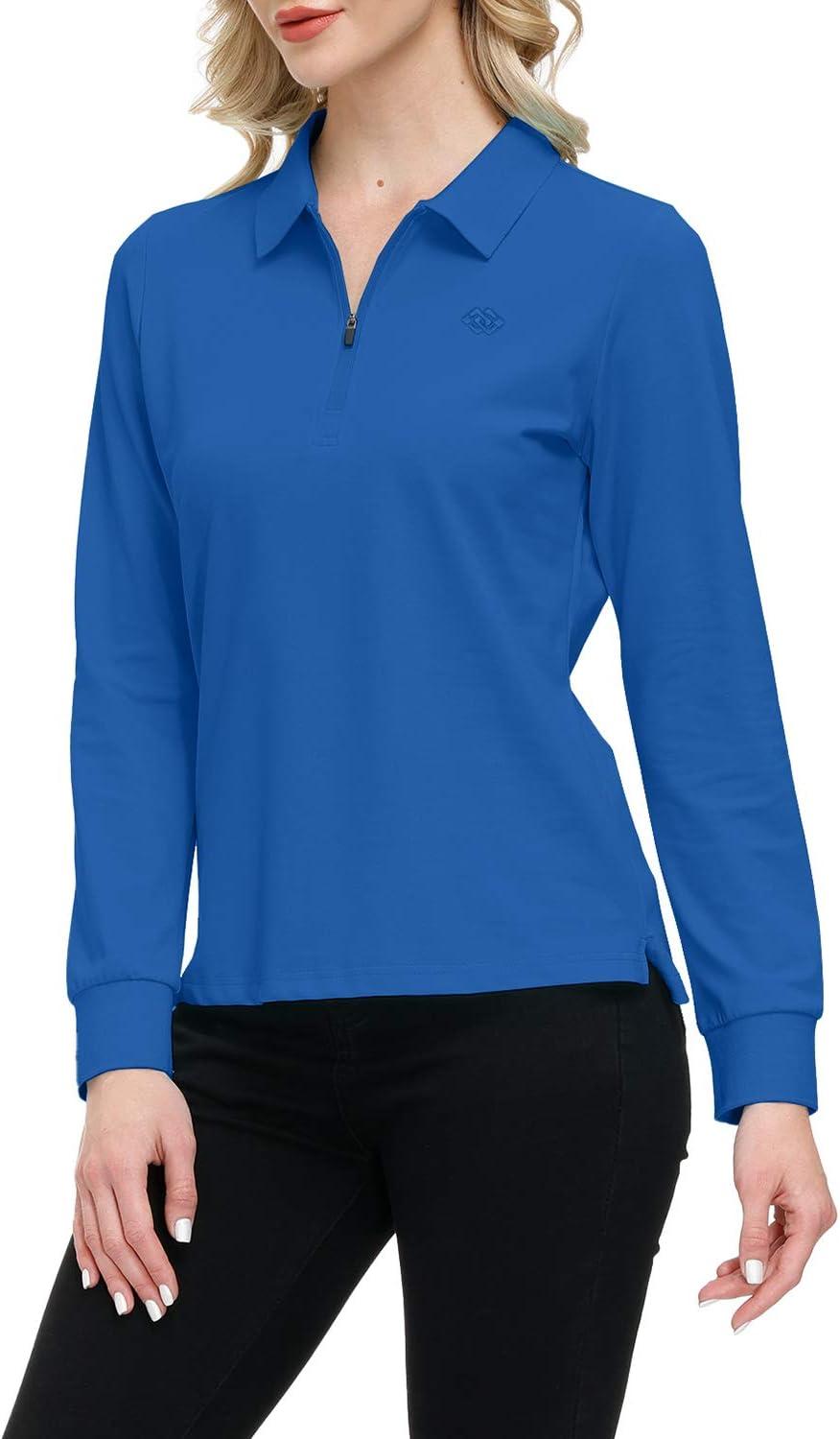 JINSHI Women’s Golf Polo Shirt Long Sleeves Zip Up Sport Active Shirts Quick Dry Athletic T-Shirt Casual Tennis Tops Slim Fit(Lake Blue)