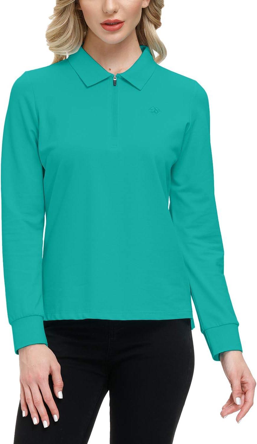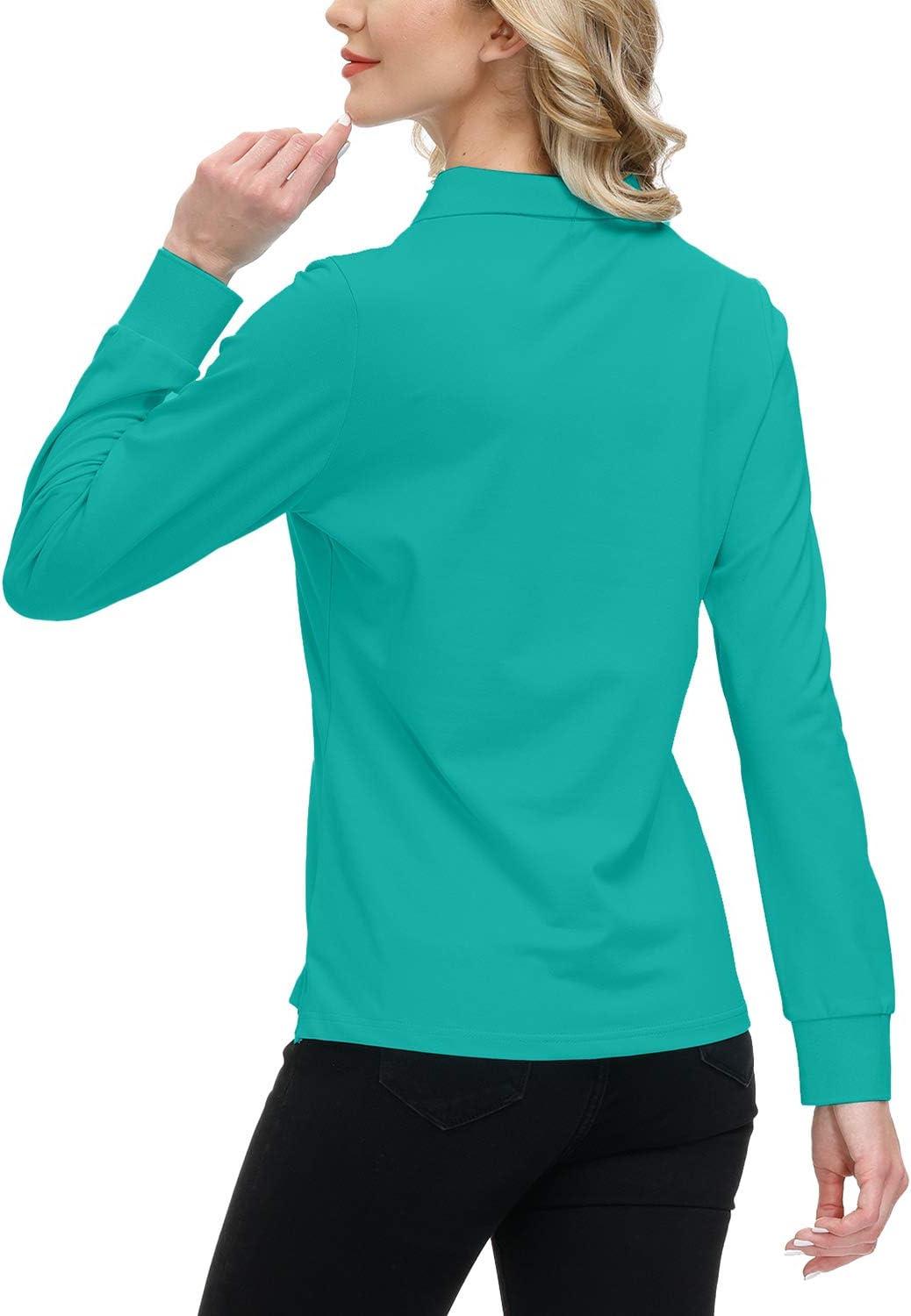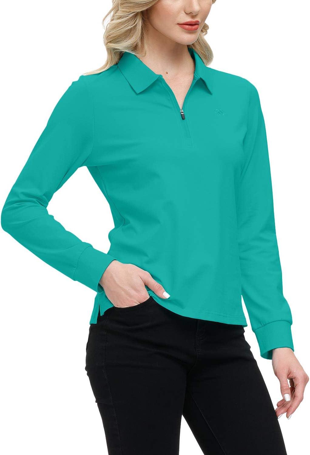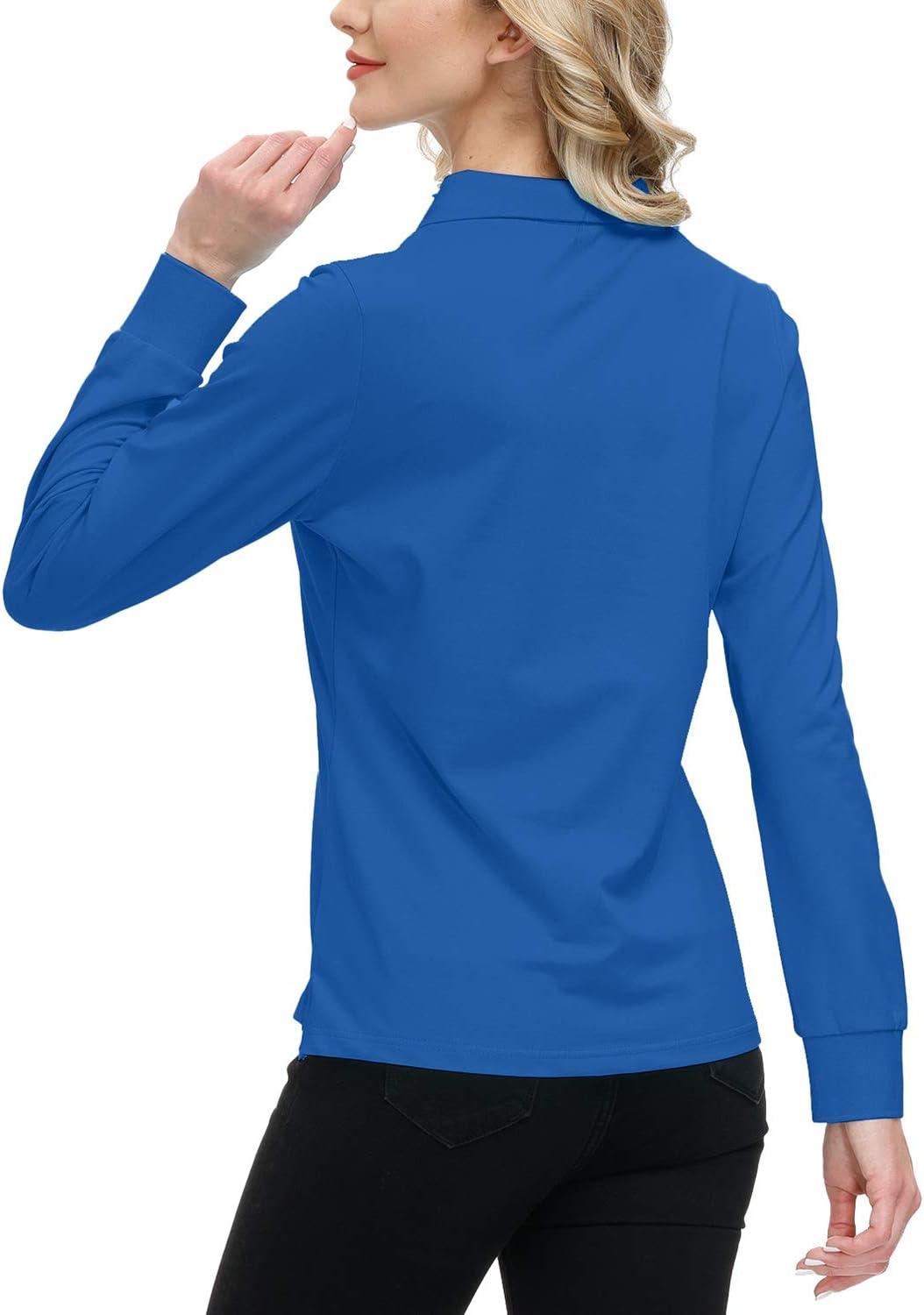 JINSHI Women’s Golf Polo Shirt Long Sleeves Zip Up Sport Active Shirts Quick Dry Athletic T-Shirt Casual Tennis Tops Slim Fit(Lake Blue)