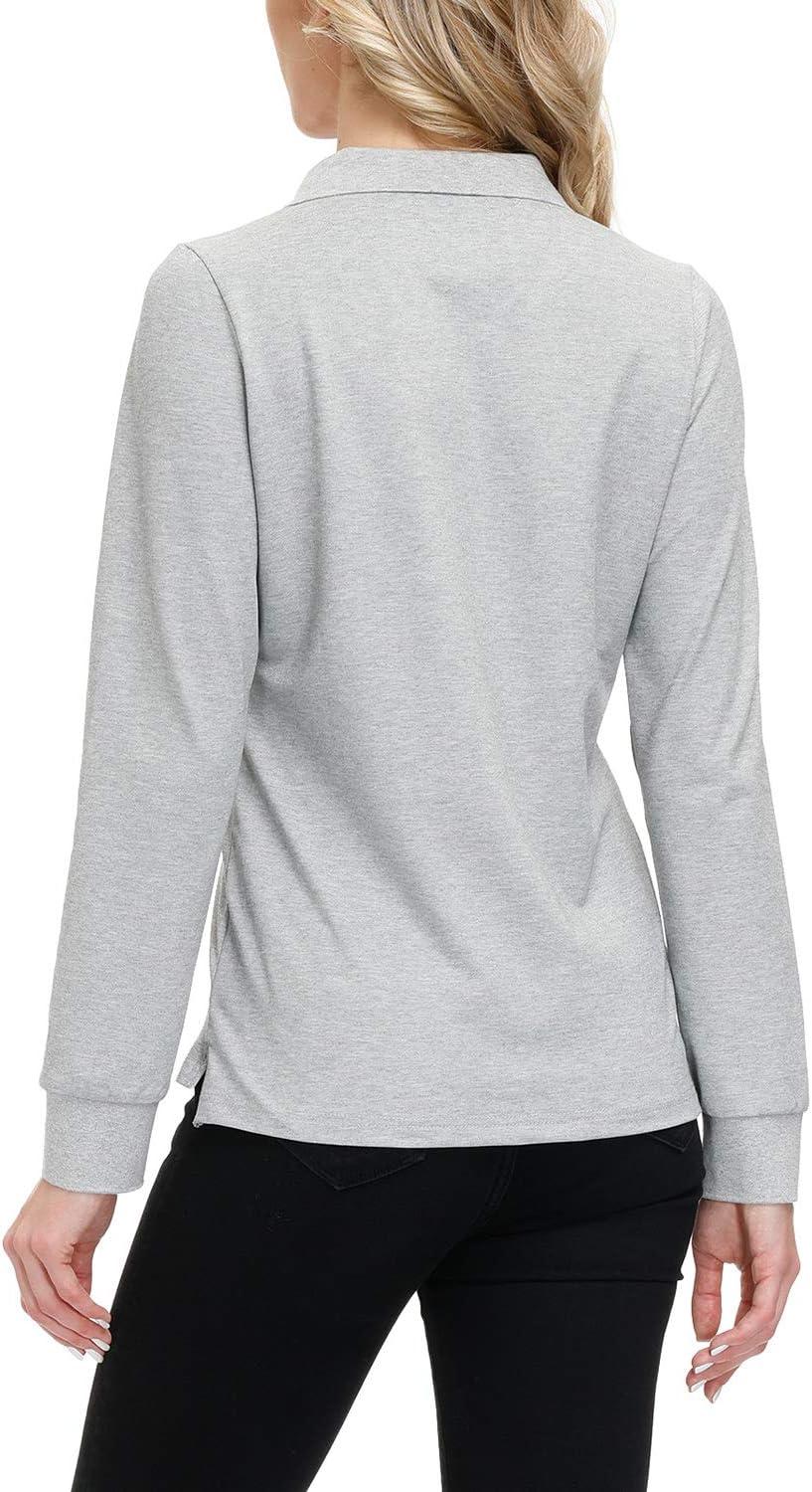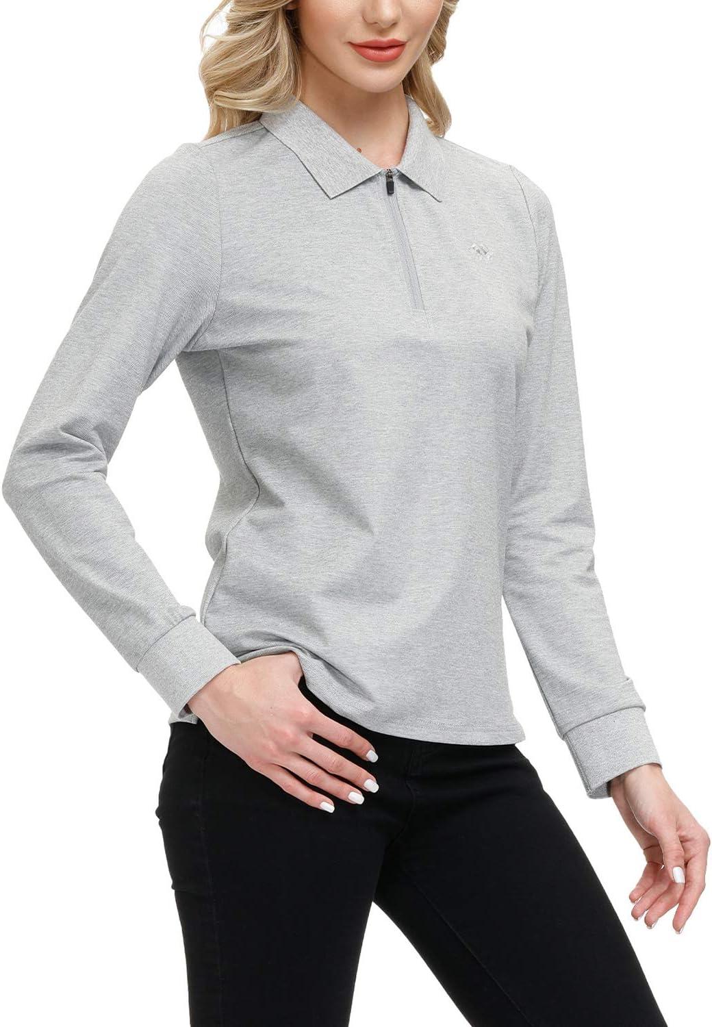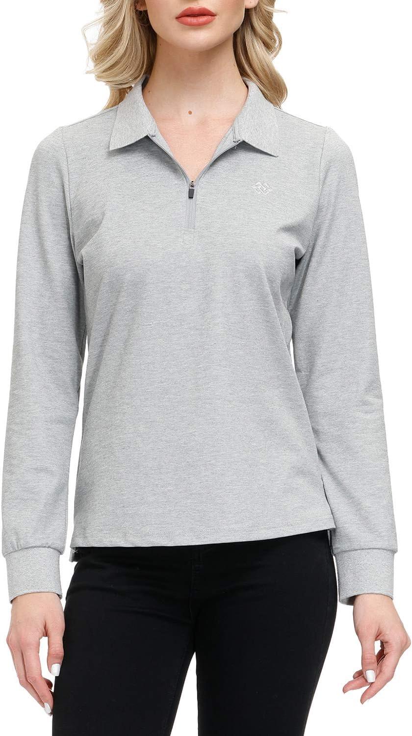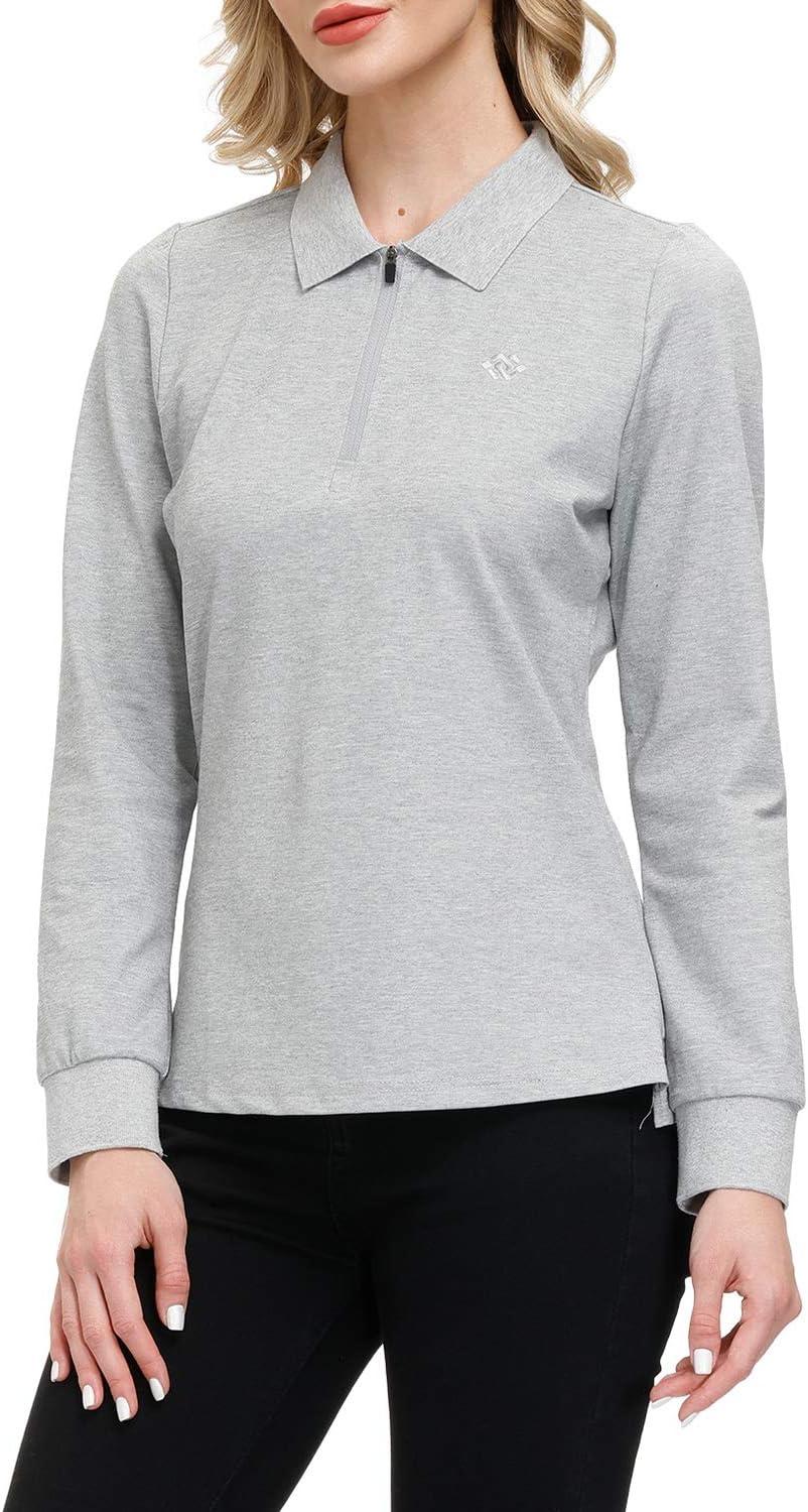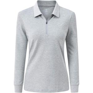 JINSHI Women’s Golf Polo Shirt Long Sleeves Zip Up Sport Active Shirts Quick Dry Athletic T-Shirt Casual Tennis Tops Slim Fit(Grey)