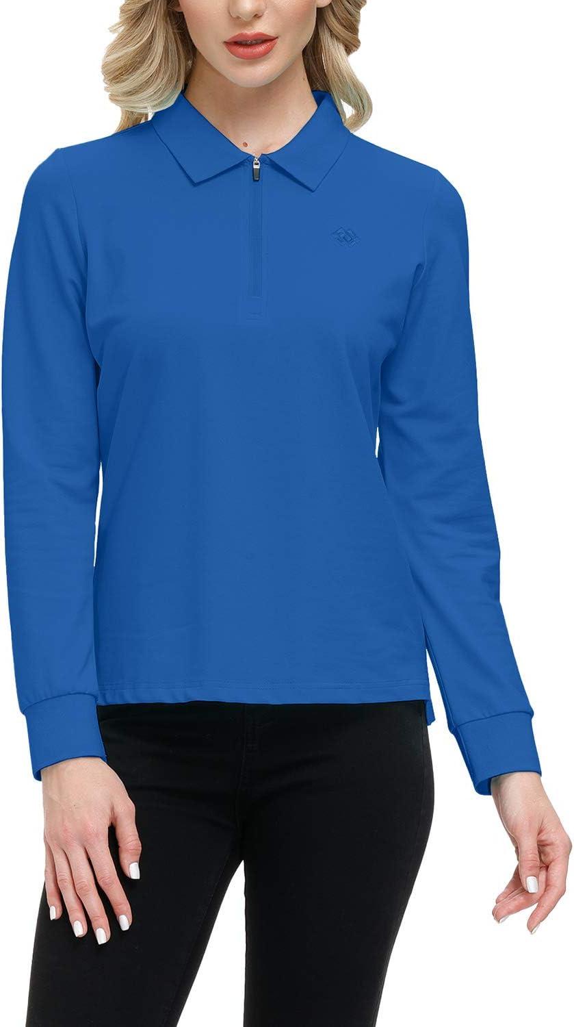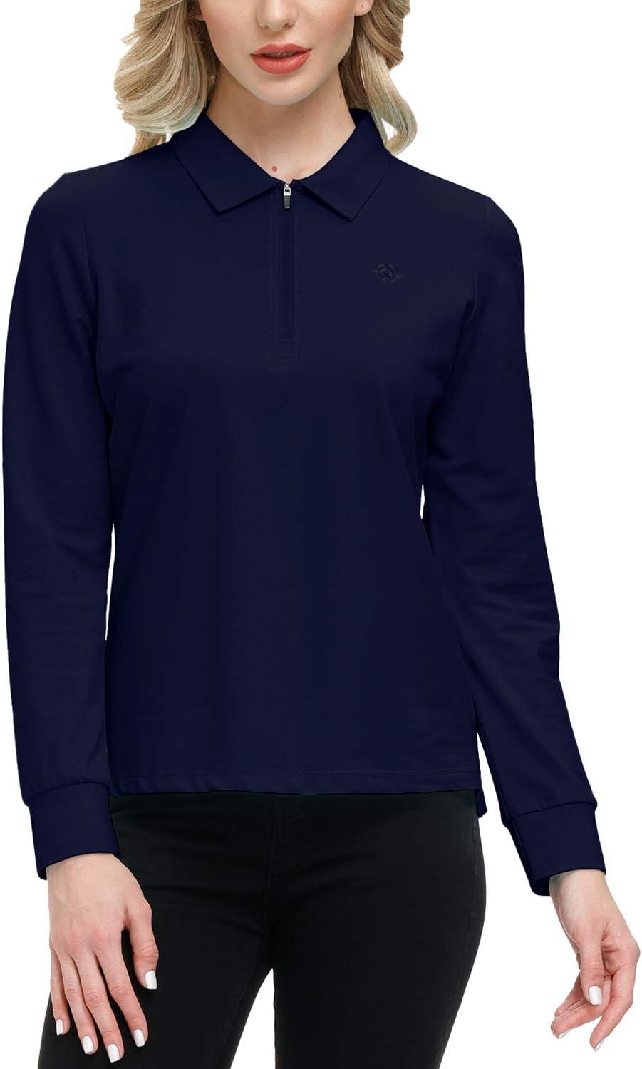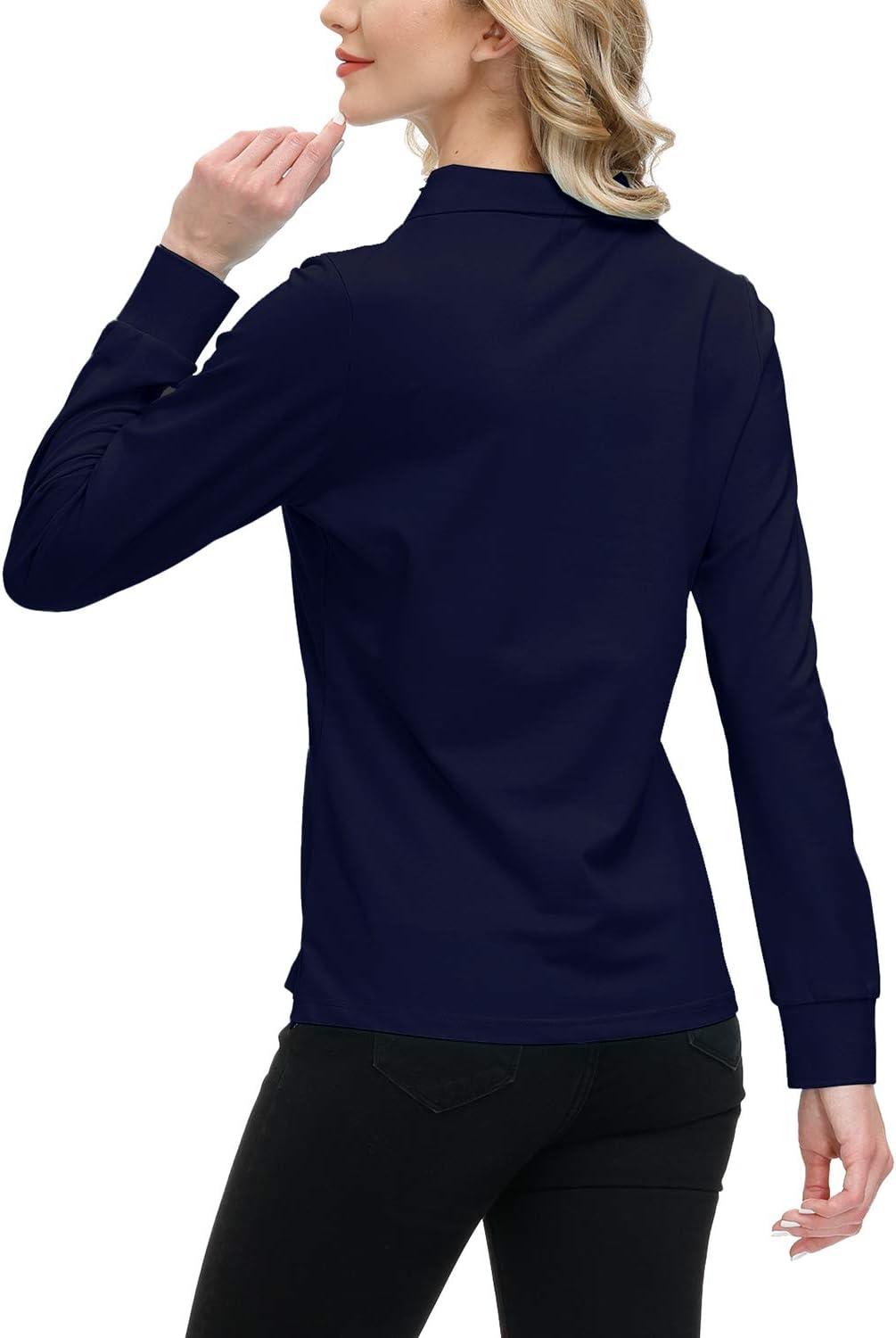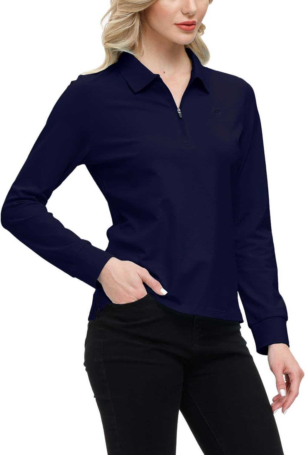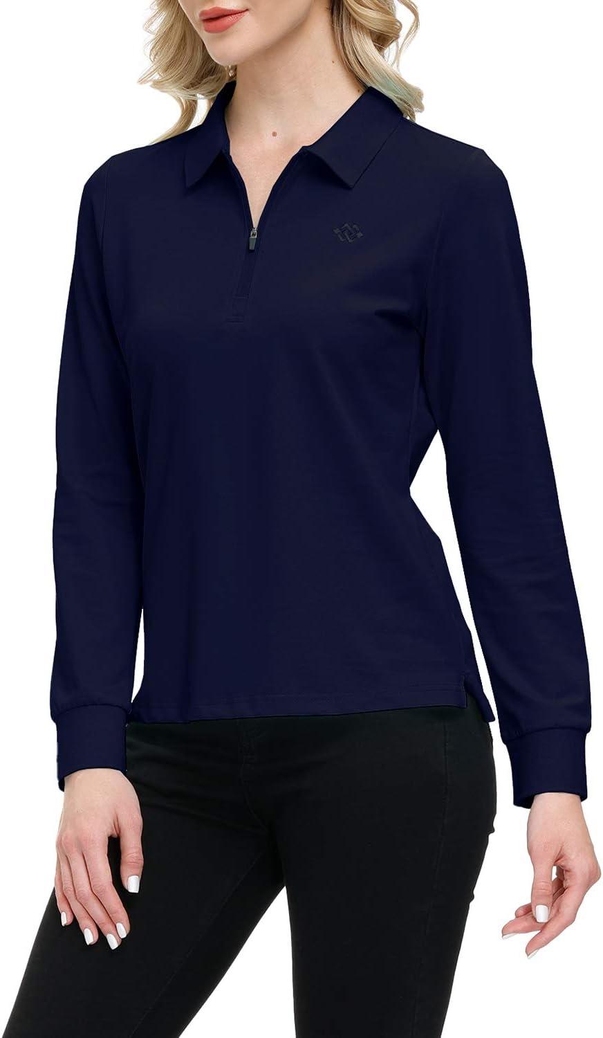 JINSHI Women’s Golf Polo Shirt Long Sleeves Zip Up Sport Active Shirts Quick Dry Athletic T-Shirt Casual Tennis Tops Slim Fit(Navy Blue)