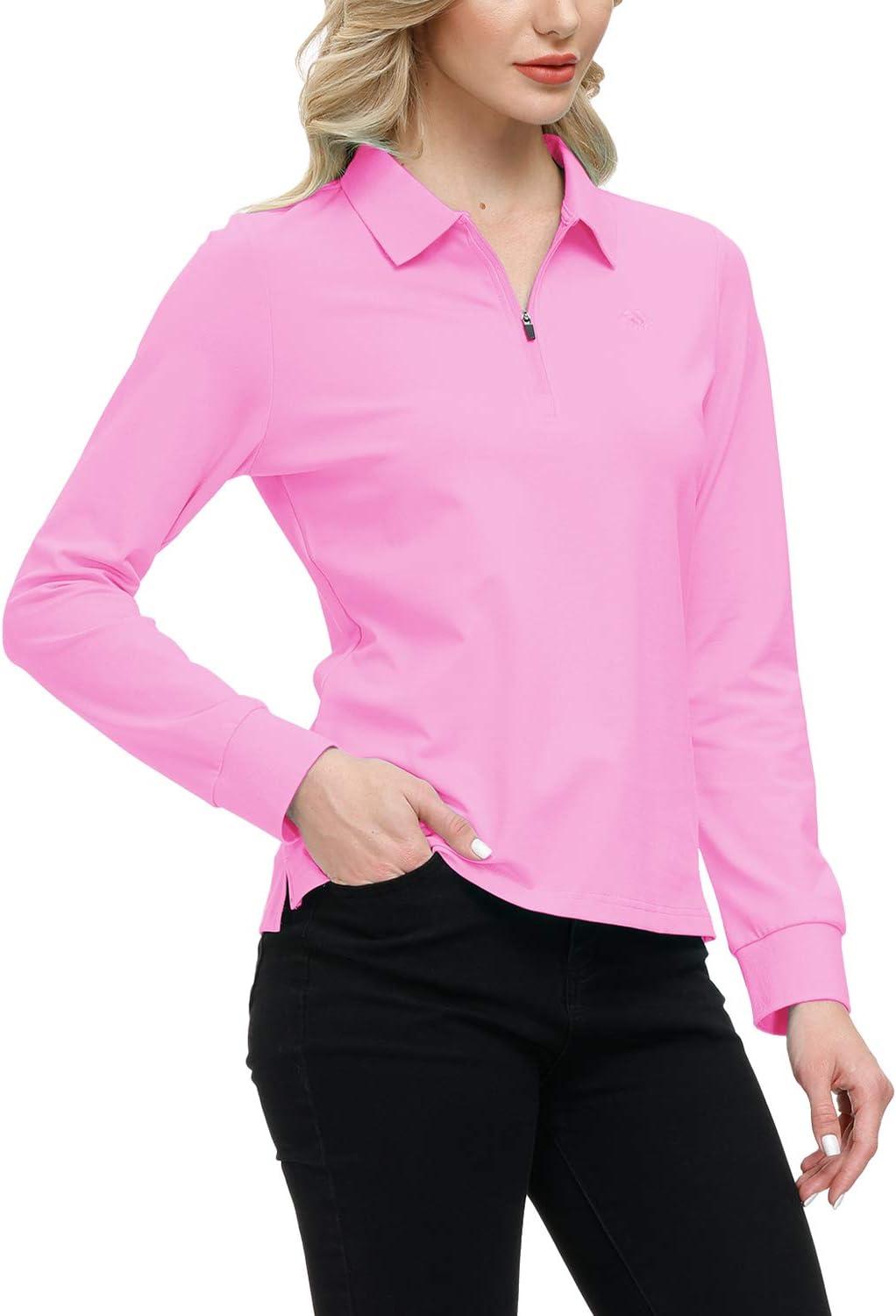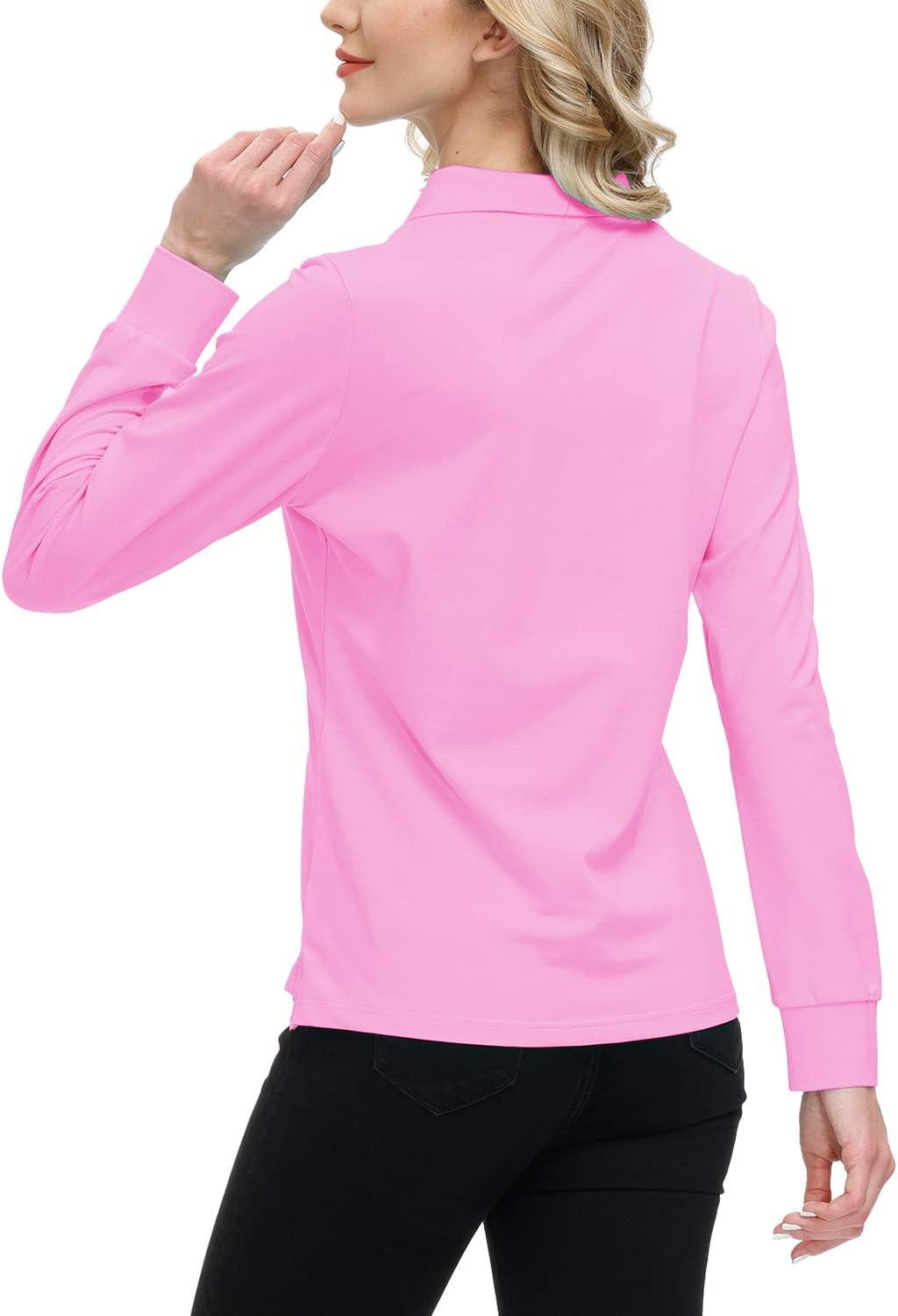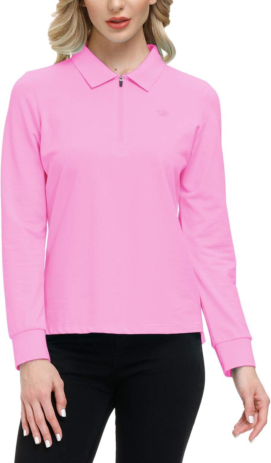 JINSHI Women’s Golf Polo Shirt Long Sleeves Zip Up Sport Active Shirts Quick Dry Athletic T-Shirt Casual Tennis Tops Slim Fit(Pink)