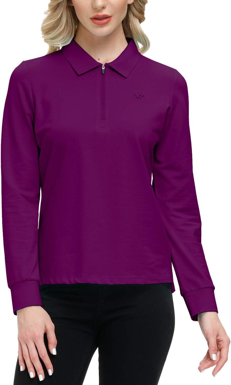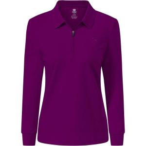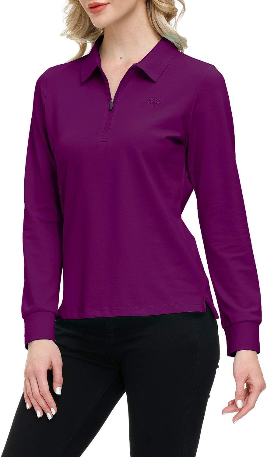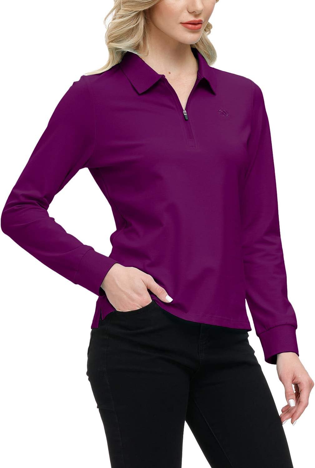 JINSHI Women’s Golf Polo Shirt Long Sleeves Zip Up Sport Active Shirts Quick Dry Athletic T-Shirt Casual Tennis Tops Slim Fit(Purple)