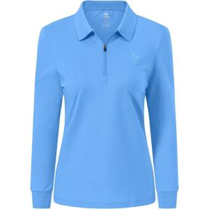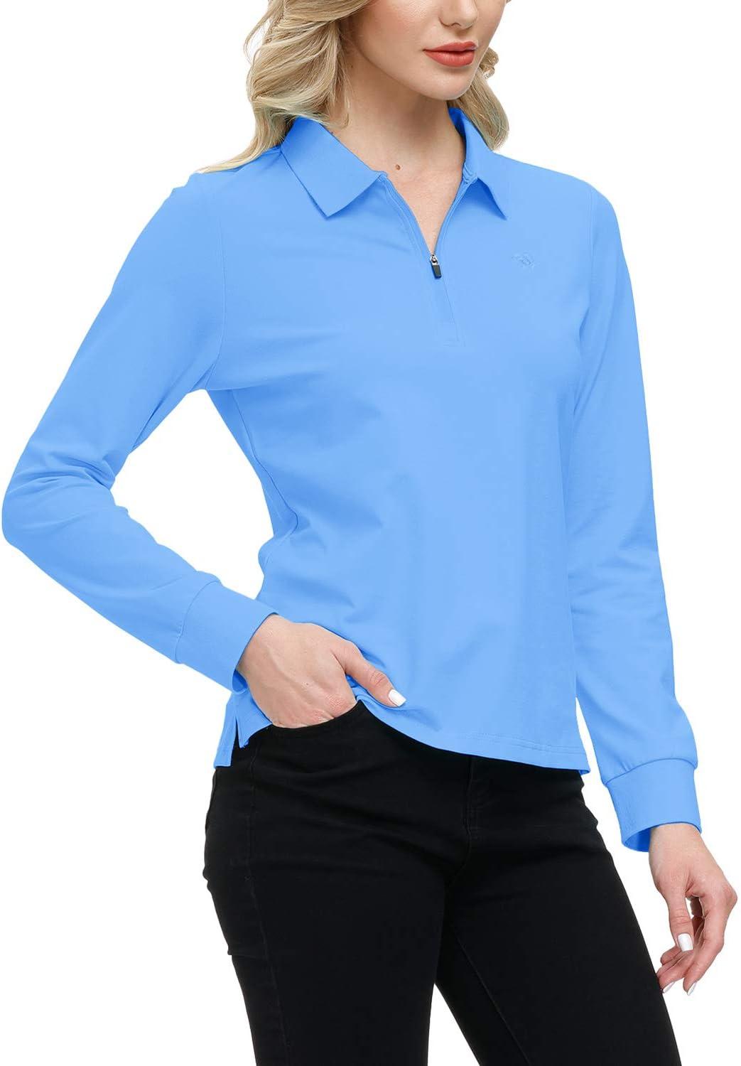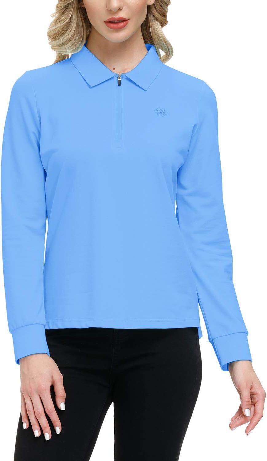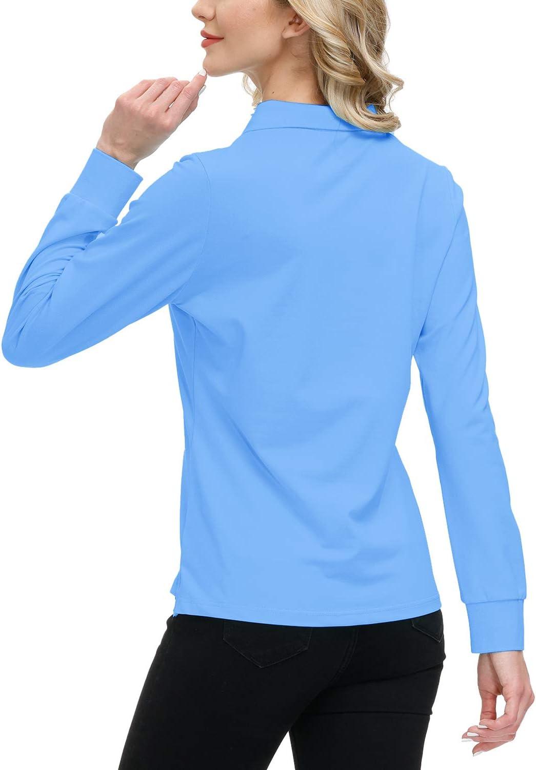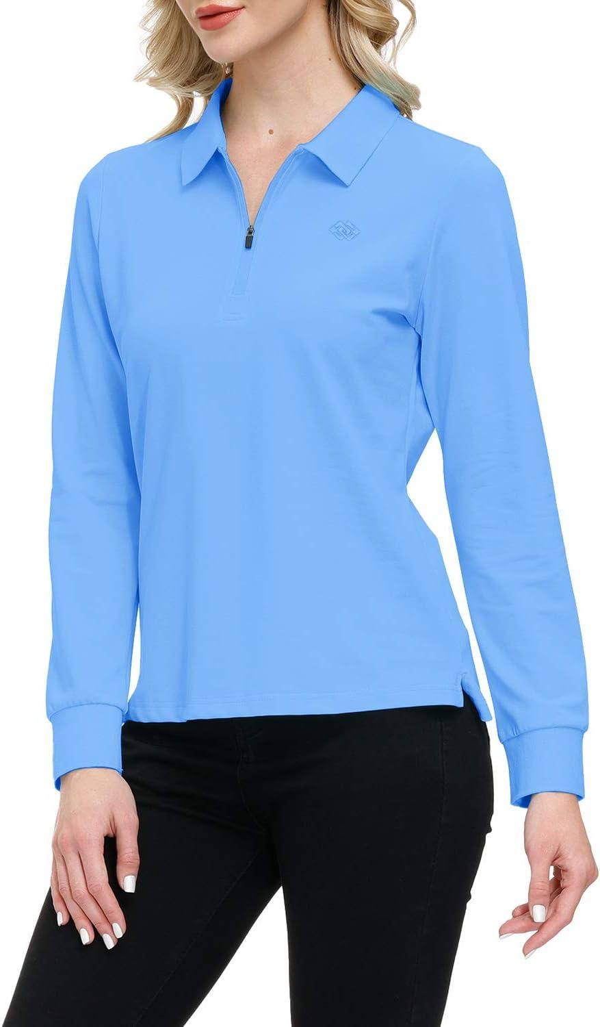 JINSHI Women’s Golf Polo Shirt Long Sleeves Zip Up Sport Active Shirts Quick Dry Athletic T-Shirt Casual Tennis Tops Slim Fit(Sky Blue)