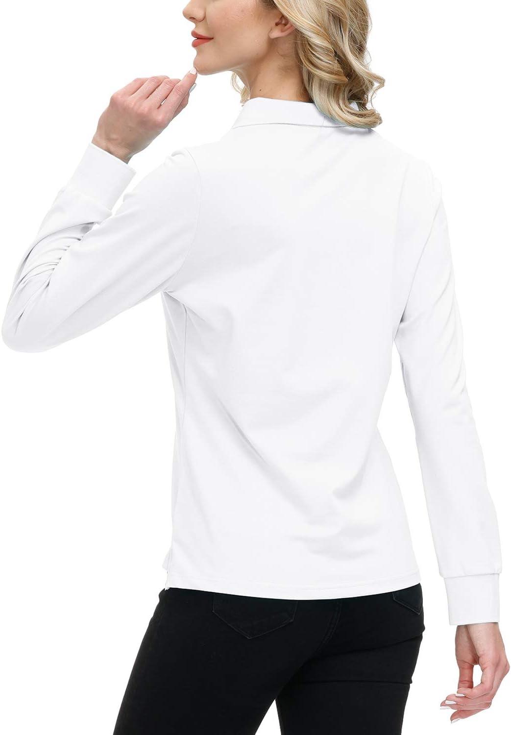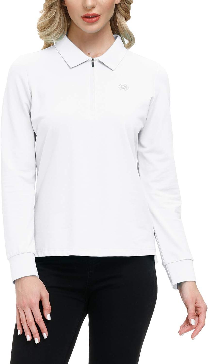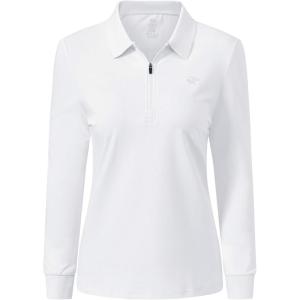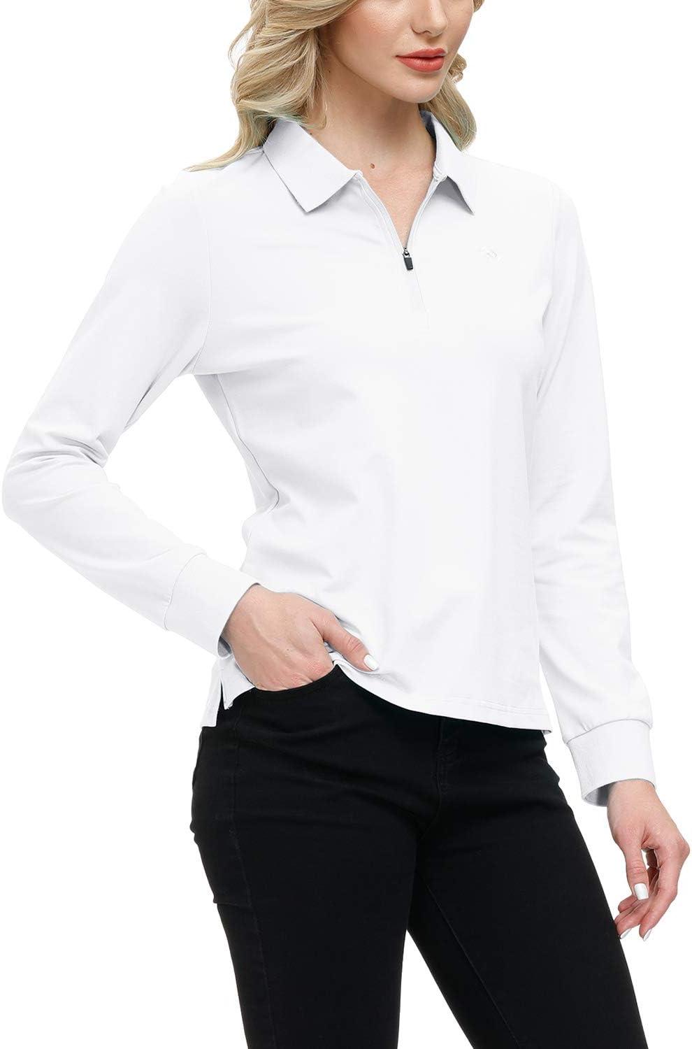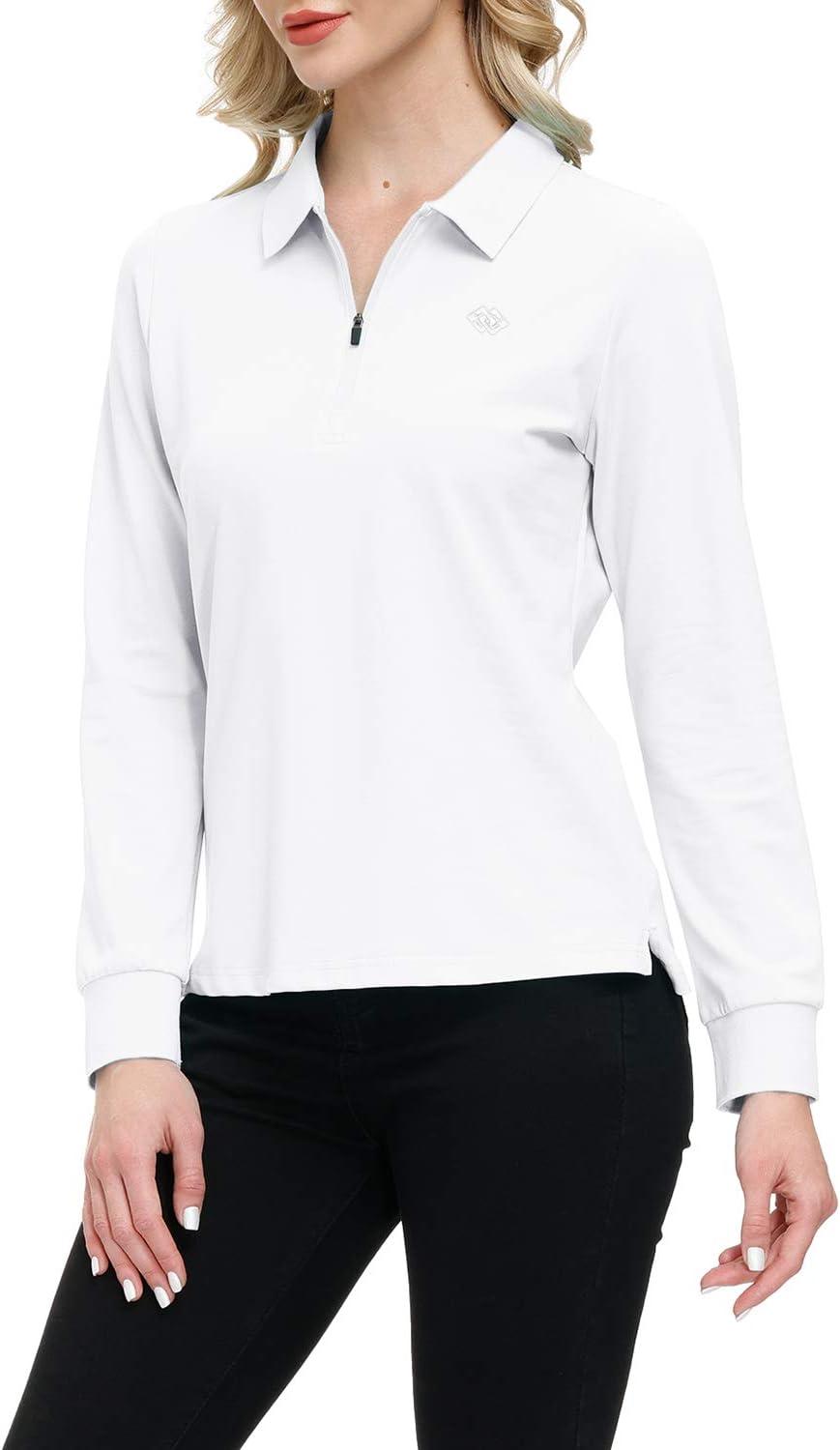 JINSHI Women’s Golf Polo Shirt Long Sleeves Zip Up Sport Active Shirts Quick Dry Athletic T-Shirt Casual Tennis Tops Slim Fit(White)