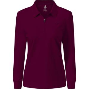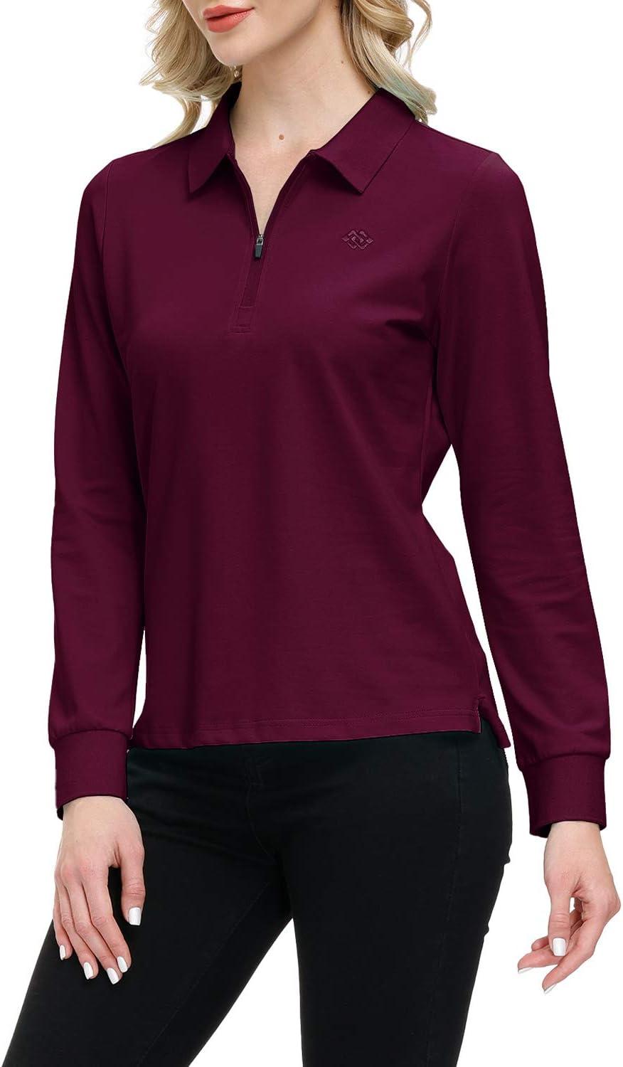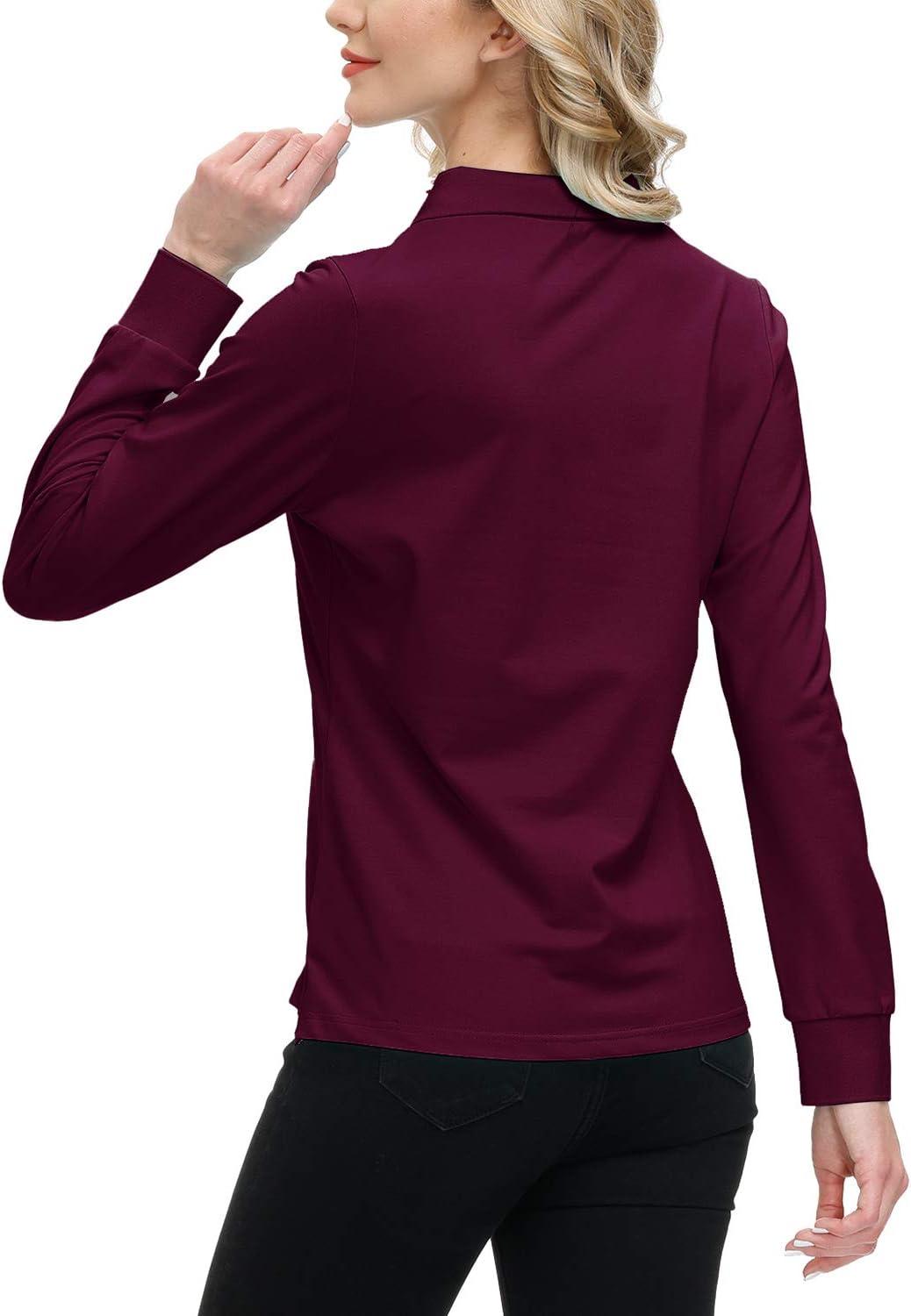 JINSHI Women’s Golf Polo Shirt Long Sleeves Zip Up Sport Active Shirts Quick Dry Athletic T-Shirt Casual Tennis Tops Slim Fit(Wine Red)