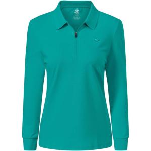 JINSHI Women’s Golf Polo Shirt Long Sleeves Zip Up Sport Active Shirts Quick Dry Athletic T-Shirt Casual Tennis Tops Slim Fit(Green)