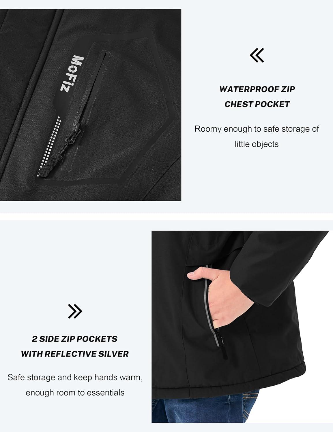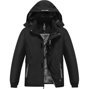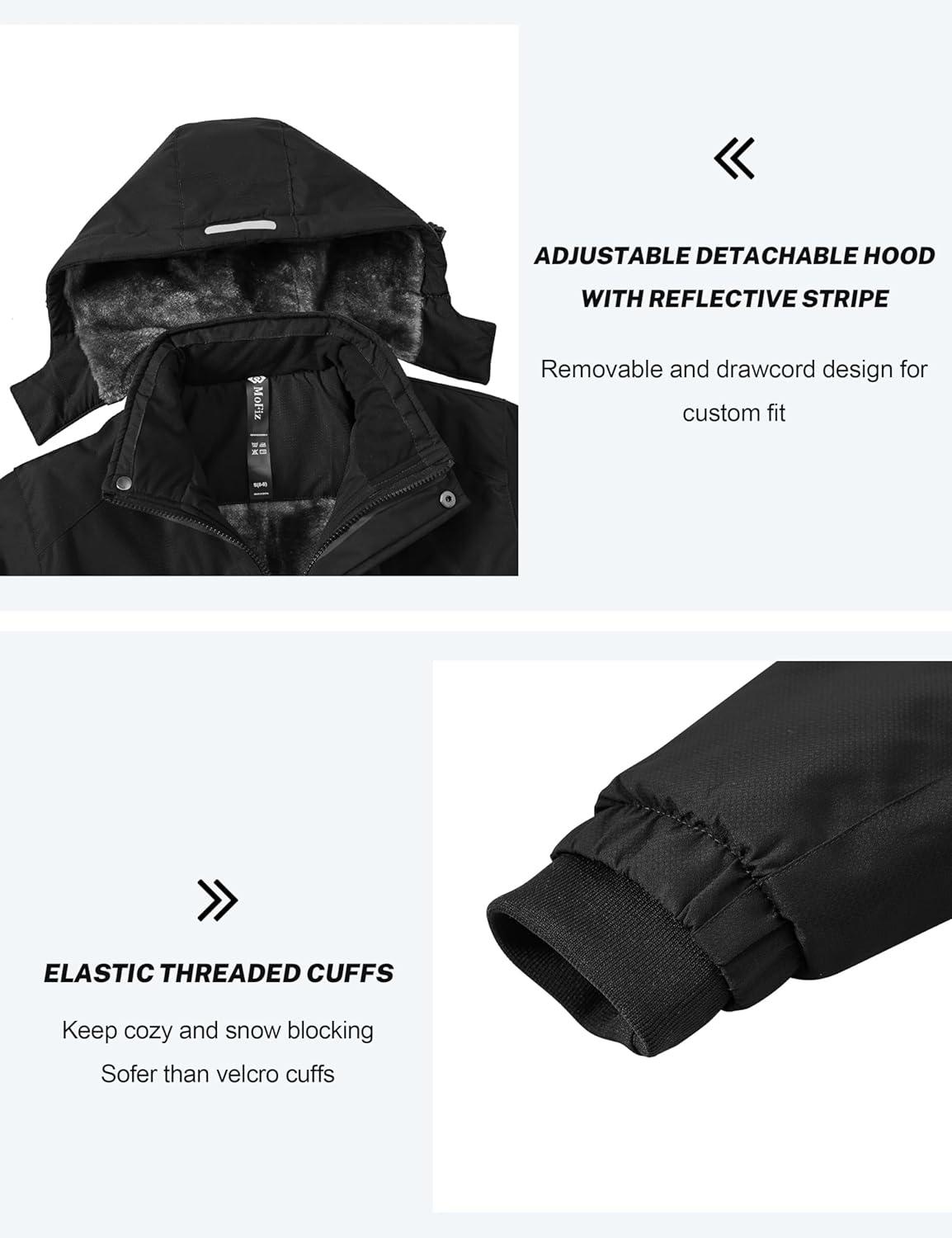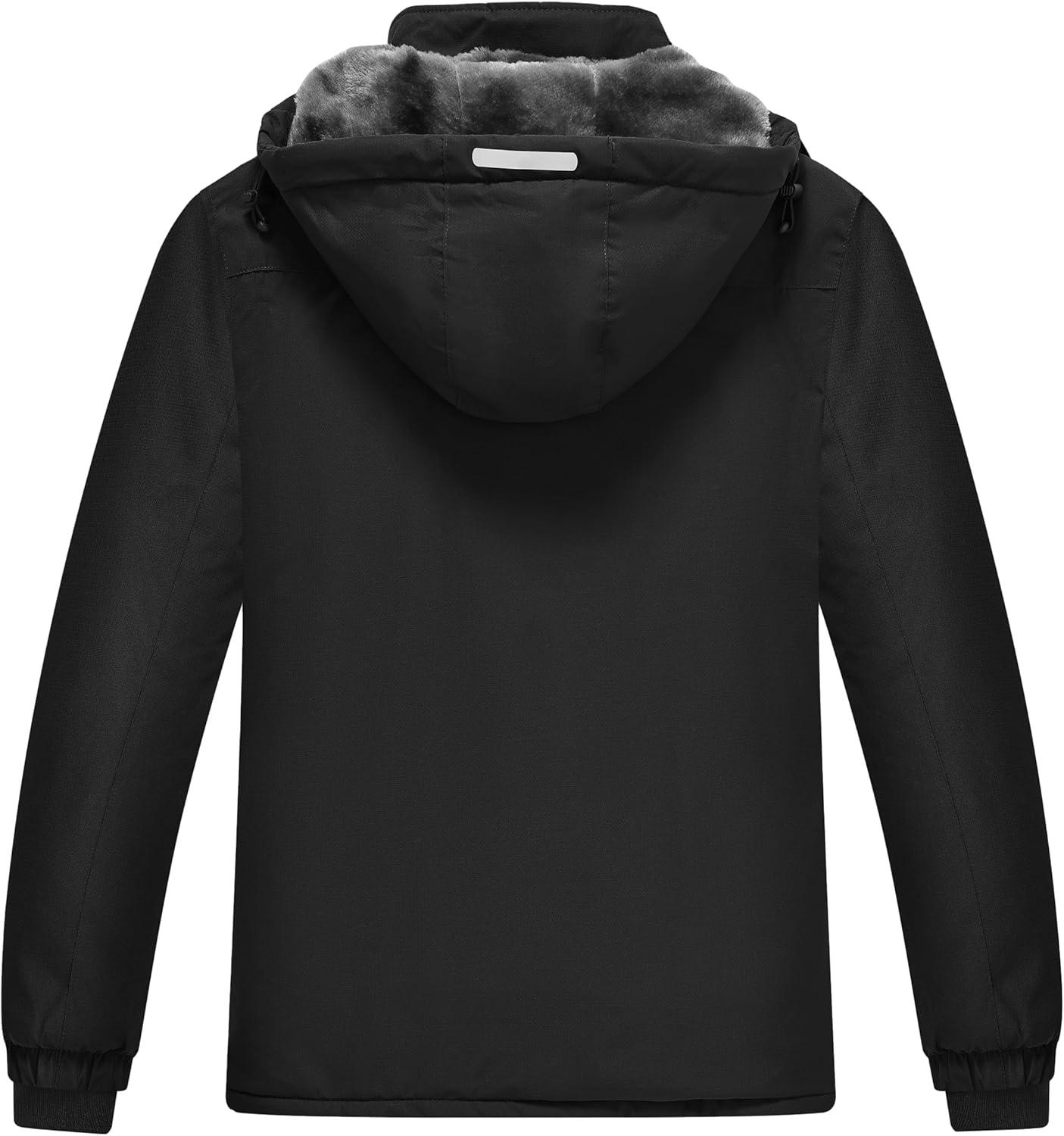 MoFiz Boys Waterproof Skiing Jacket Kids Hooded Fleece Winter Snowboard Jackets Windproof Warm Outerwear with Zip Pockets(Black)
