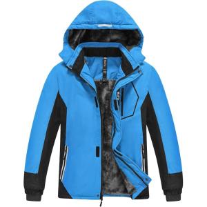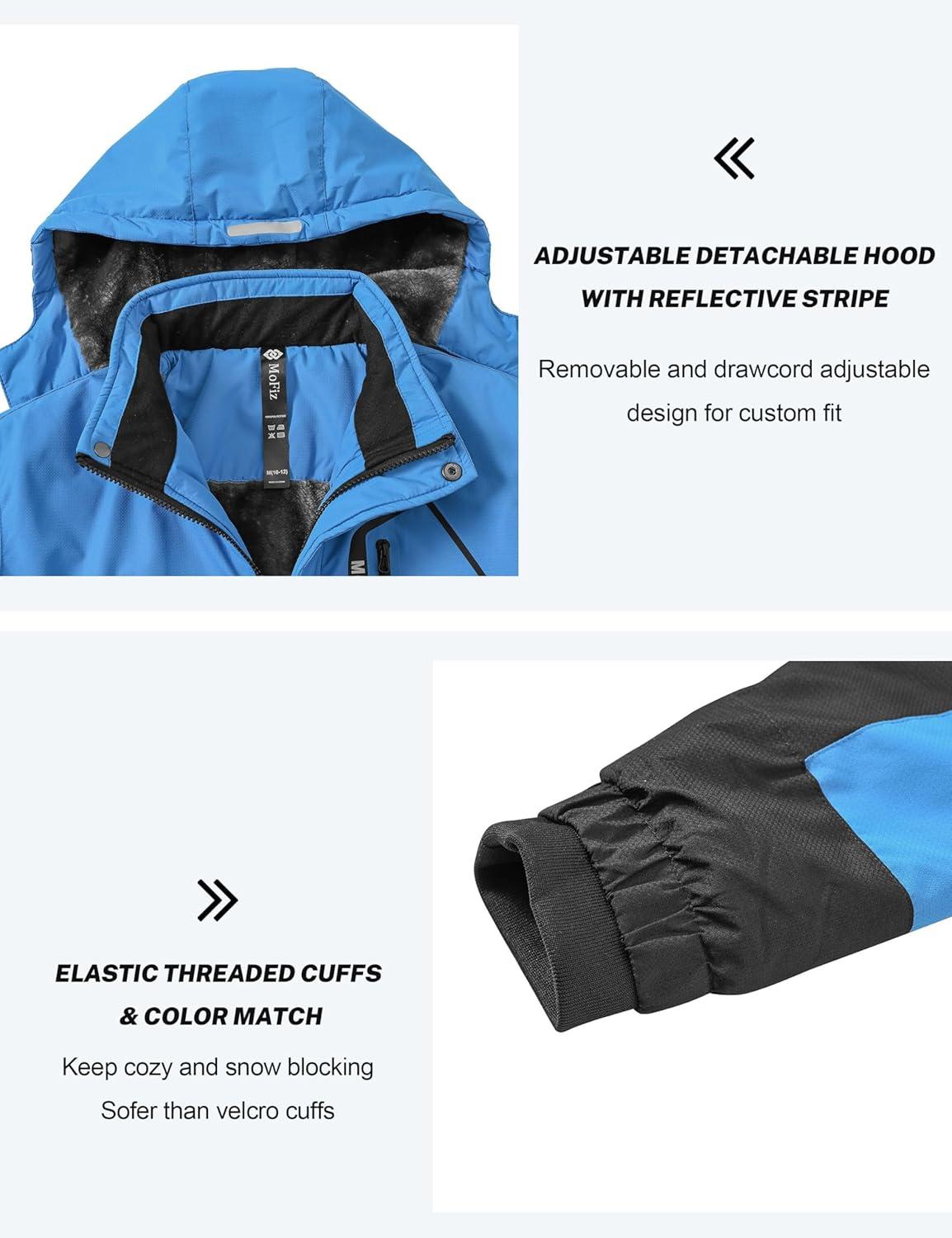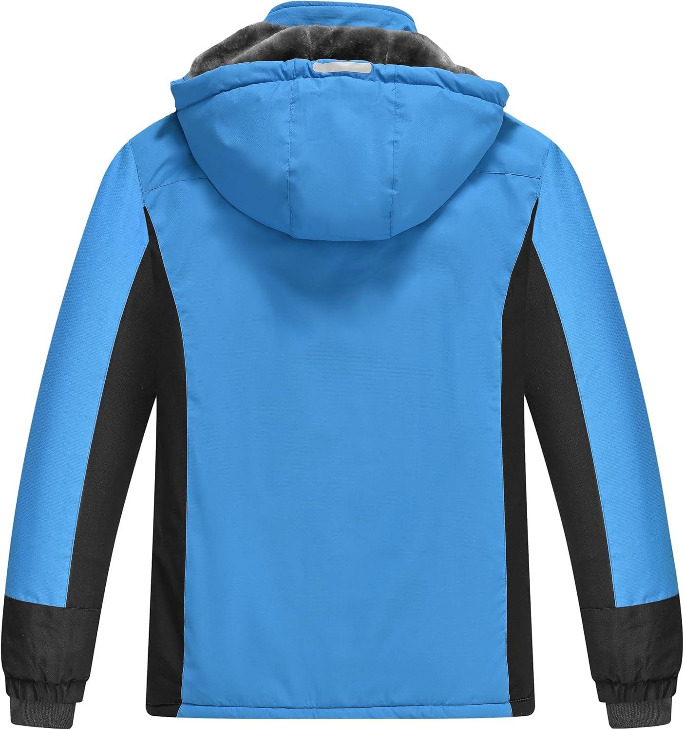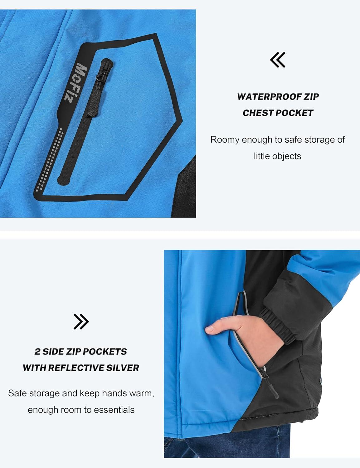 MoFiz Boys Waterproof Skiing Jacket Kids Hooded Fleece Winter Snowboard Jackets Windproof Warm Outerwear with Zip Pockets(Blue and Black)