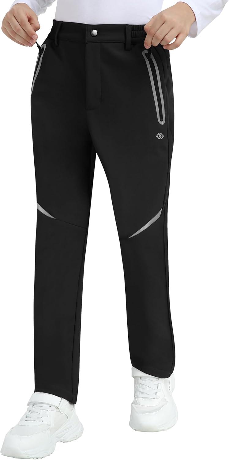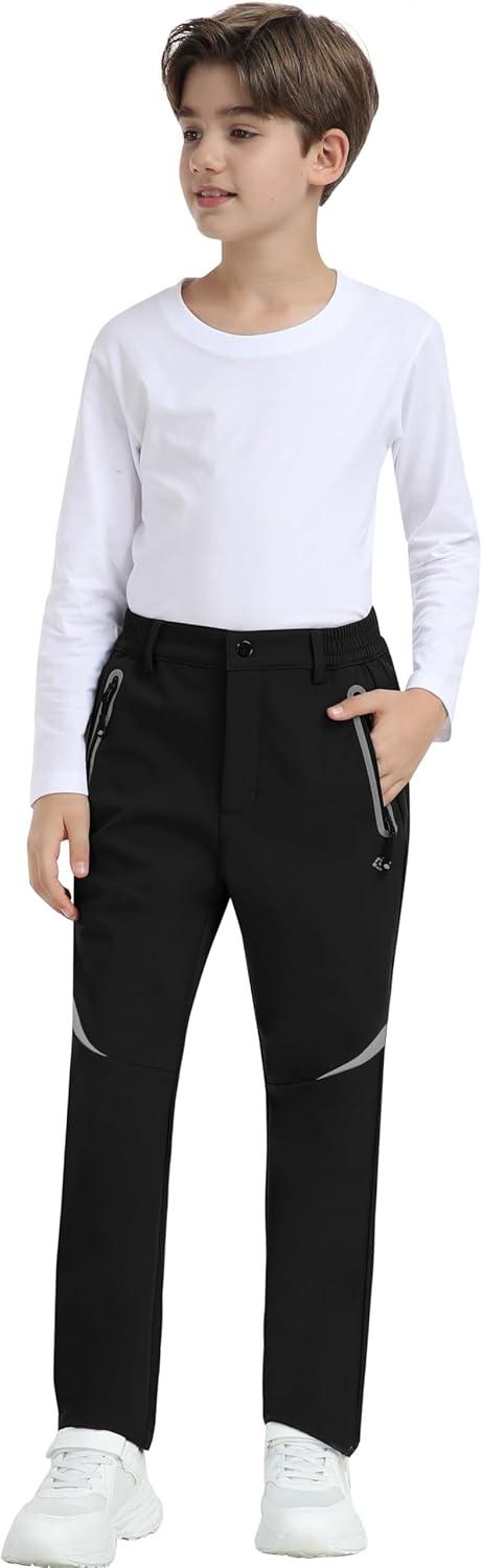 MoFiz Boys Fleece Hiking Snow Ski Pants Kids Winter Waterproof Warm Outdoor Pants with Zippered Pocket(Y01-black)