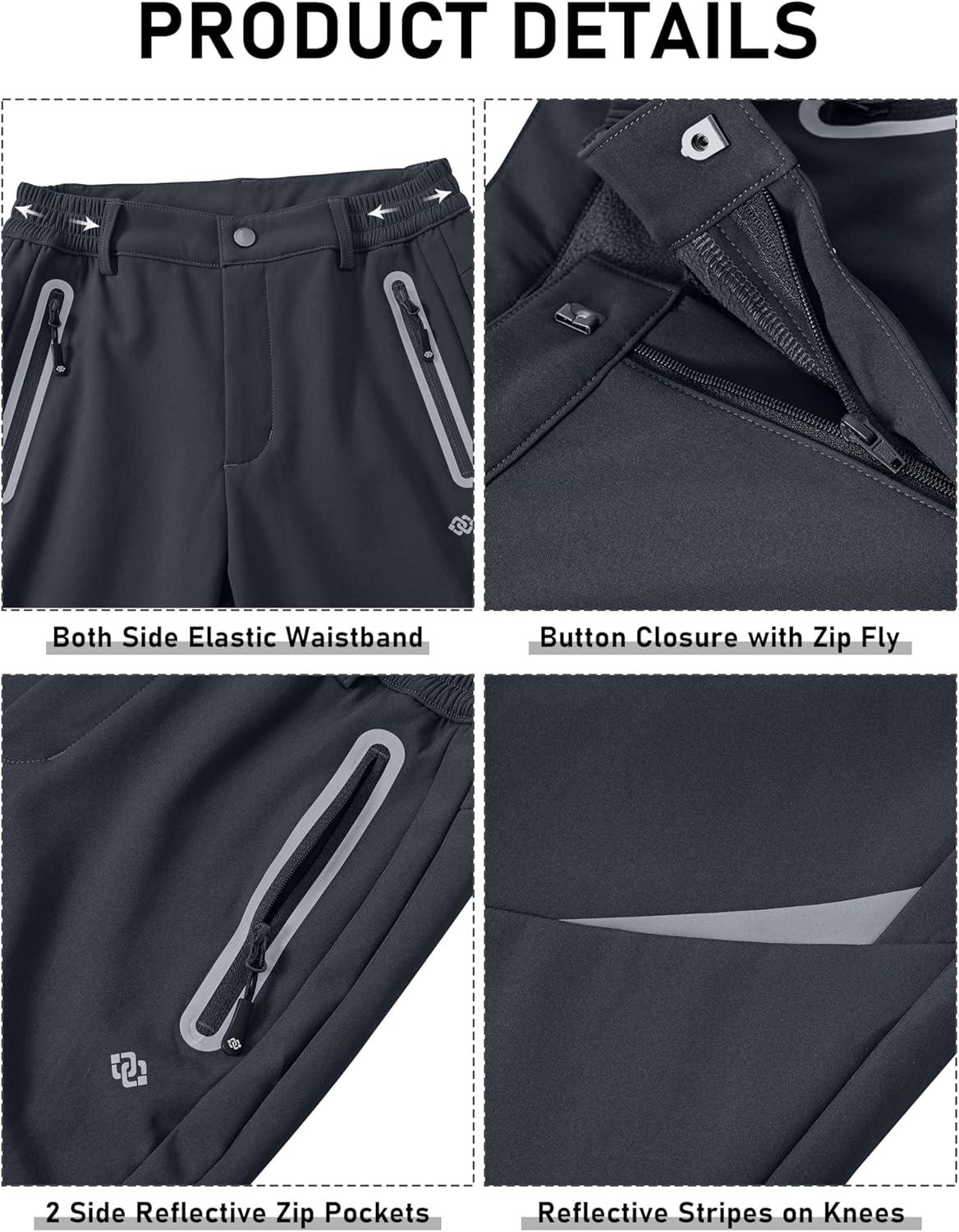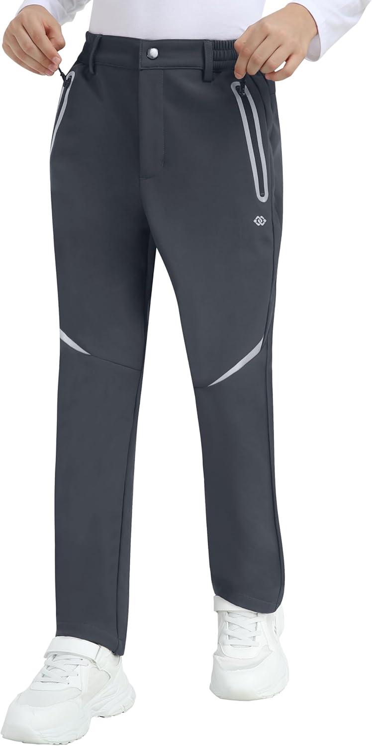 MoFiz Boys Fleece Hiking Snow Ski Pants Kids Winter Waterproof Warm Outdoor Pants with Zippered Pocket(Y02-dark Grey)