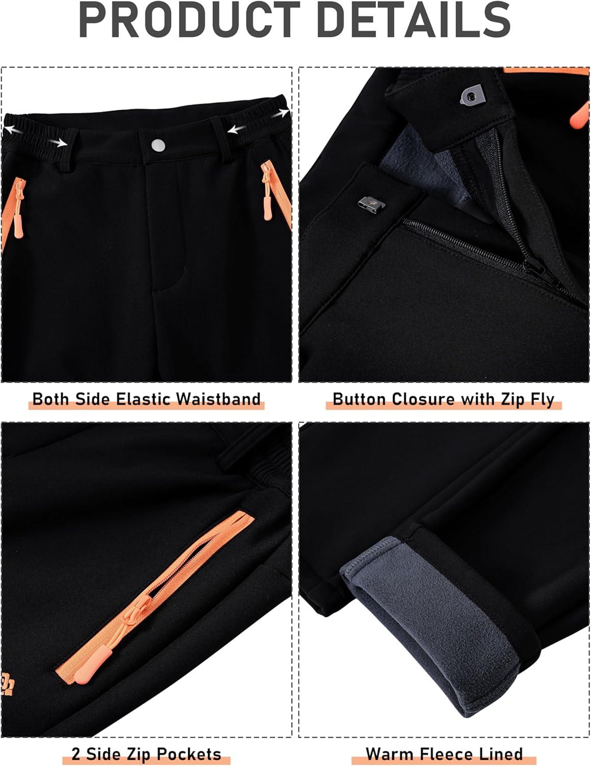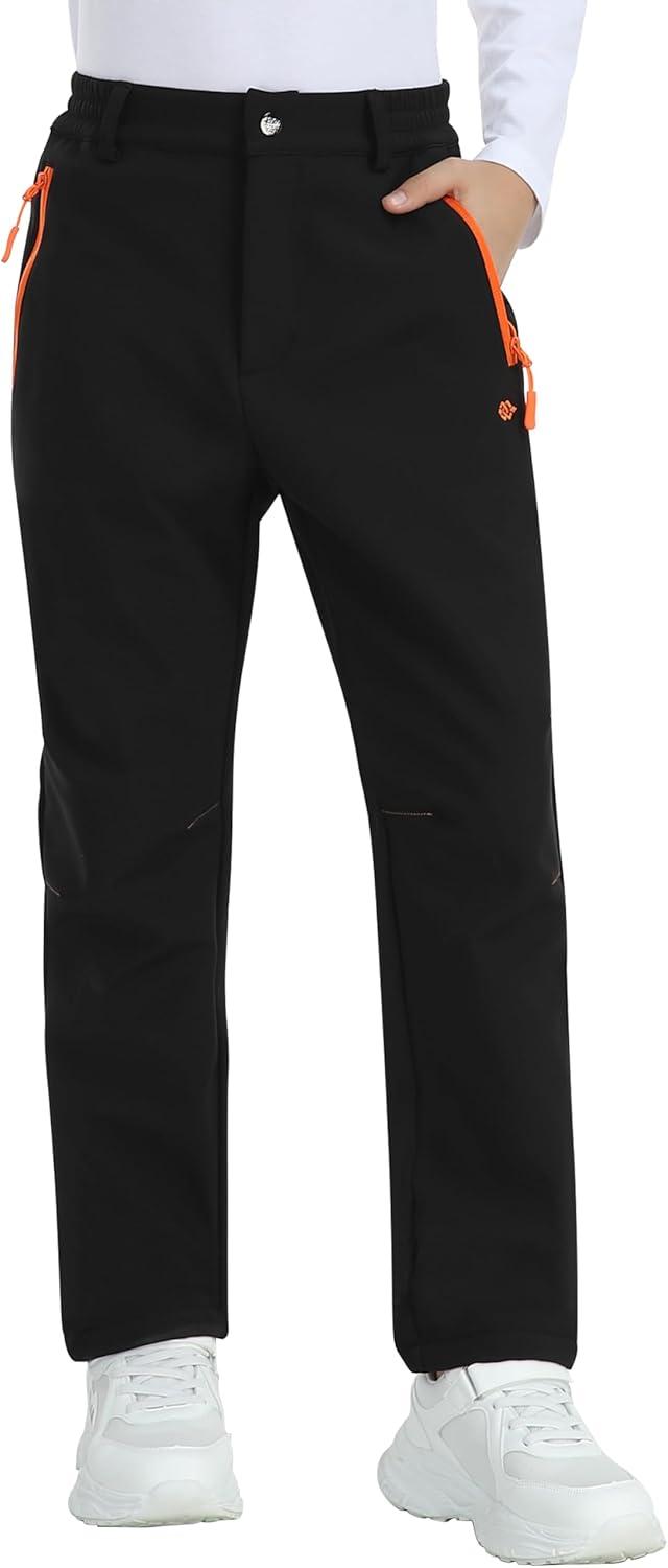 MoFiz Boys Fleece Hiking Snow Ski Pants Kids Winter Waterproof Warm Outdoor Pants with Zippered Pocket(Y03-black)