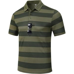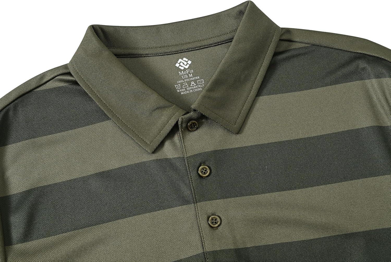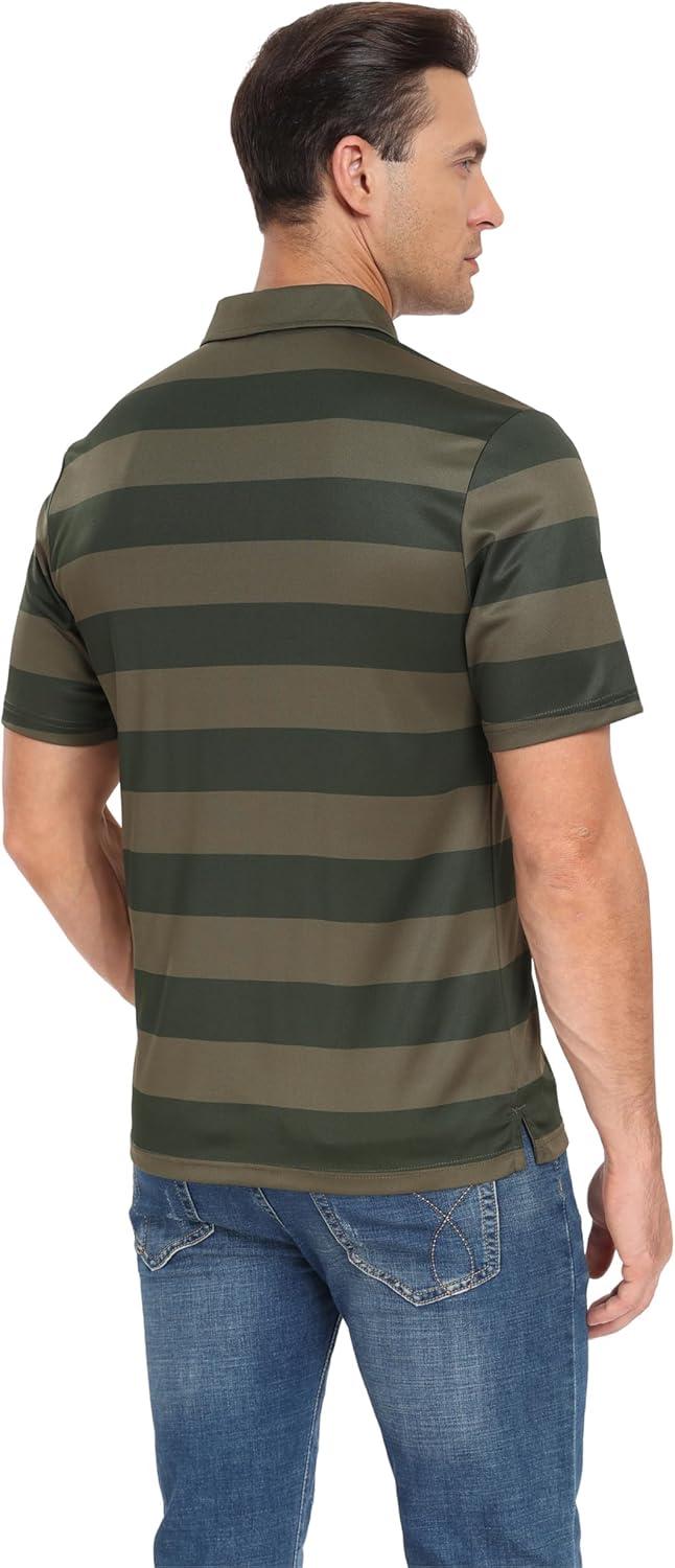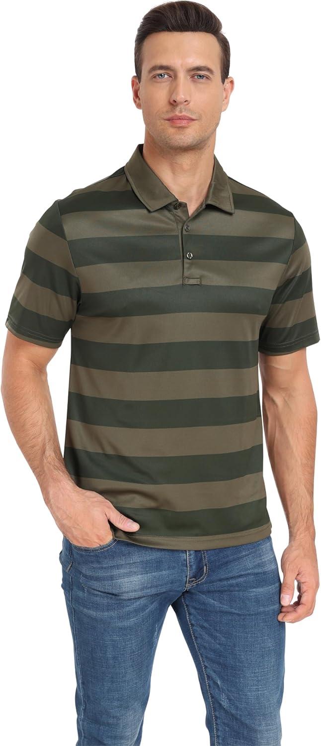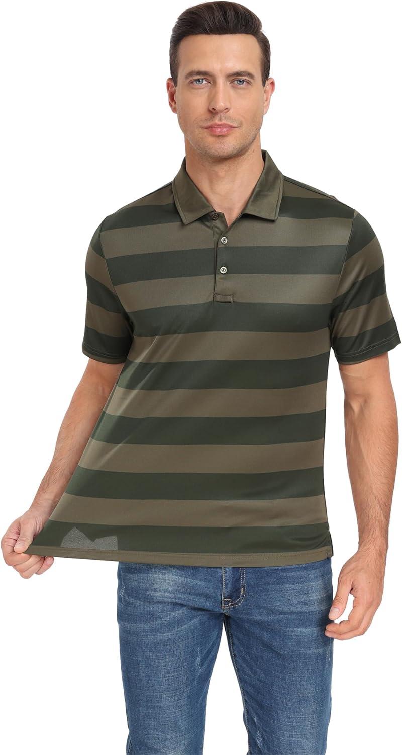 MoFiz Mens Camo Polo Golf Shirts Lightweight Dry Fit Pique Short Sleeve Collared Hiking T-Shirts Dry fit Activewear(Army Green Striped)