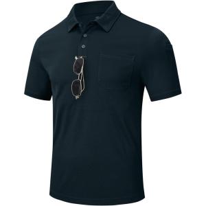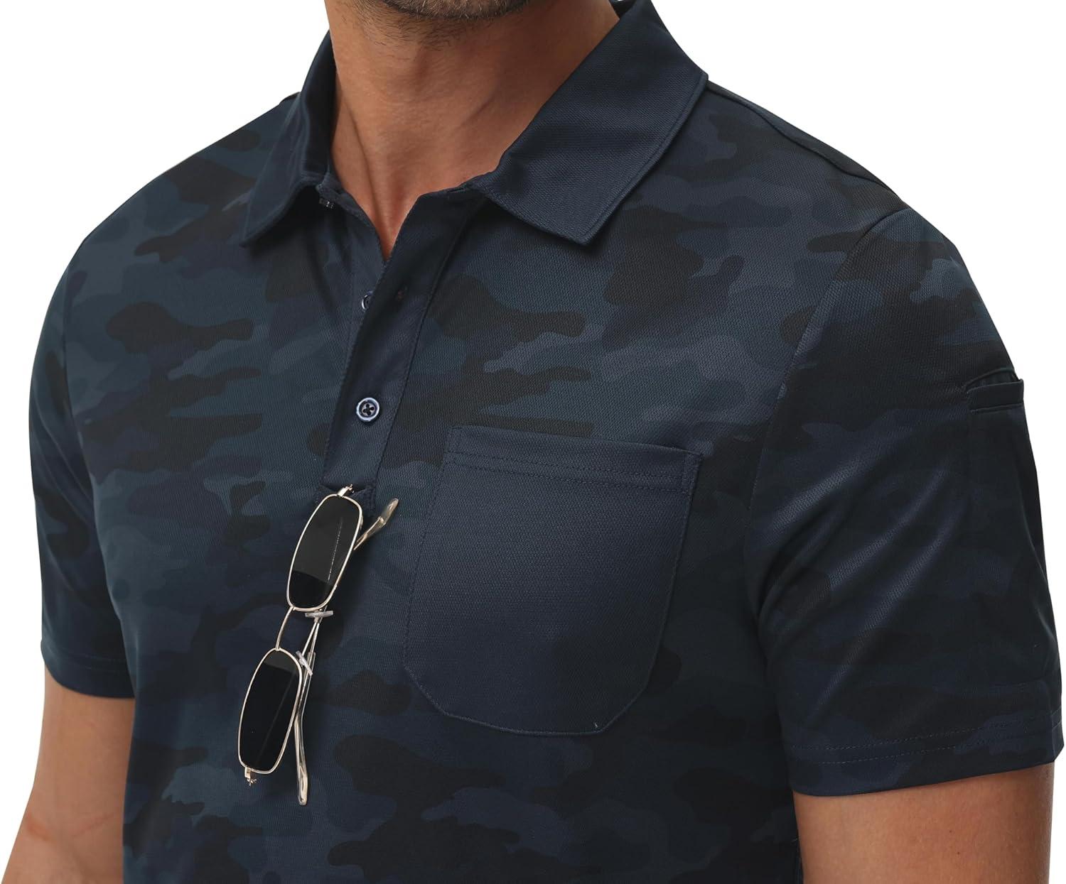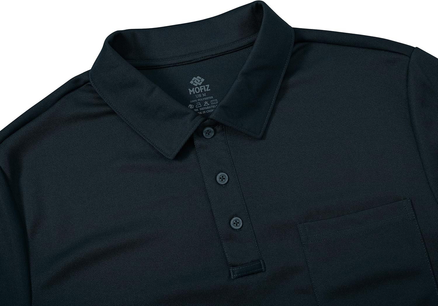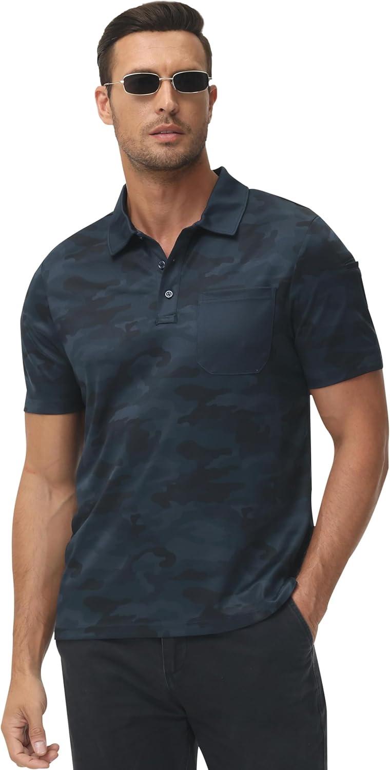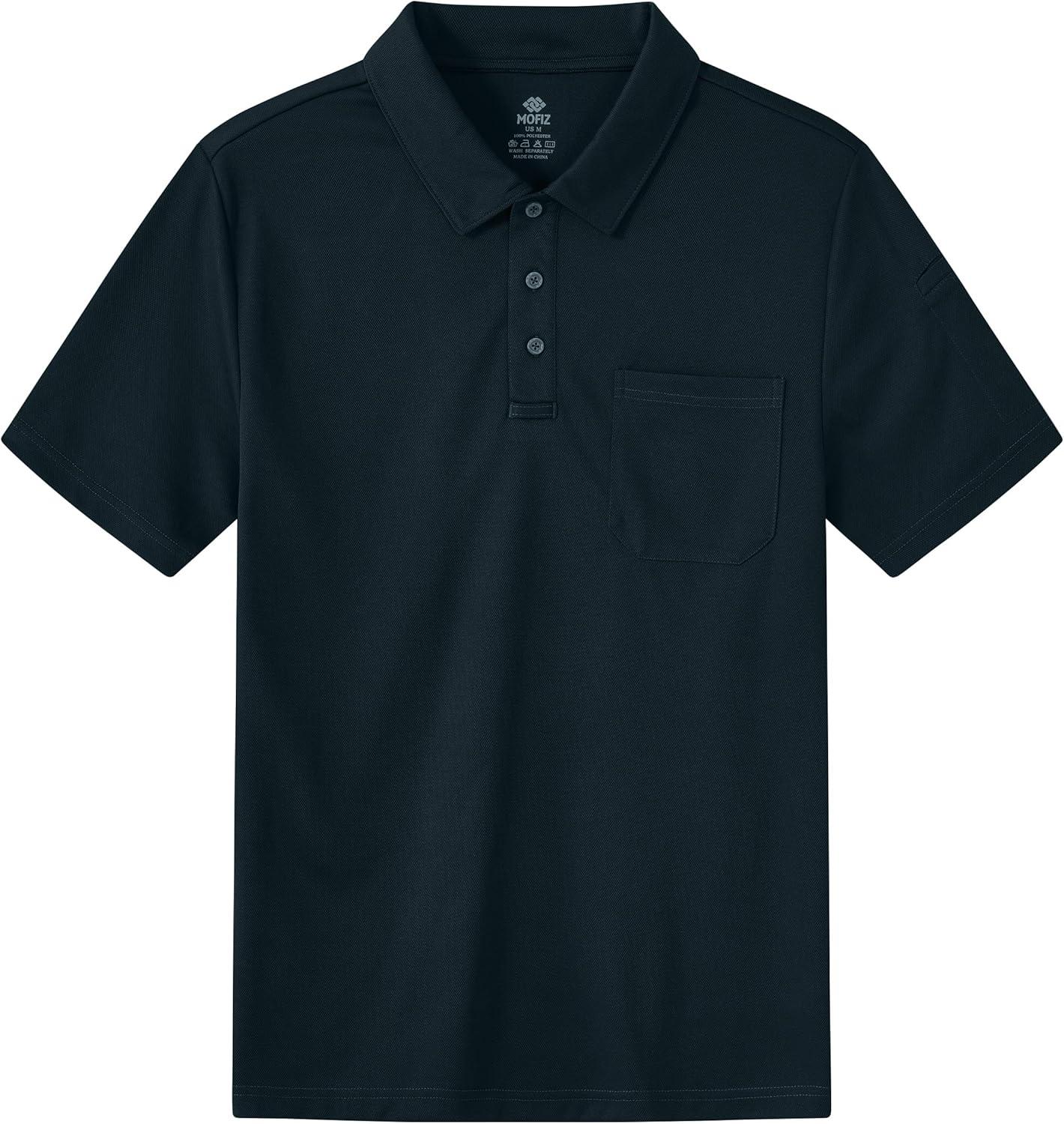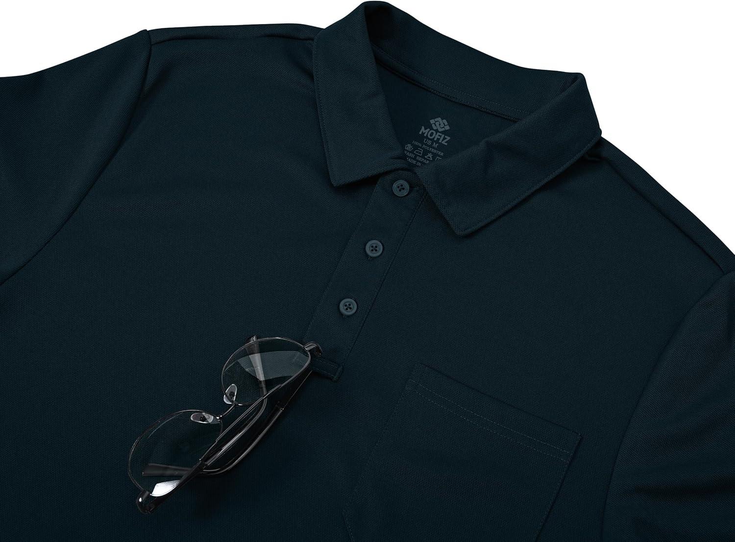 MoFiz Mens Camo Polo Golf Shirts Lightweight Dry Fit Pique Short Sleeve Collared Hiking T-Shirts Dry fit Activewear(Solid – Navy Blue)