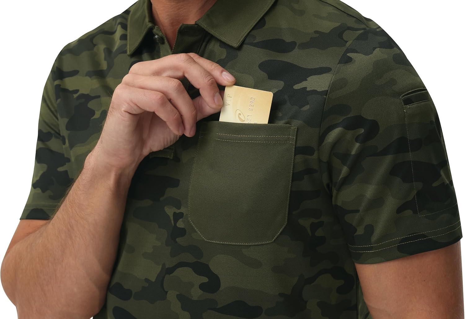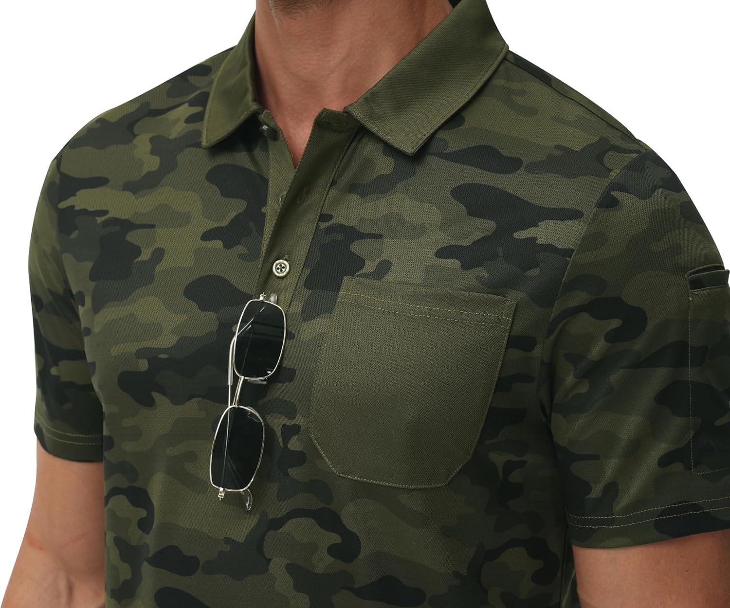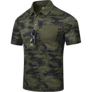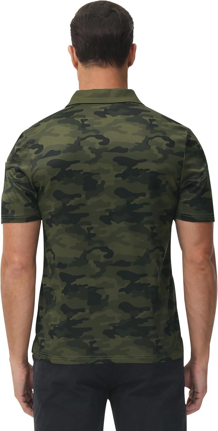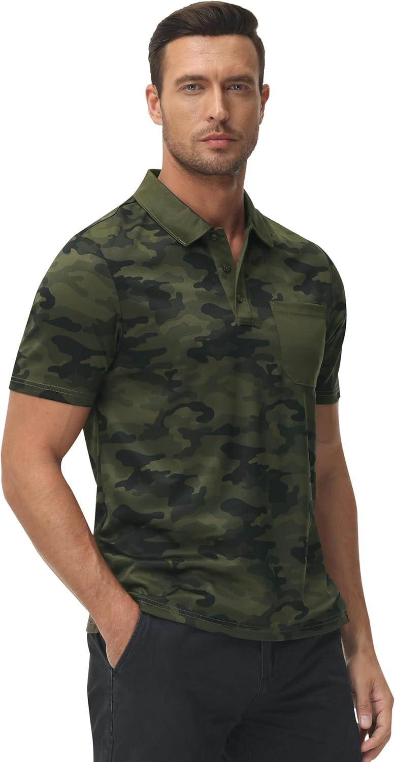 MoFiz Mens Camo Polo Golf Shirts Lightweight Dry Fit Pique Short Sleeve Collared Hiking T-Shirts Dry fit Activewear(Green Camo)