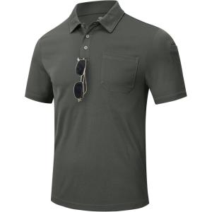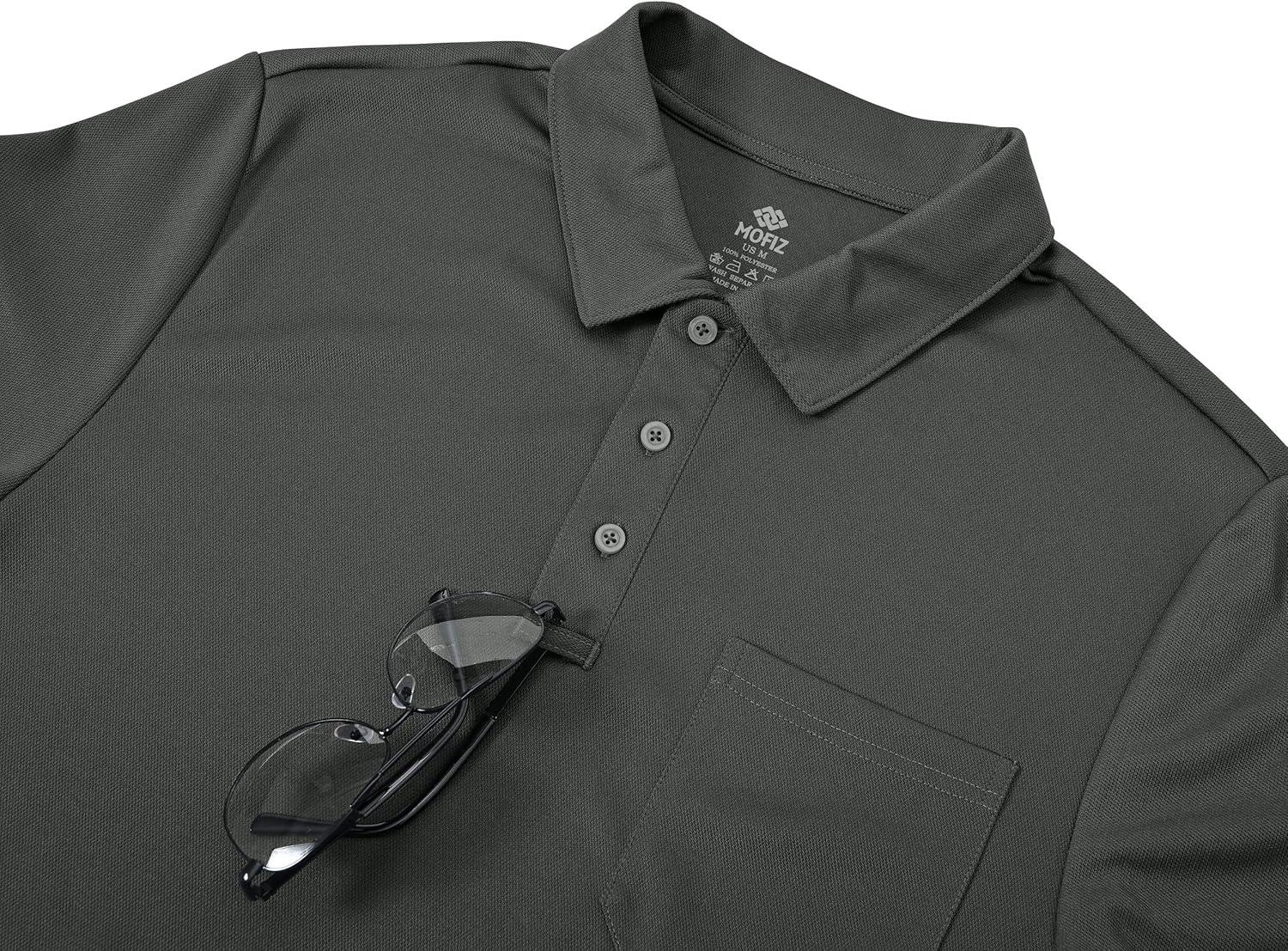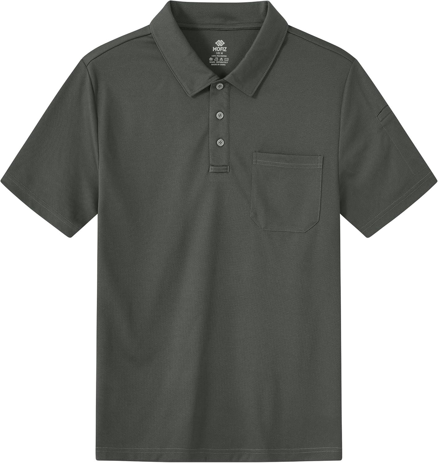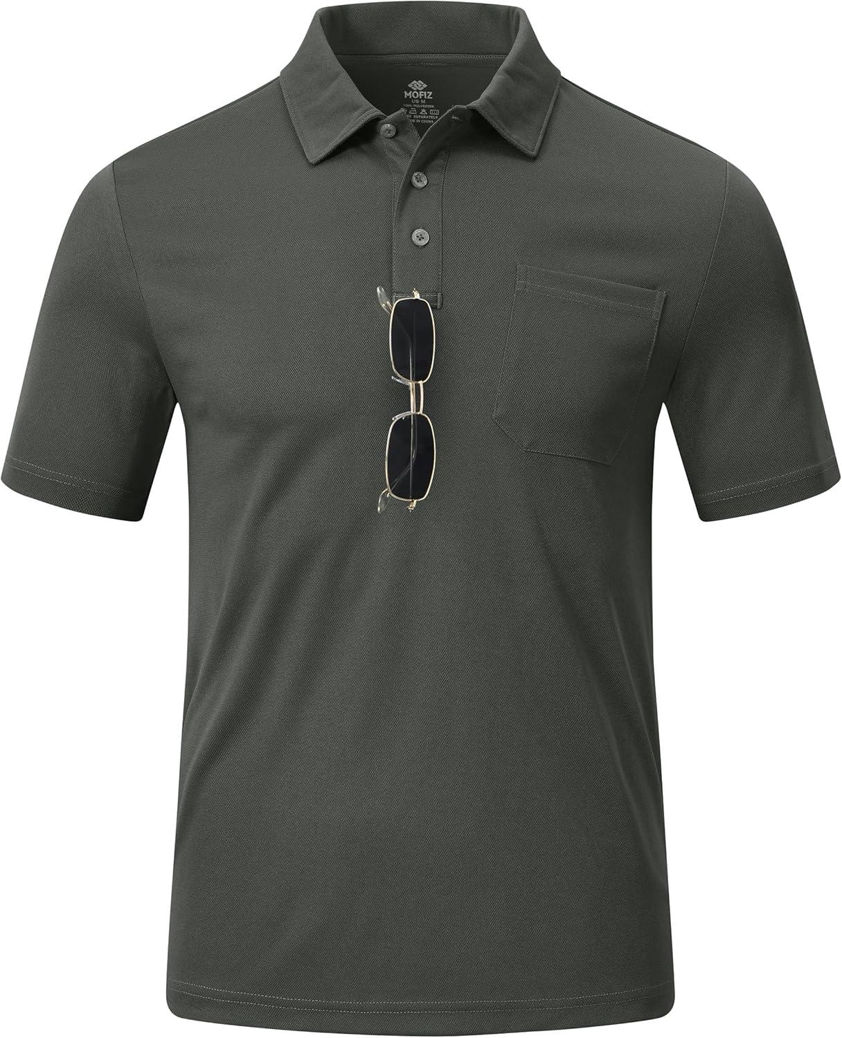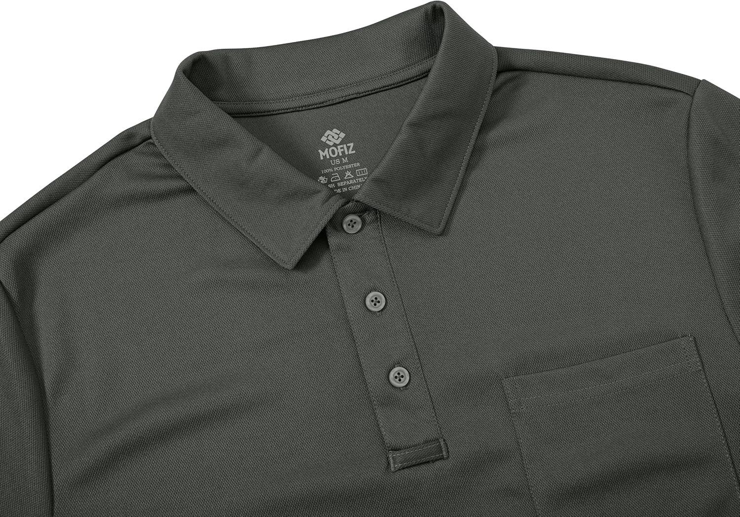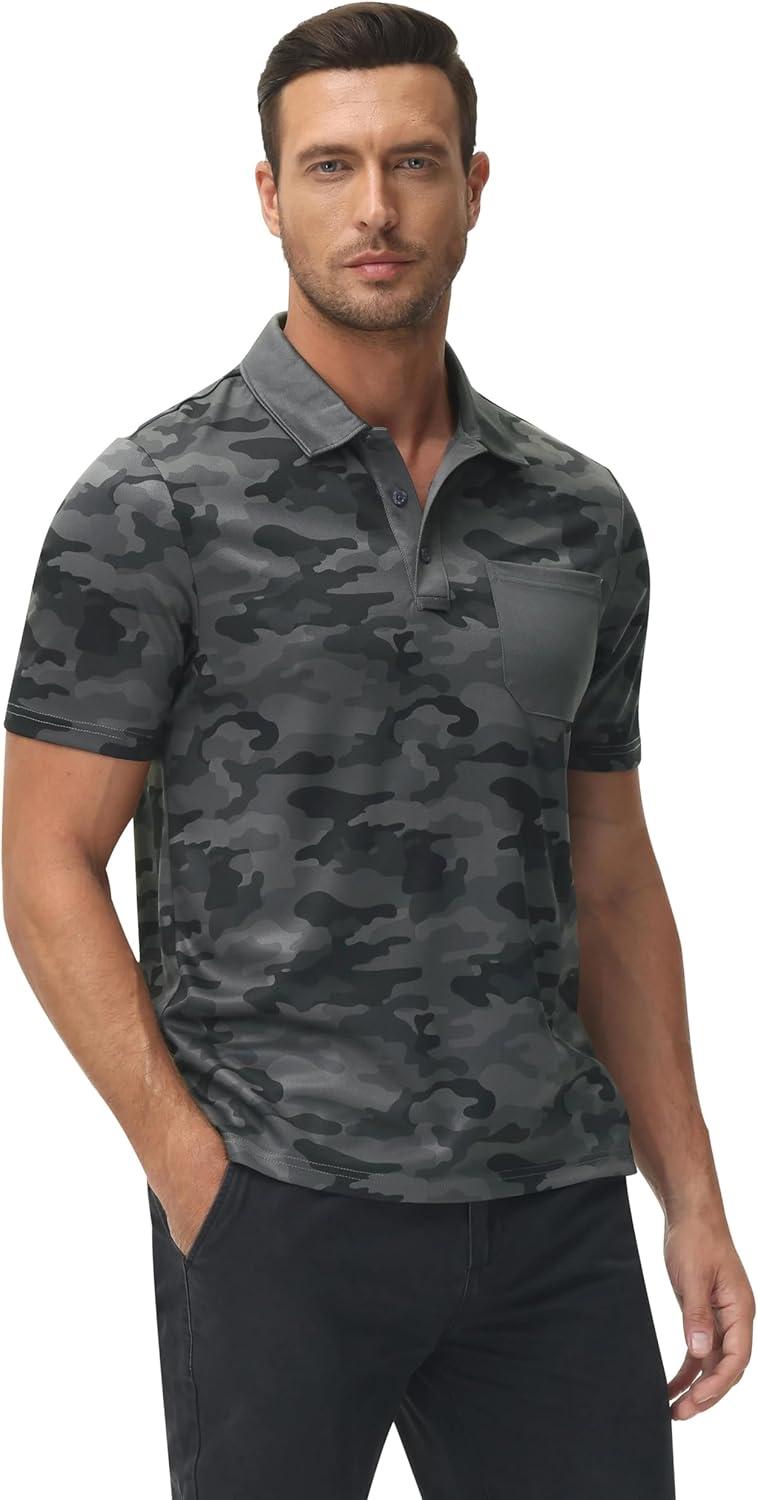 MoFiz Mens Camo Polo Golf Shirts Lightweight Dry Fit Pique Short Sleeve Collared Hiking T-Shirts Dry fit Activewear(Solid – Deep Grey)