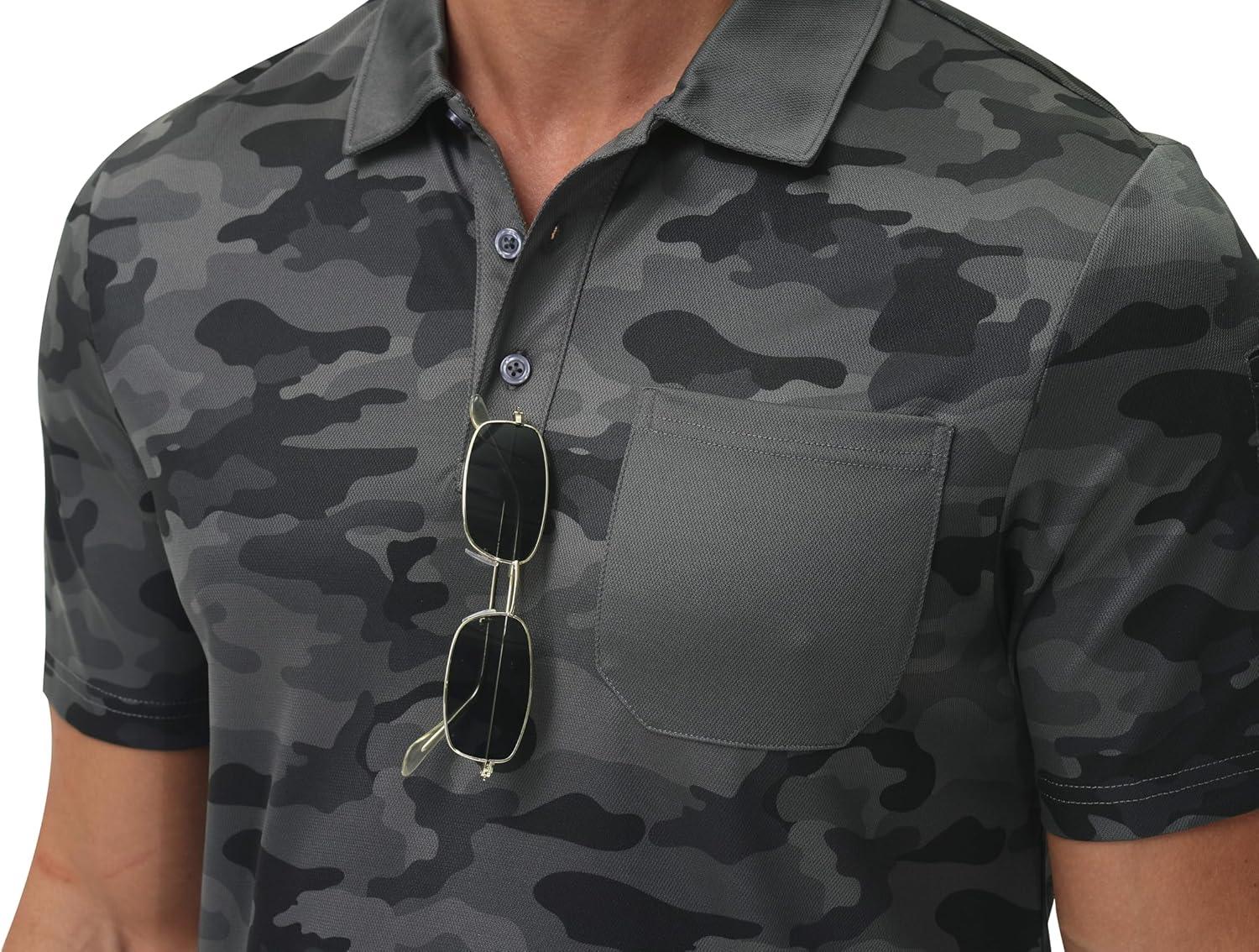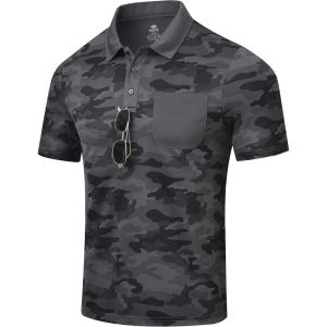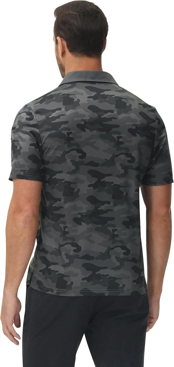 MoFiz Mens Camo Polo Golf Shirts Lightweight Dry Fit Pique Short Sleeve Collared Hiking T-Shirts Dry fit Activewear(Grey Camo)