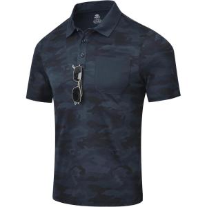 MoFiz Mens Camo Polo Golf Shirts Lightweight Dry Fit Pique Short Sleeve Collared Hiking T-Shirts Dry fit Activewear(Blue Camo)