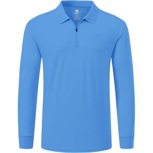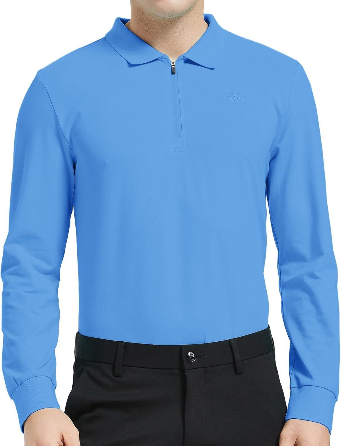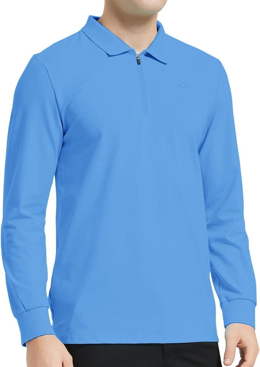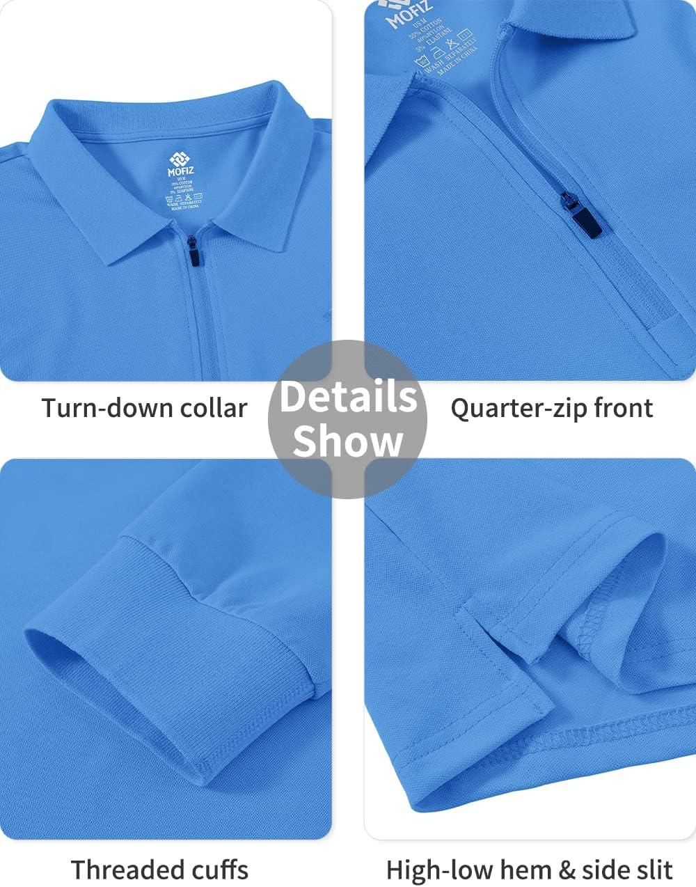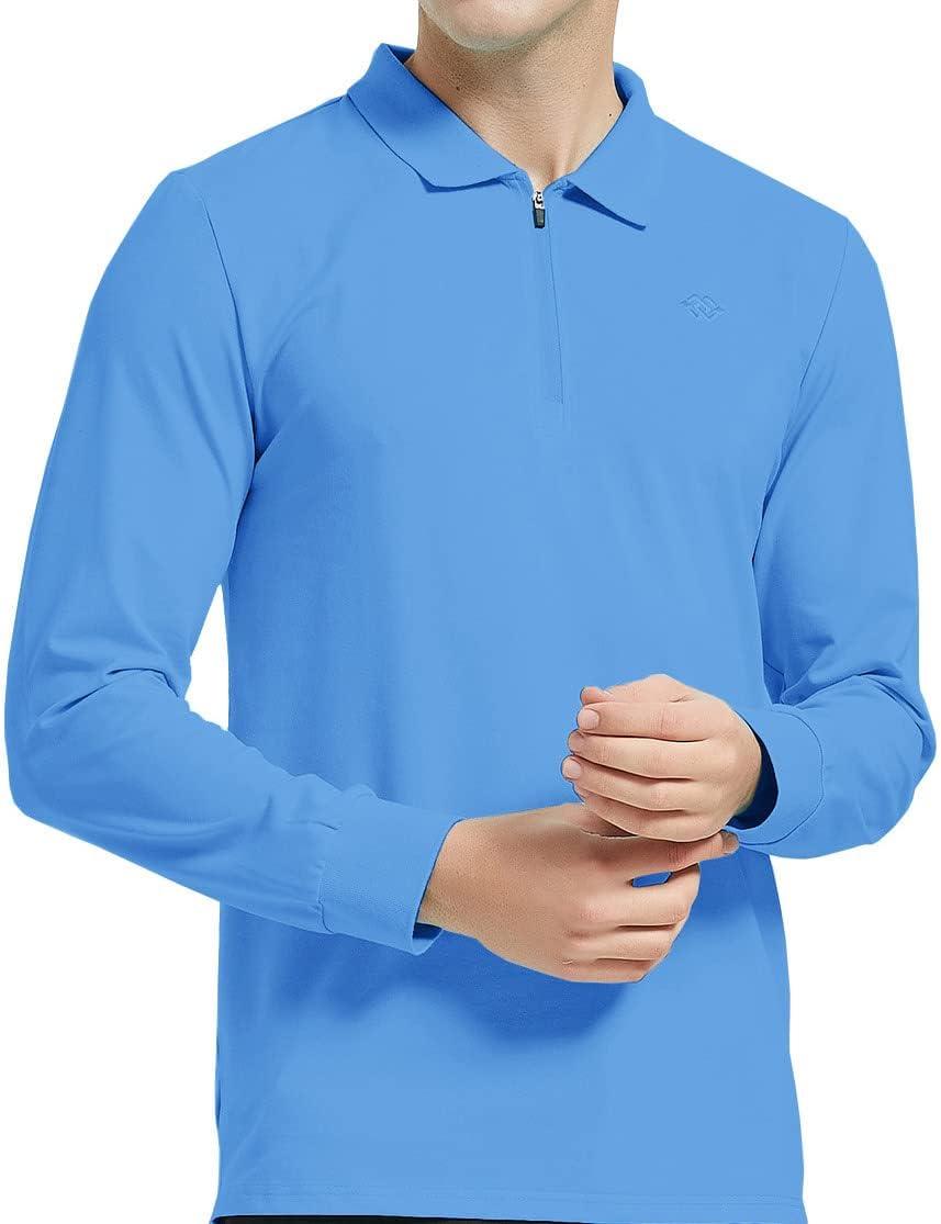 MoFiz Men’s Long Sleeve Golf Shirt Quarter Zip Sport Polo Shirt Athletic Fit(Sky Blue)