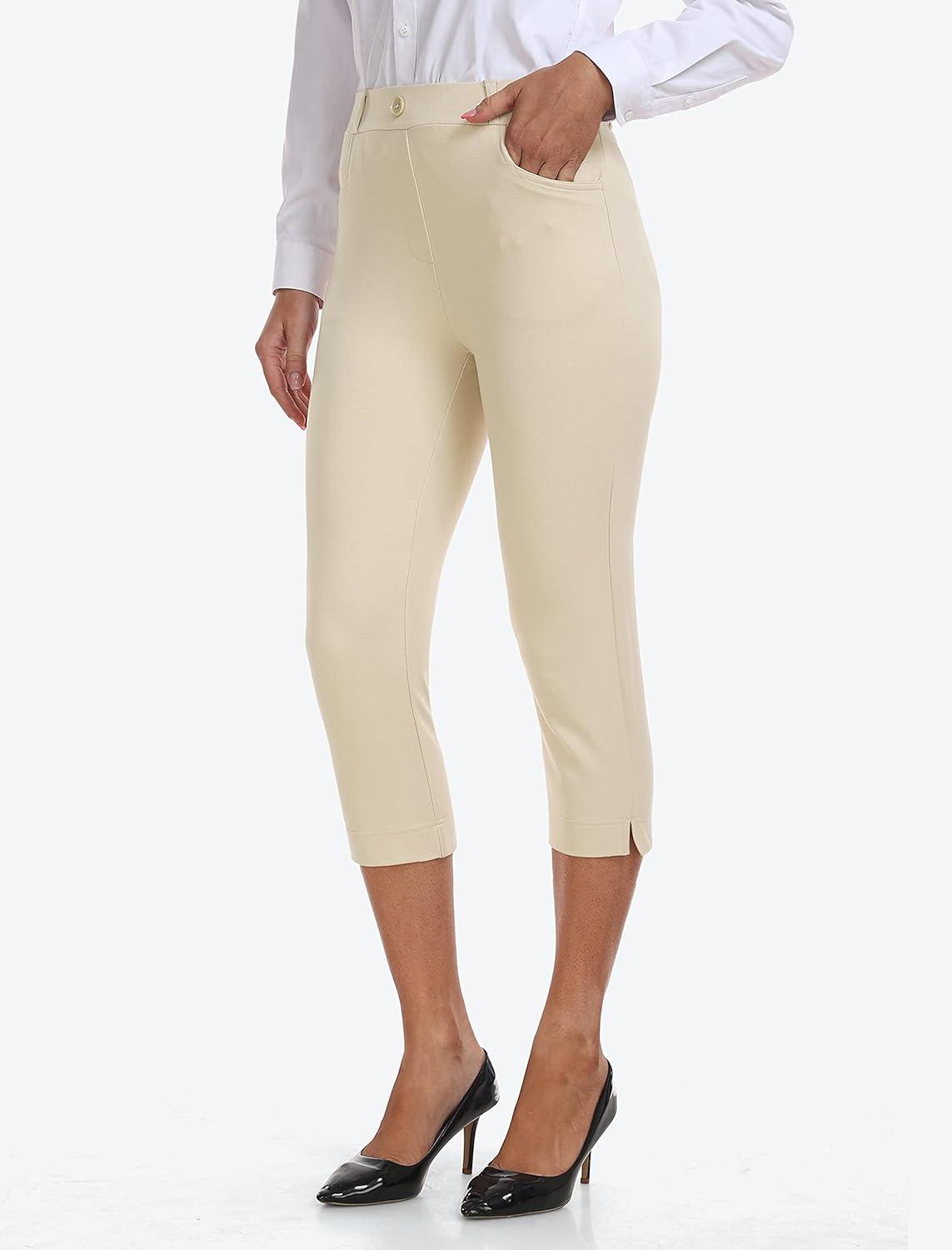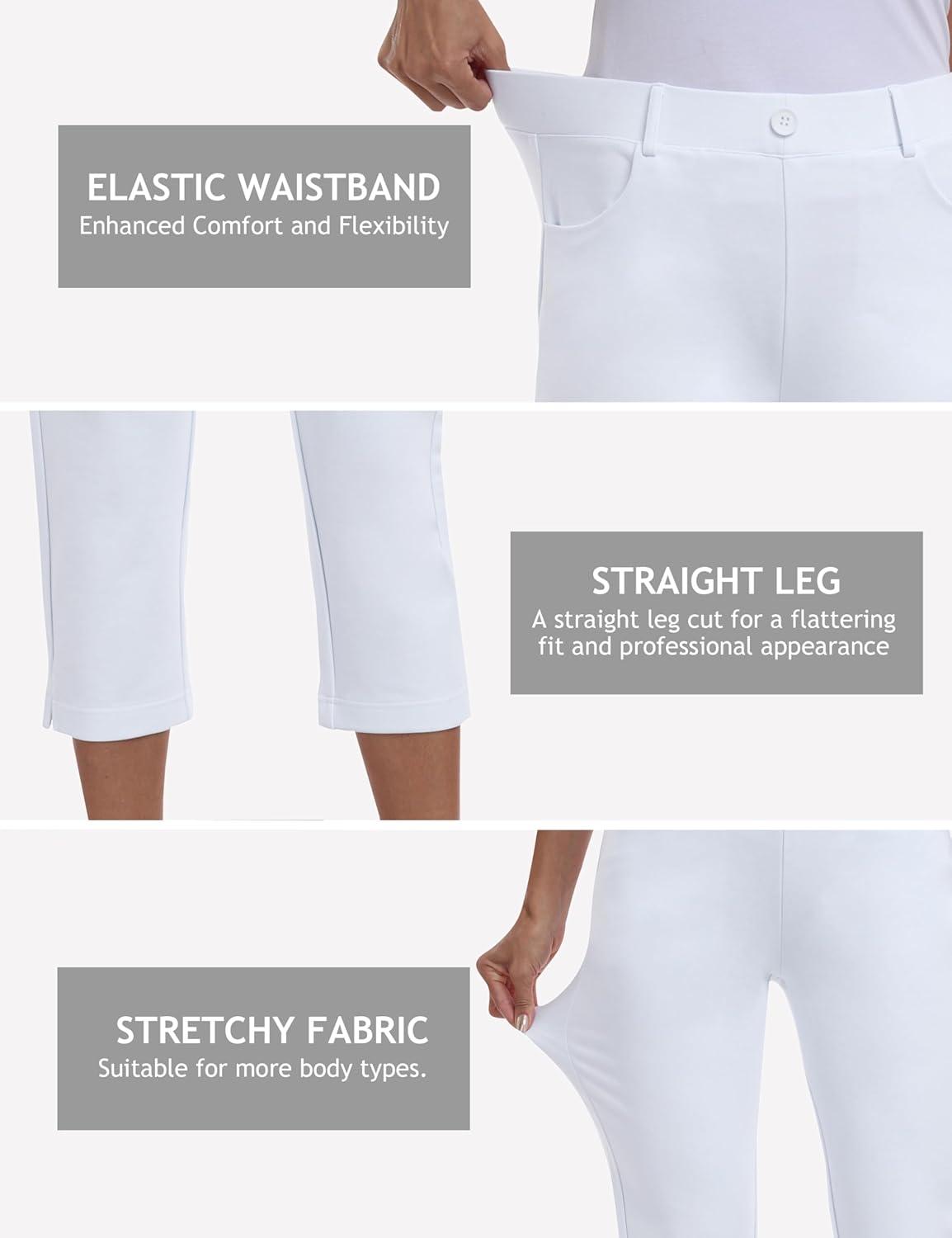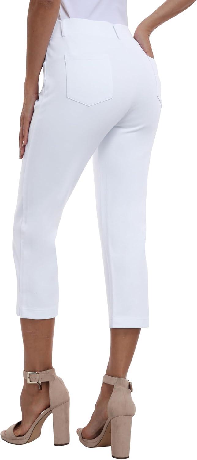 MoFiz Women’s Capri Pants Summer Pull-On Stretch Straight Leg Golf Yoga & Business Casual Dressy Cropped Pants with Pockets(White)