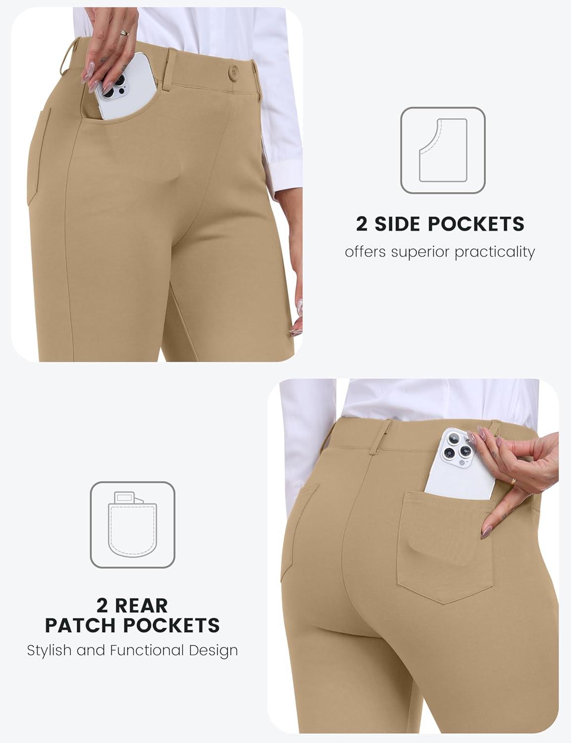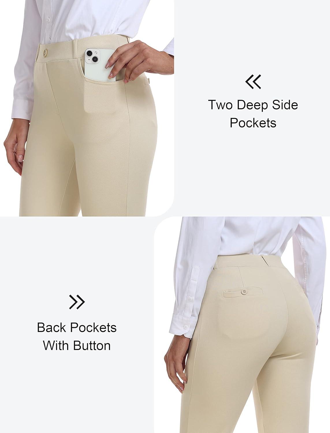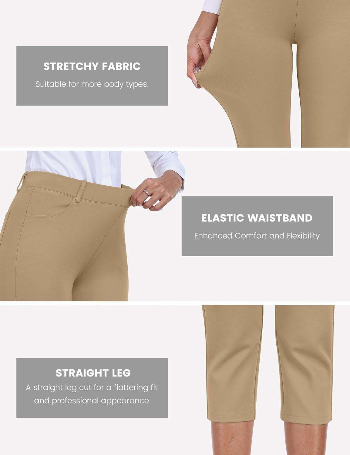 MoFiz Women’s Capri Pants Summer Pull-On Stretch Straight Leg Golf Yoga & Business Casual Dressy Cropped Pants with Pockets(Khaki)
