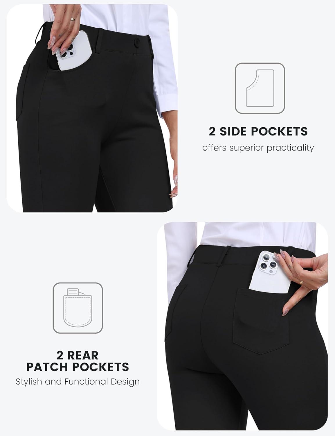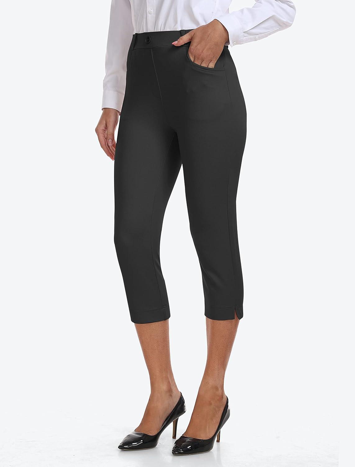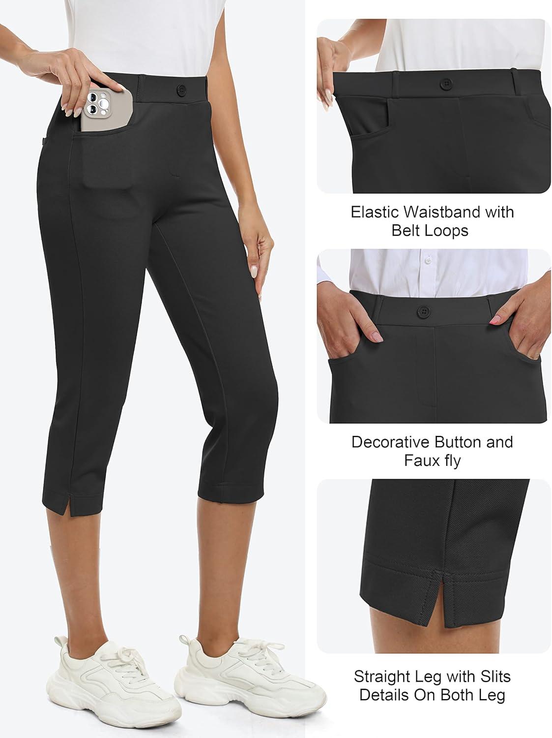 MoFiz Women’s Capri Pants Summer Pull-On Stretch Straight Leg Golf Yoga & Business Casual Dressy Cropped Pants with Pockets(Black)