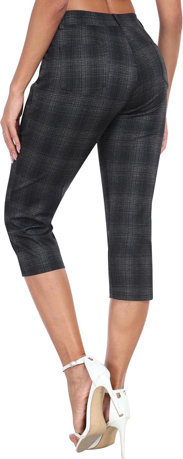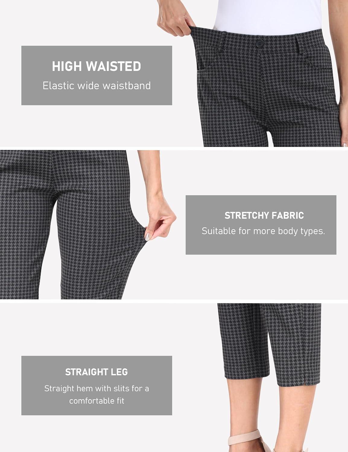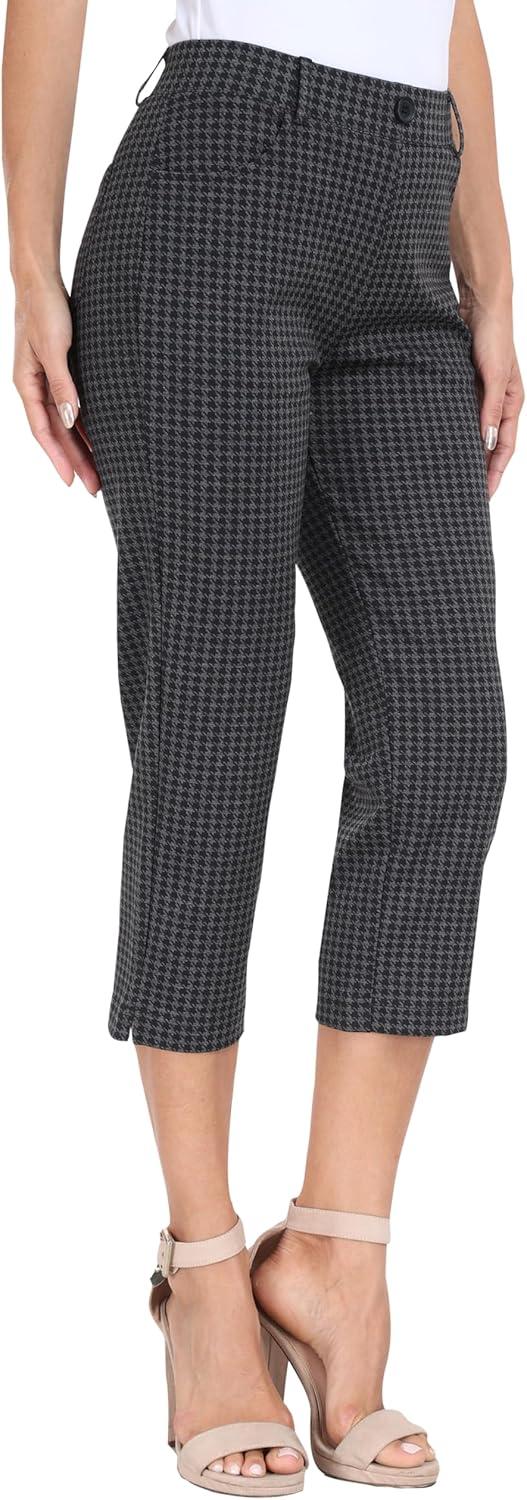 MoFiz Women’s Capri Pants Summer Pull-On Stretch Straight Leg Golf Yoga & Business Casual Dressy Cropped Pants with Pockets(Houndstooth)