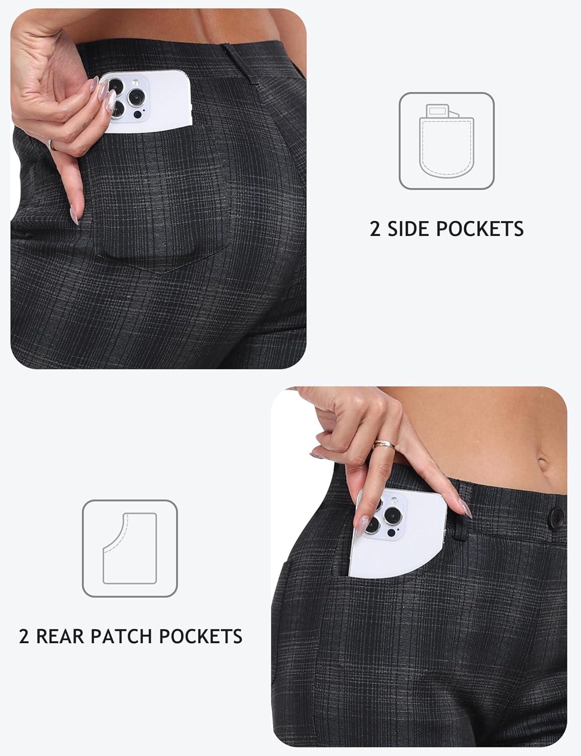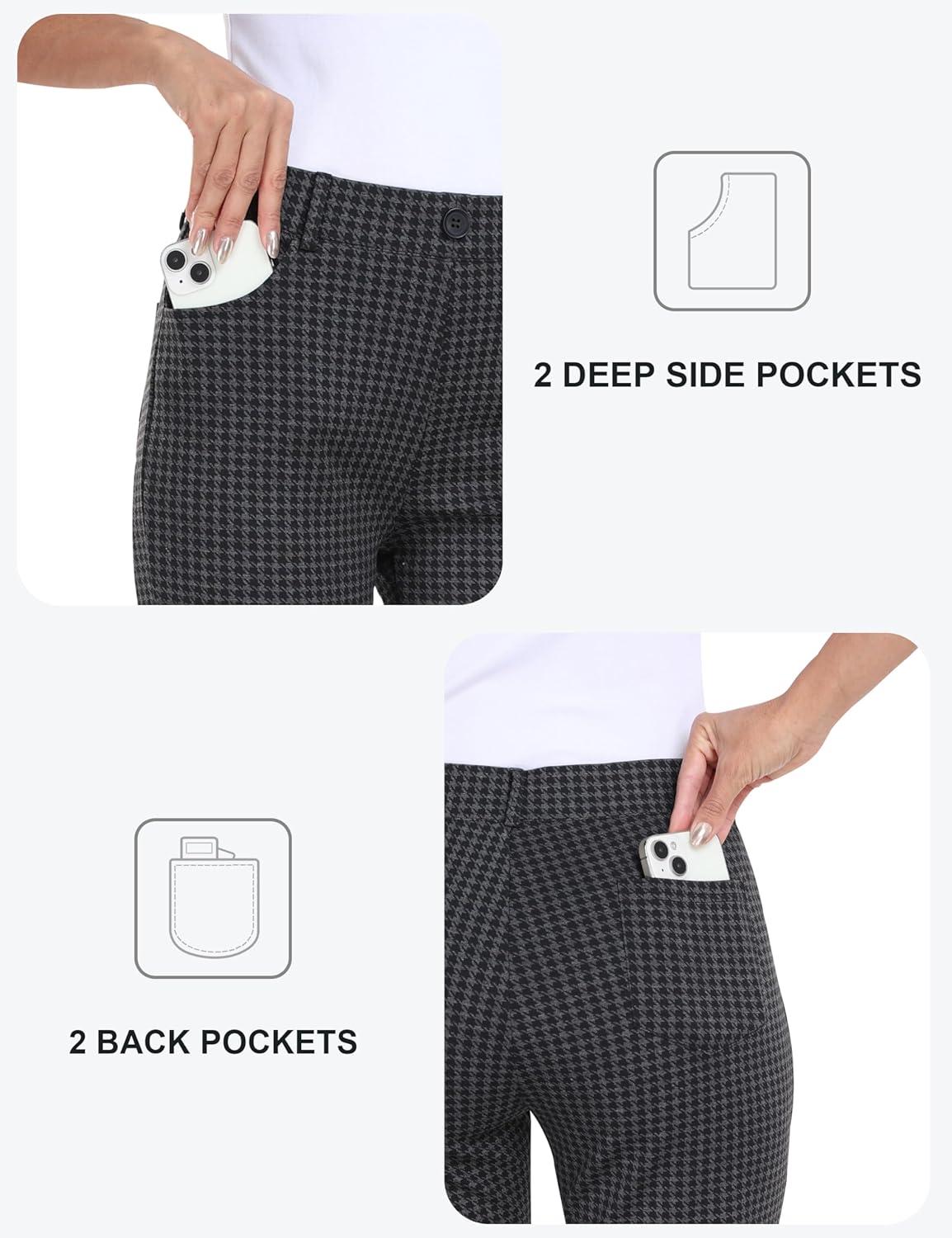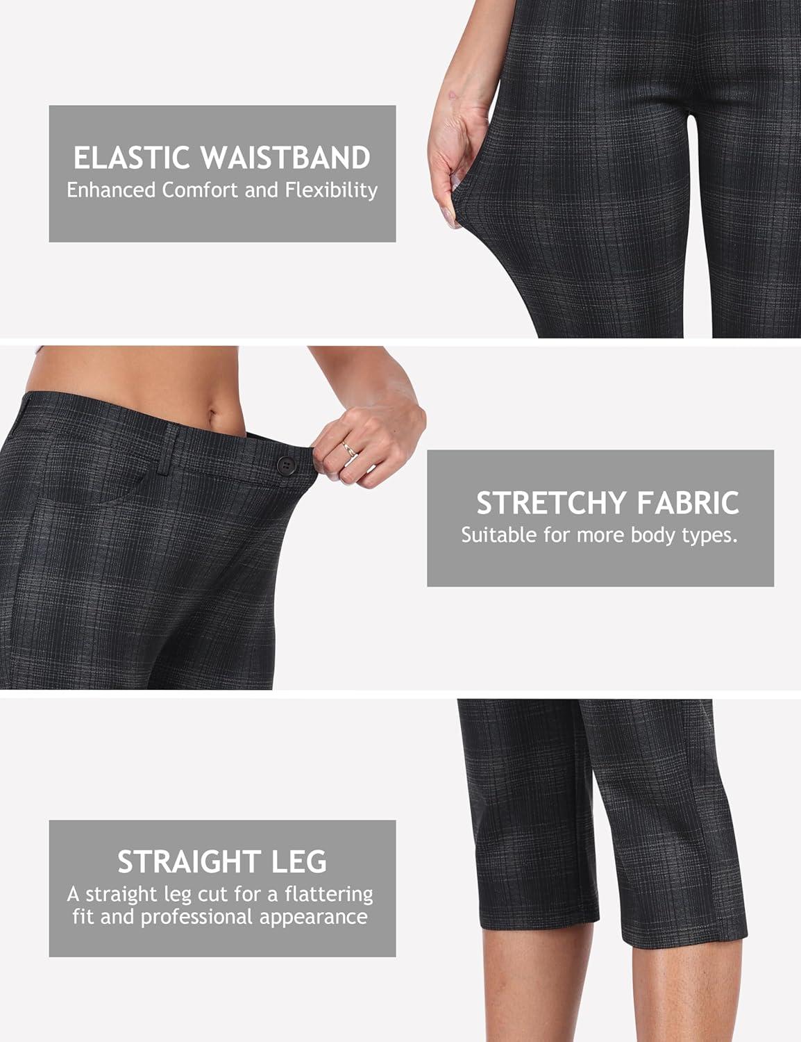 MoFiz Women’s Capri Pants Summer Pull-On Stretch Straight Leg Golf Yoga & Business Casual Dressy Cropped Pants with Pockets(Houndstooth)