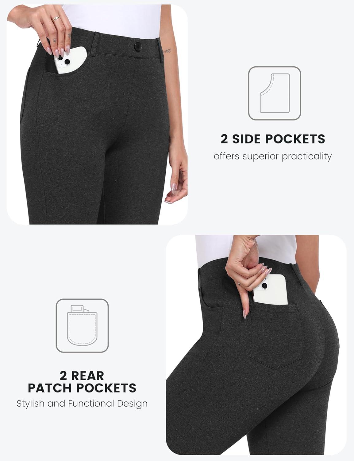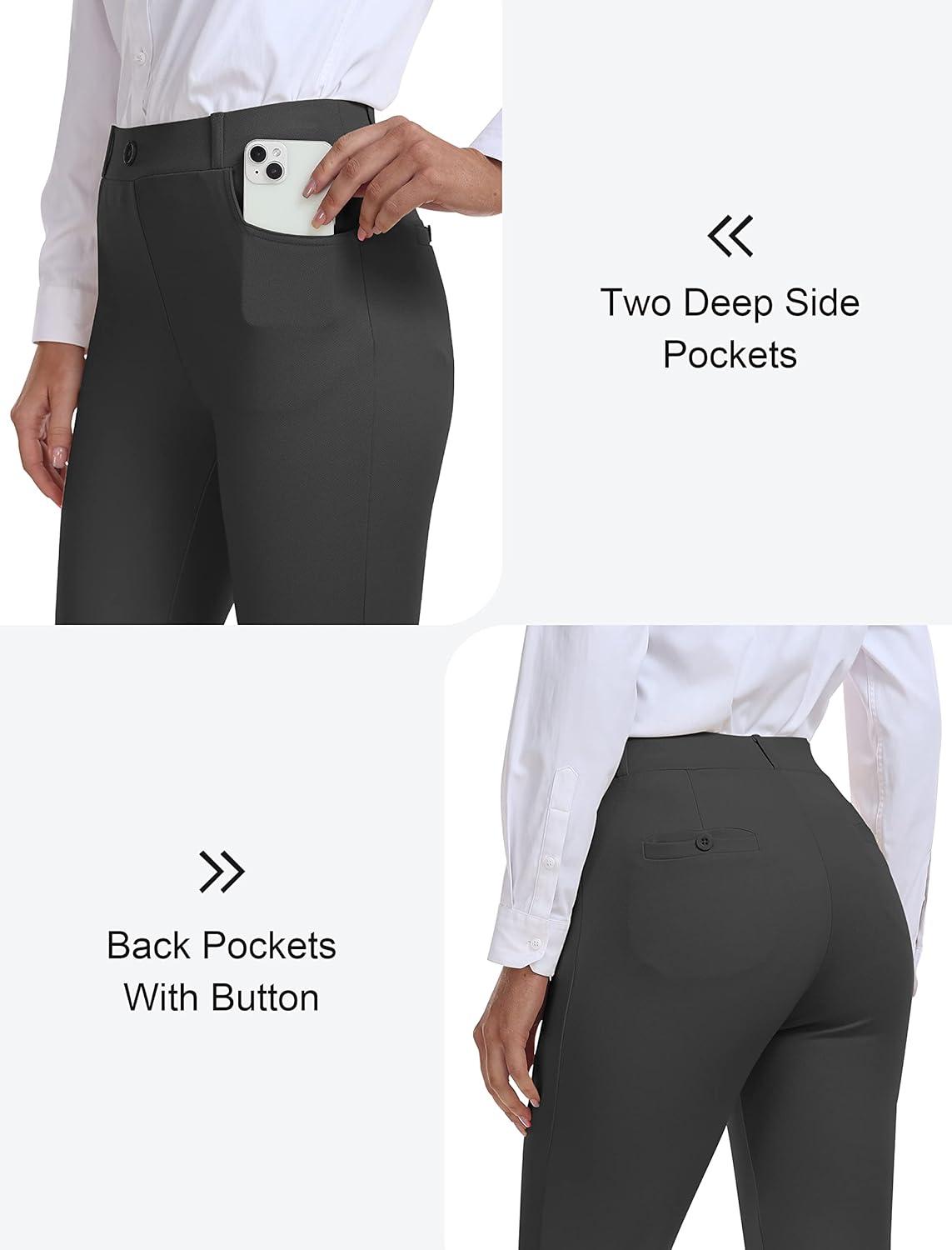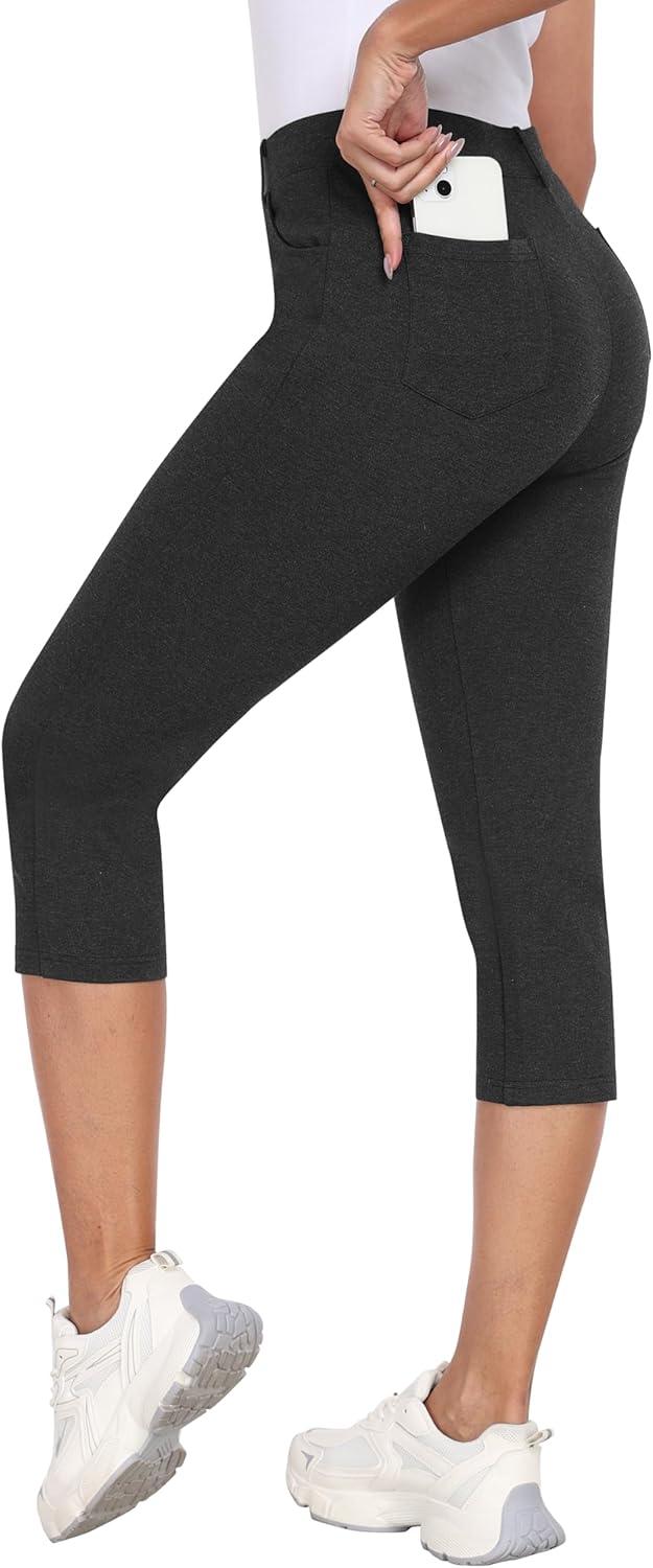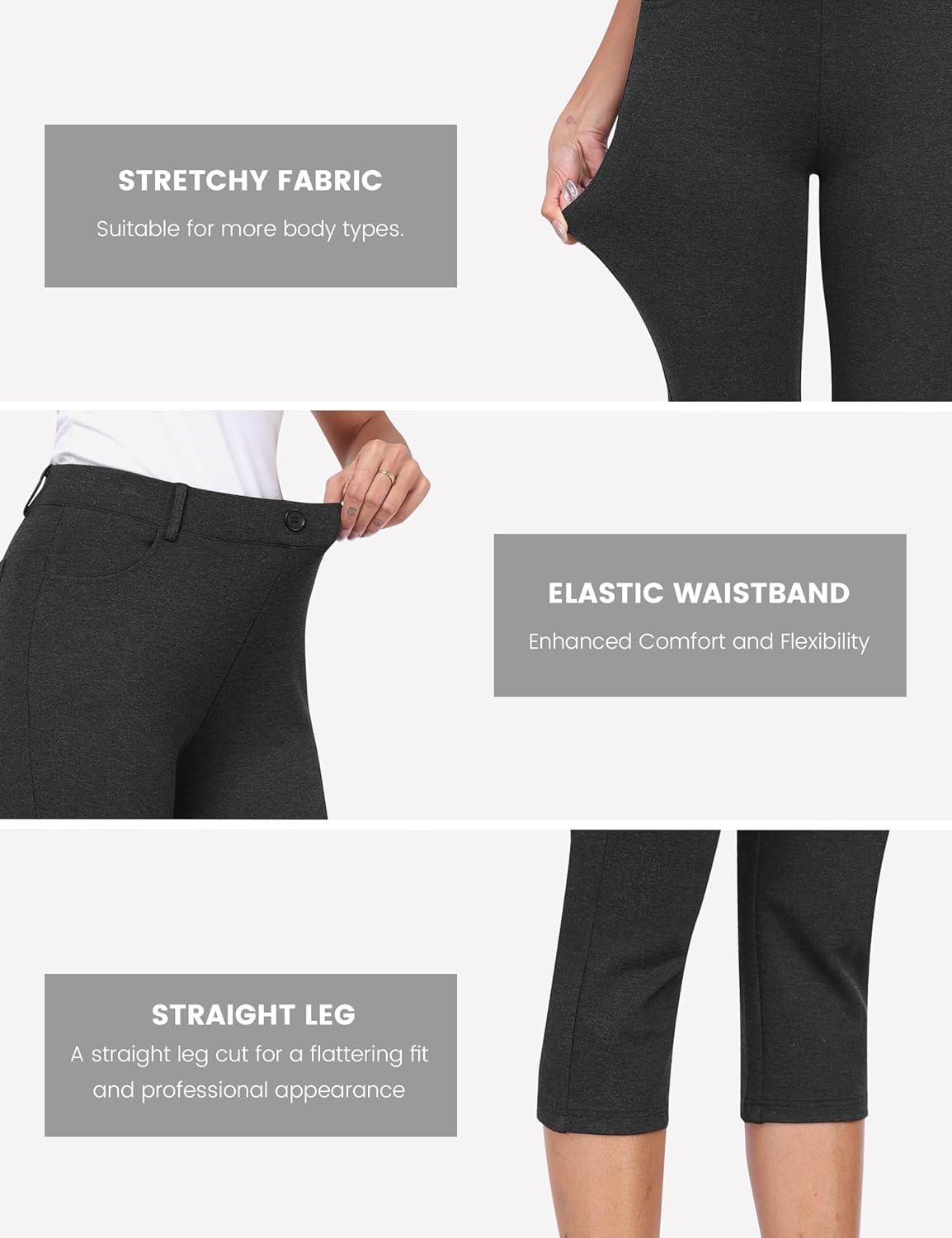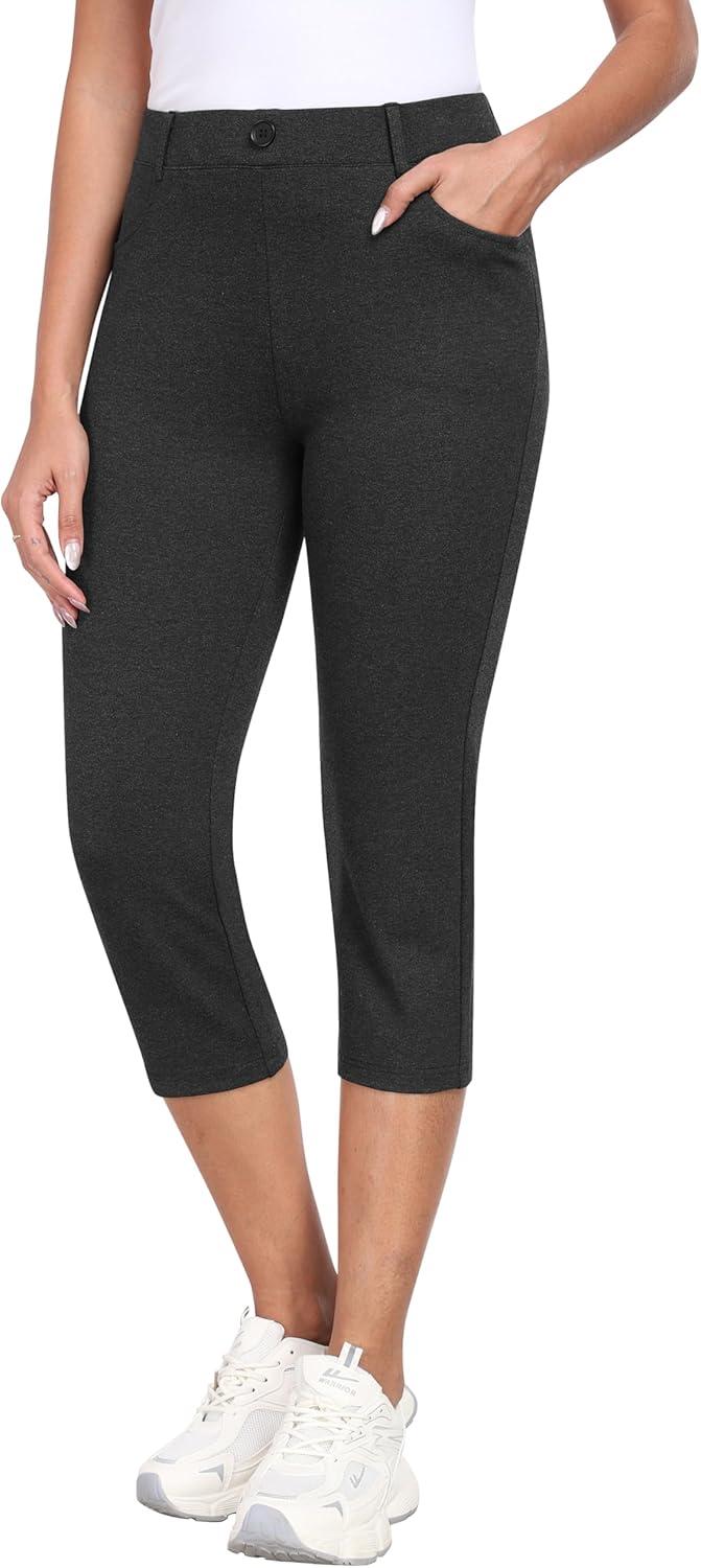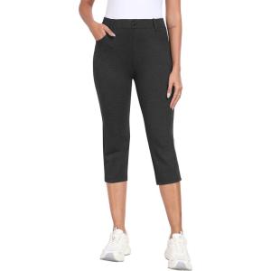 MoFiz Women’s Capri Pants Summer Pull-On Stretch Straight Leg Golf Yoga & Business Casual Dressy Cropped Pants with Pockets(Charcoal Dark Grey)