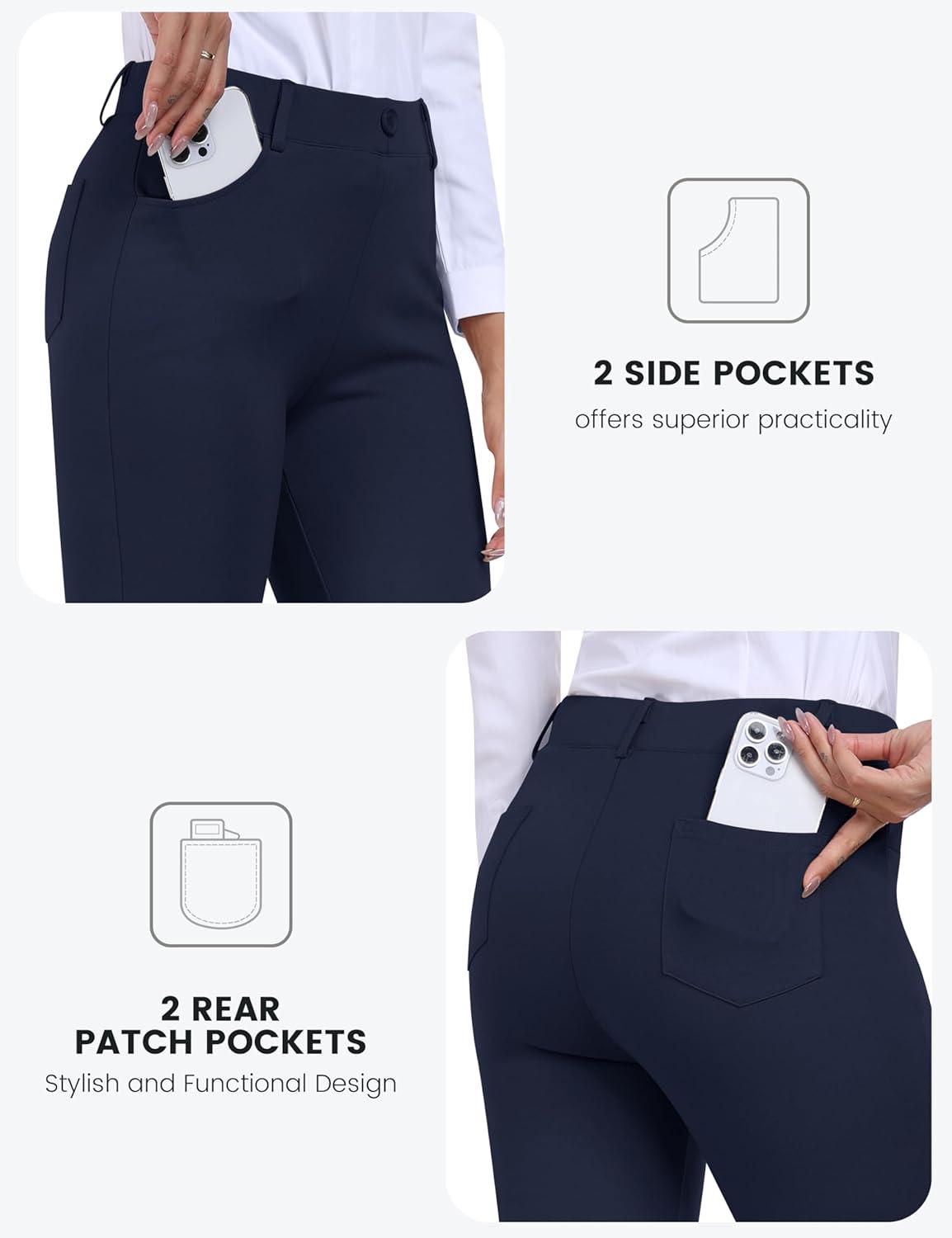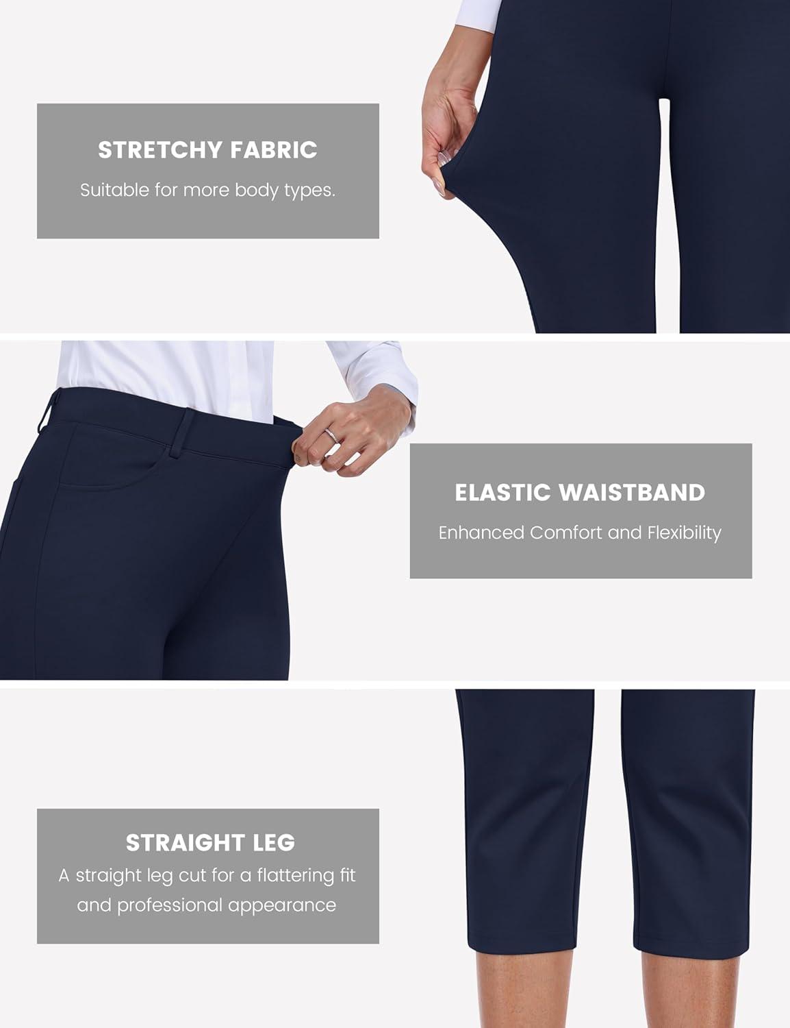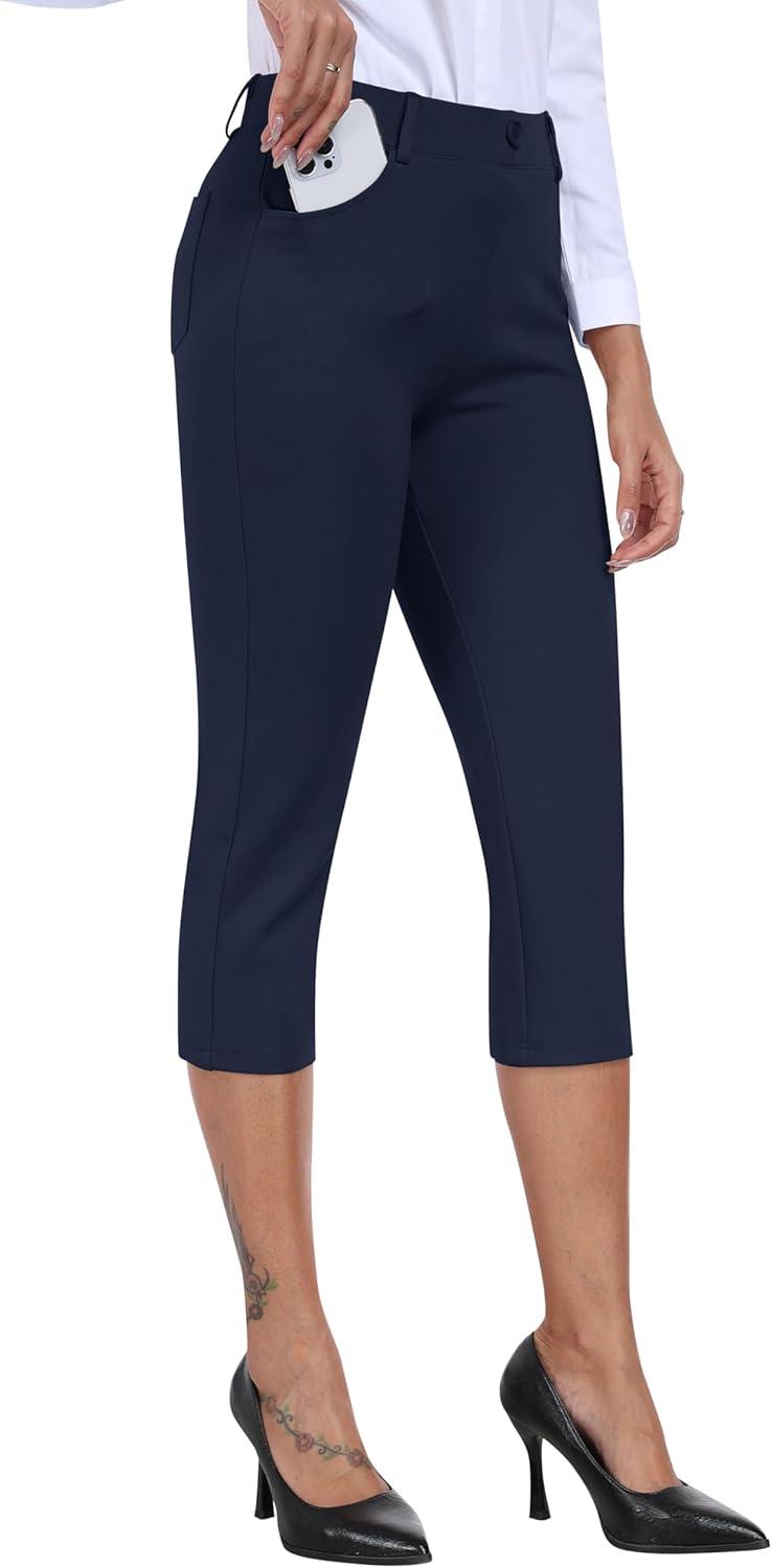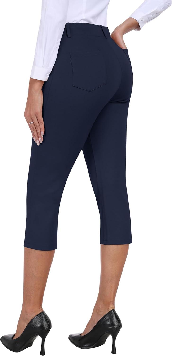 MoFiz Women’s Capri Pants Summer Pull-On Stretch Straight Leg Golf Yoga & Business Casual Dressy Cropped Pants with Pockets(Navy Blue)