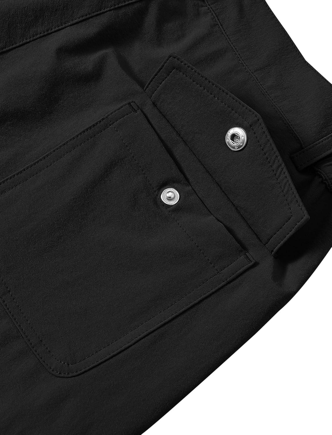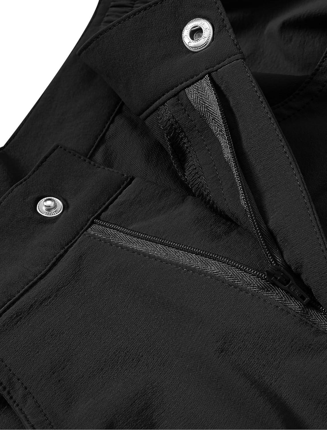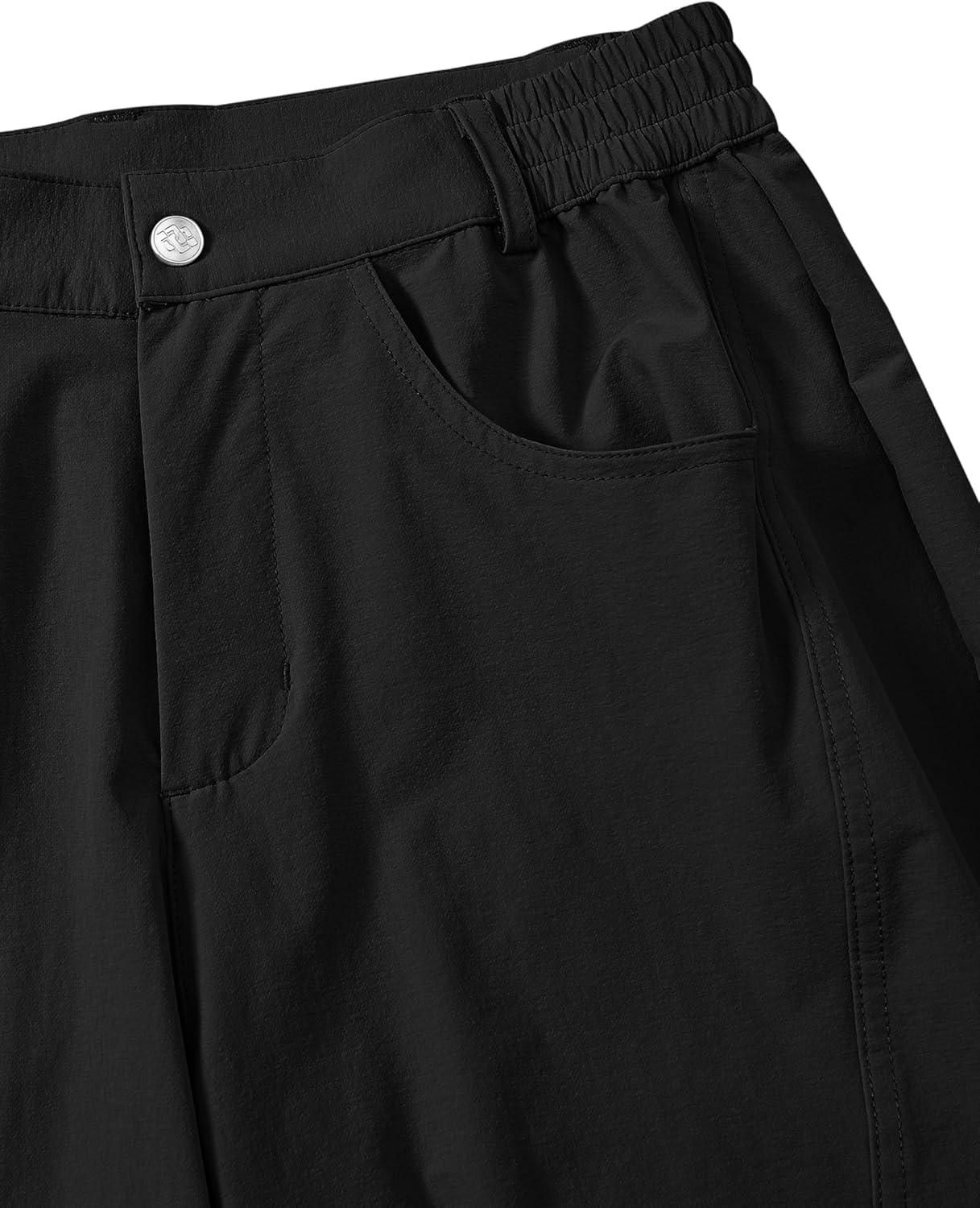 MoFiz Women’s Capri Pants with Pockets Lightweight Cropped Golf Hiking Pants Quick Dry Summer Elastic Waist Capris Black L