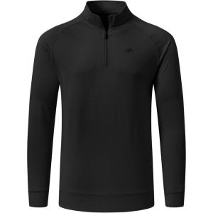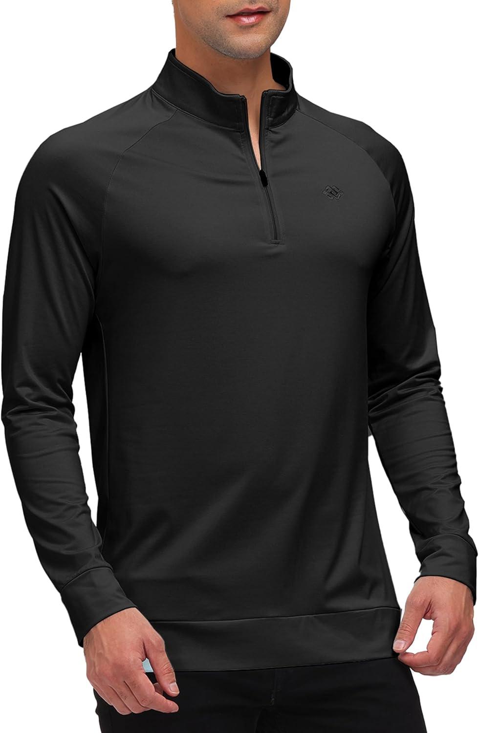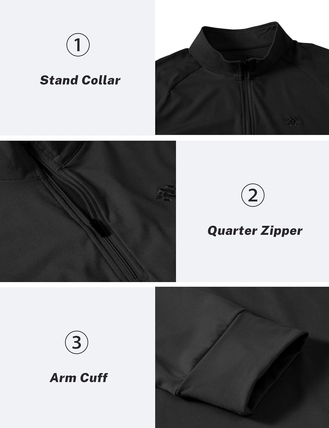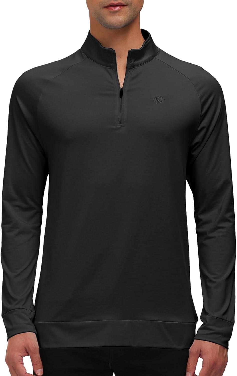 JINSHI Mens Long Sleeve Quarter Zip Pullover Stand Collar Active Golf Polo Shirt 1/4 Zipper Fleece Lining Workout Top(A-black)