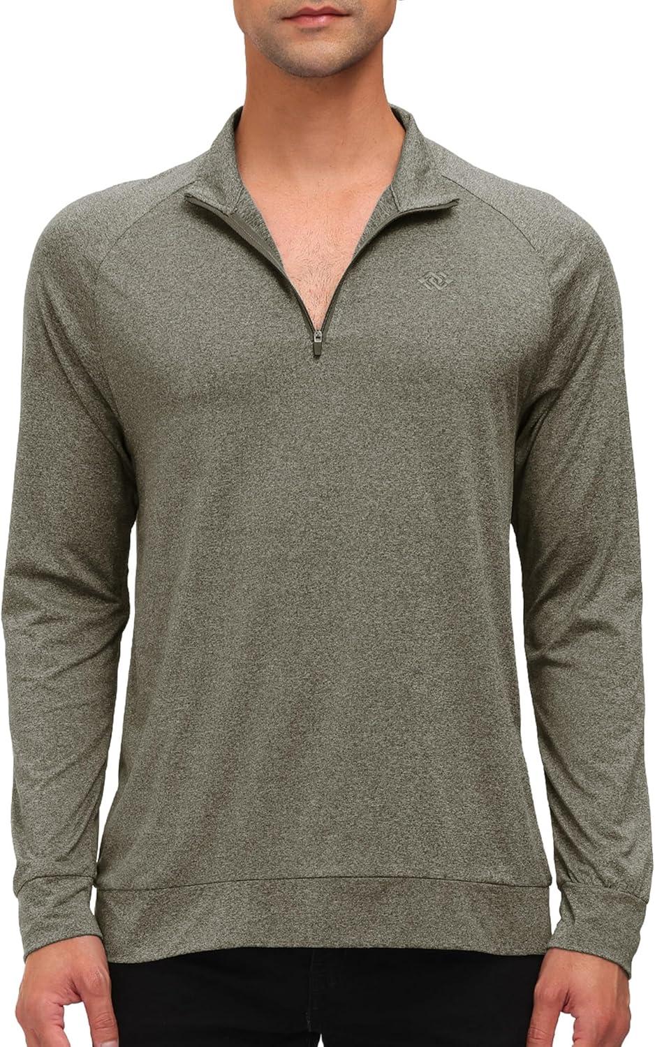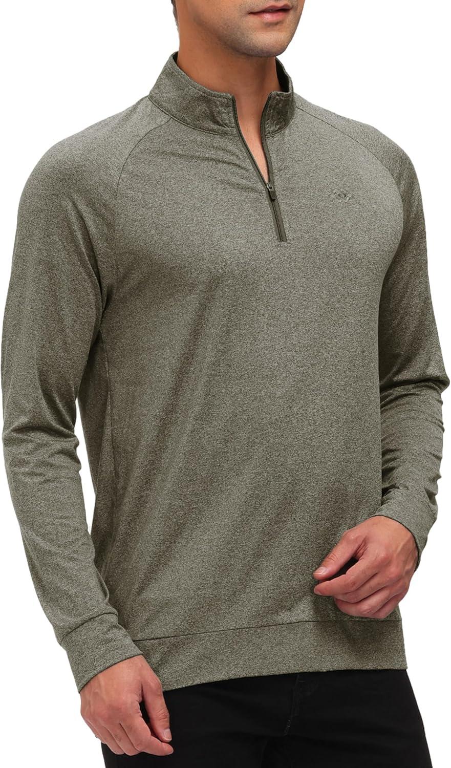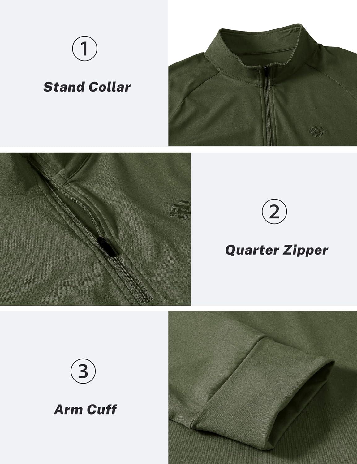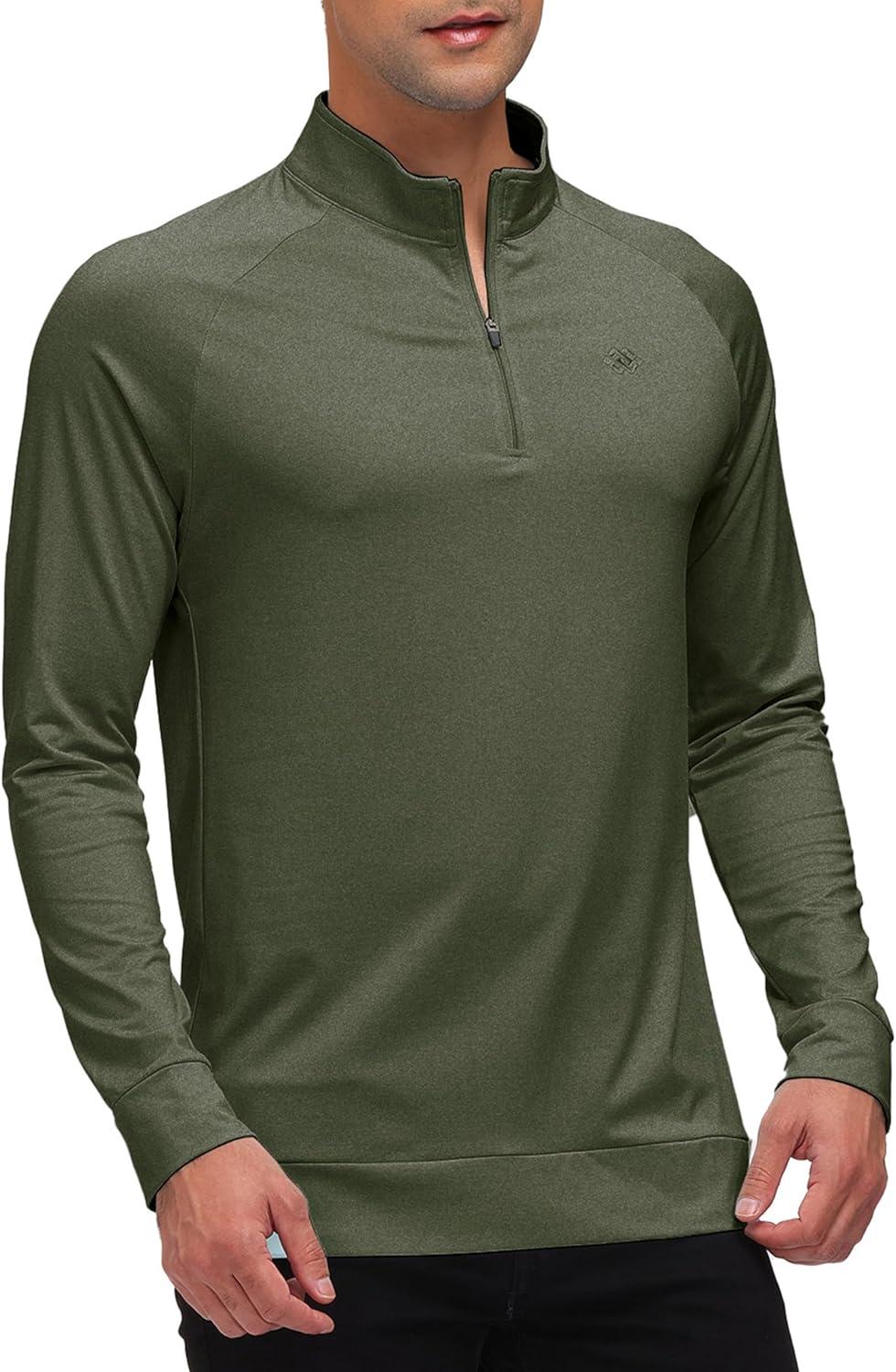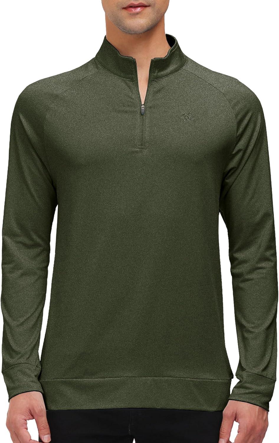 JINSHI Mens Long Sleeve Quarter Zip Pullover Stand Collar Active Golf Polo Shirt 1/4 Zipper Fleece Lining Workout Top(Army Green)
