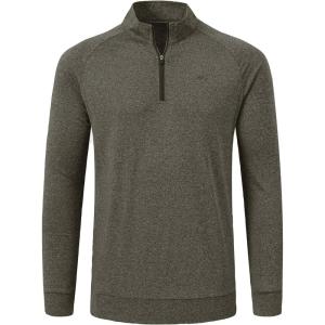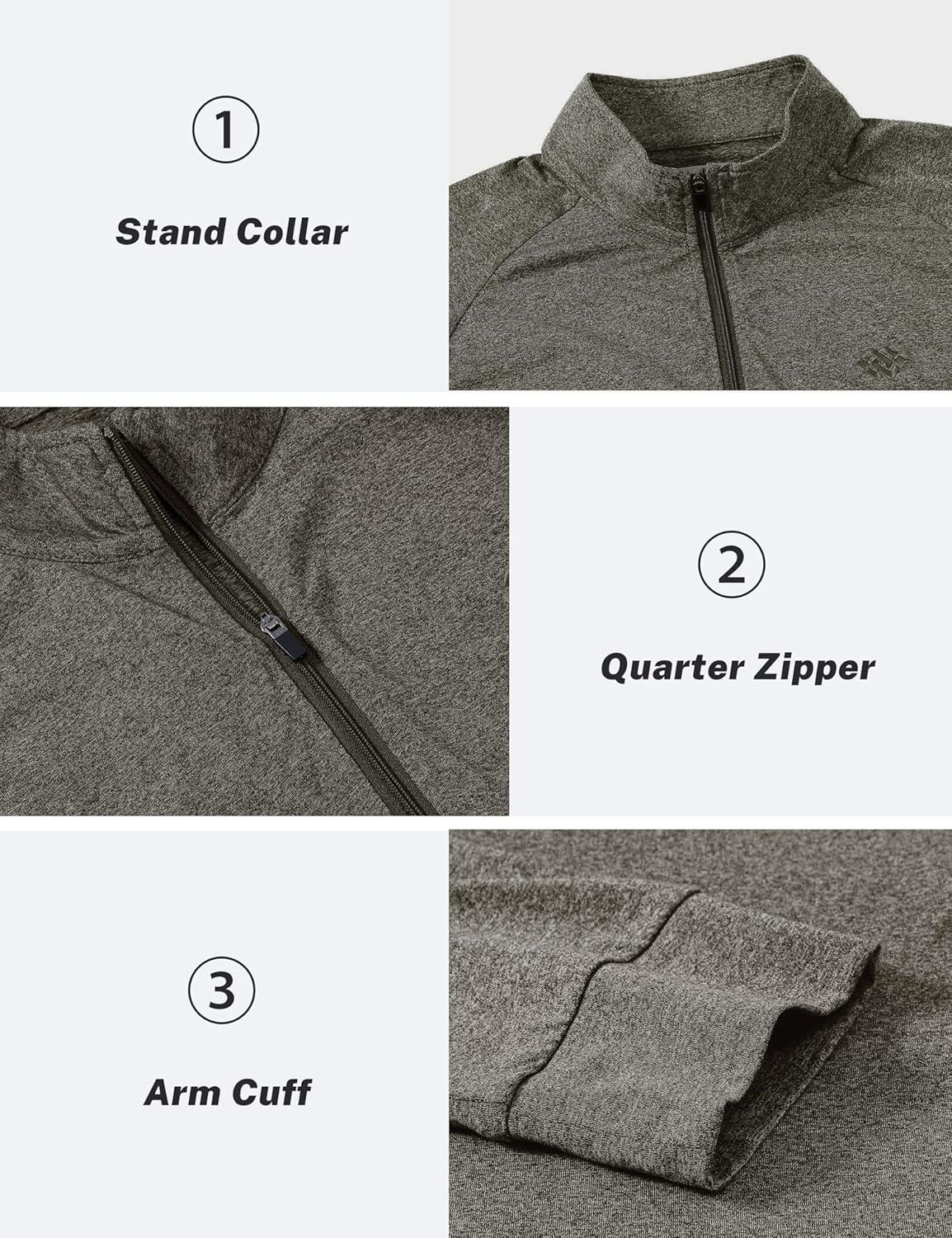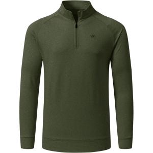 JINSHI Mens Long Sleeve Quarter Zip Pullover Stand Collar Active Golf Polo Shirt 1/4 Zipper Fleece Lining Workout Top(Wheat Green)