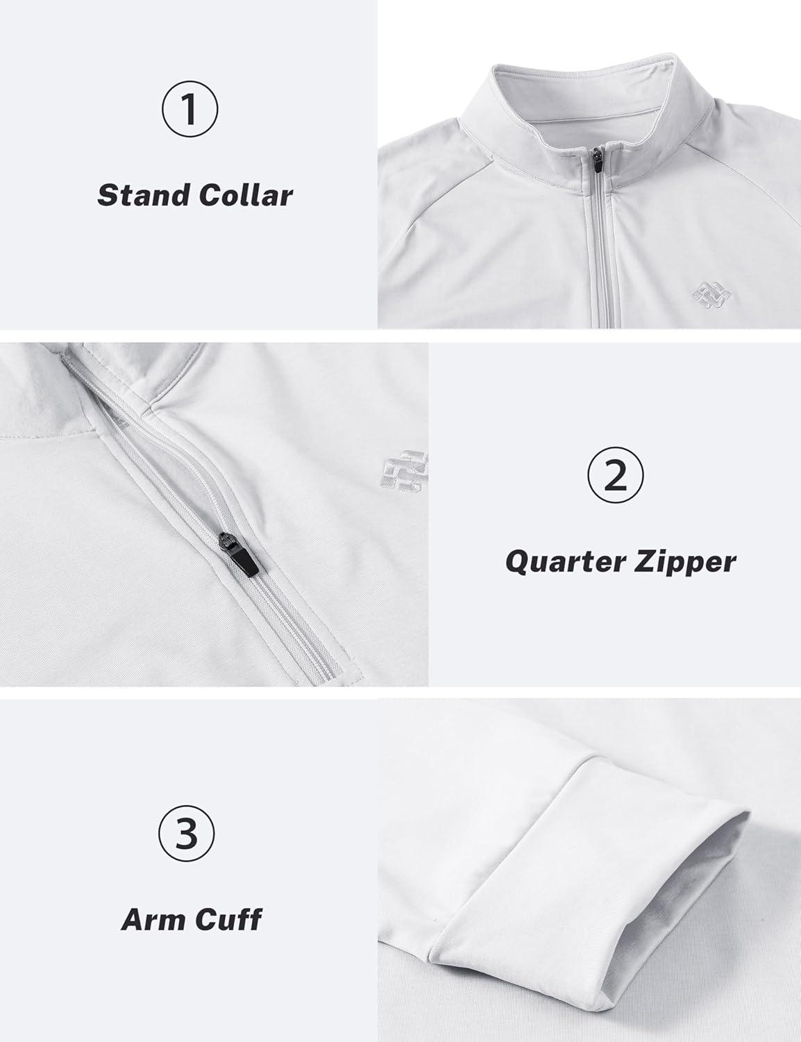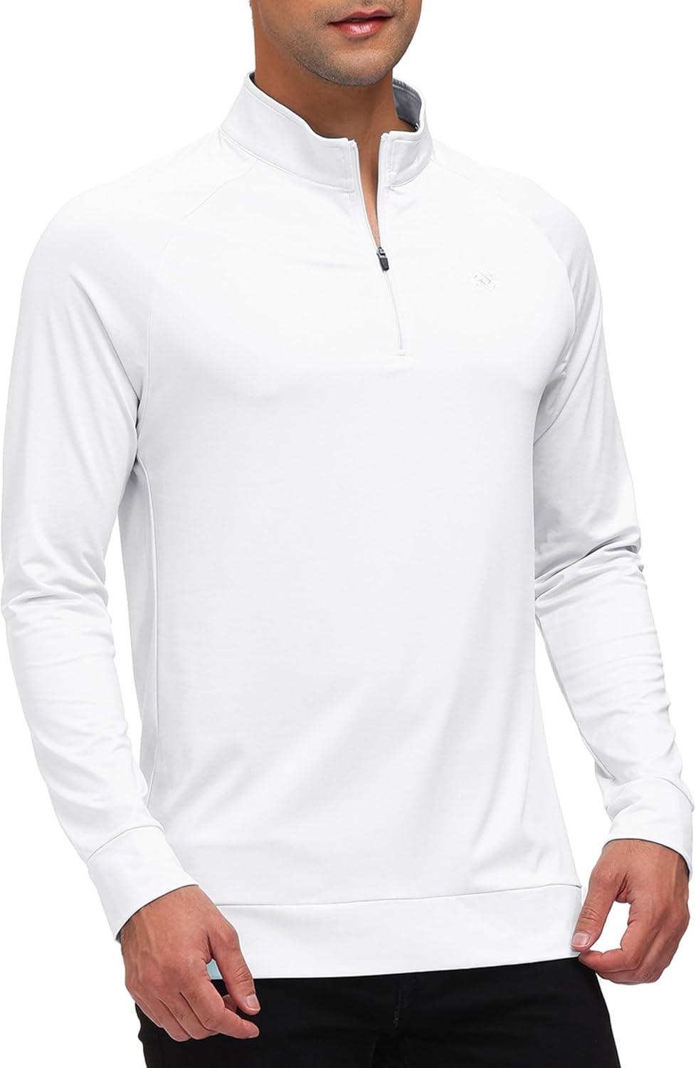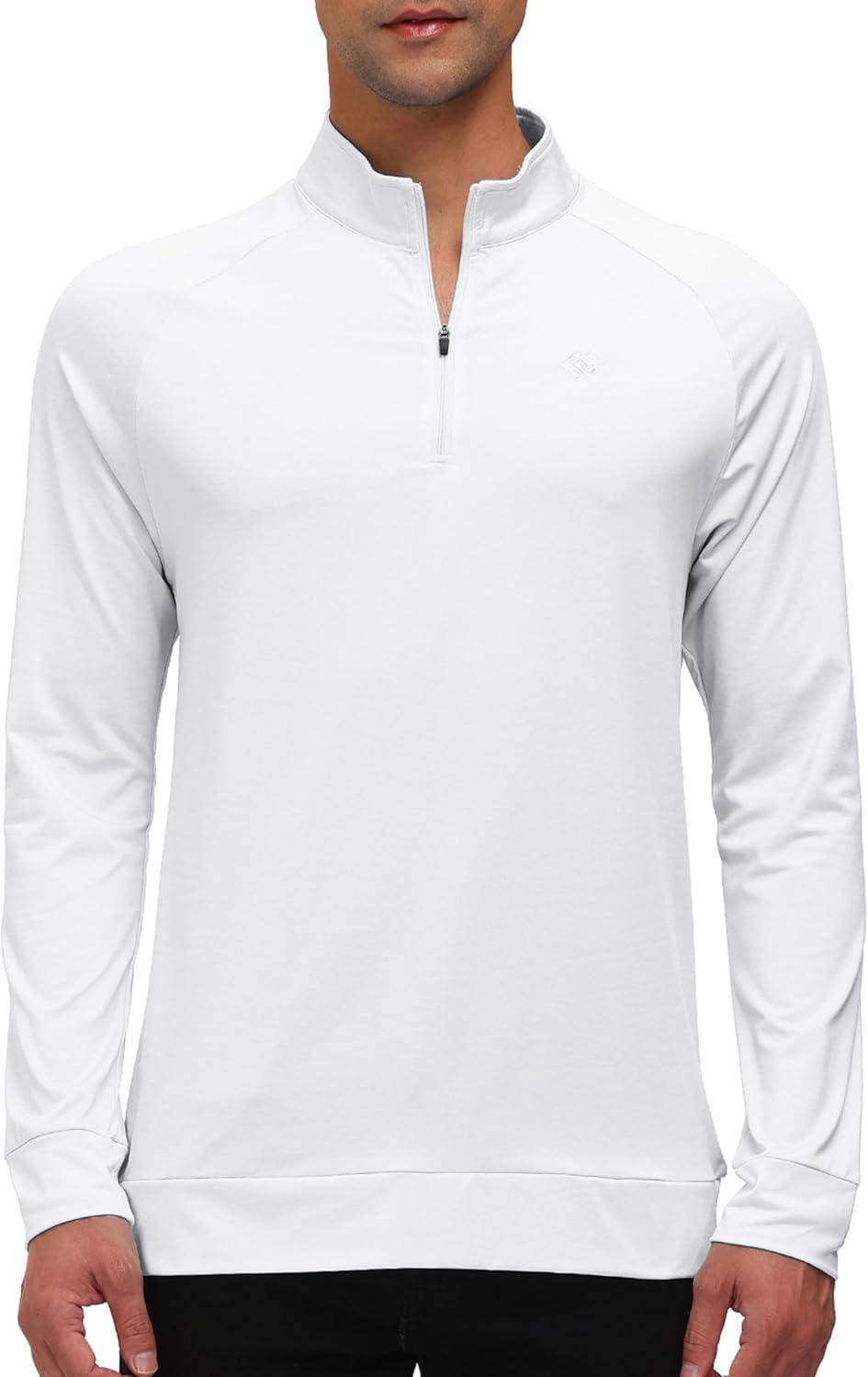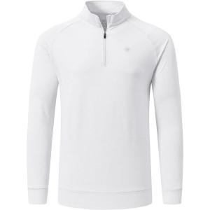 JINSHI Mens Long Sleeve Quarter Zip Pullover Stand Collar Active Golf Polo Shirt 1/4 Zipper Fleece Lining Workout Top(A-white)