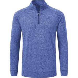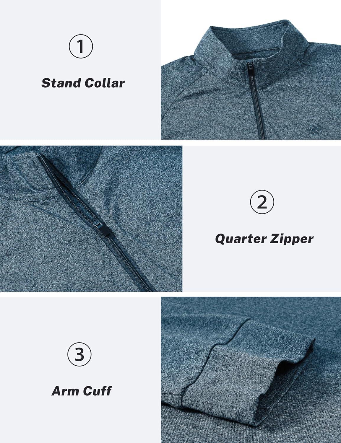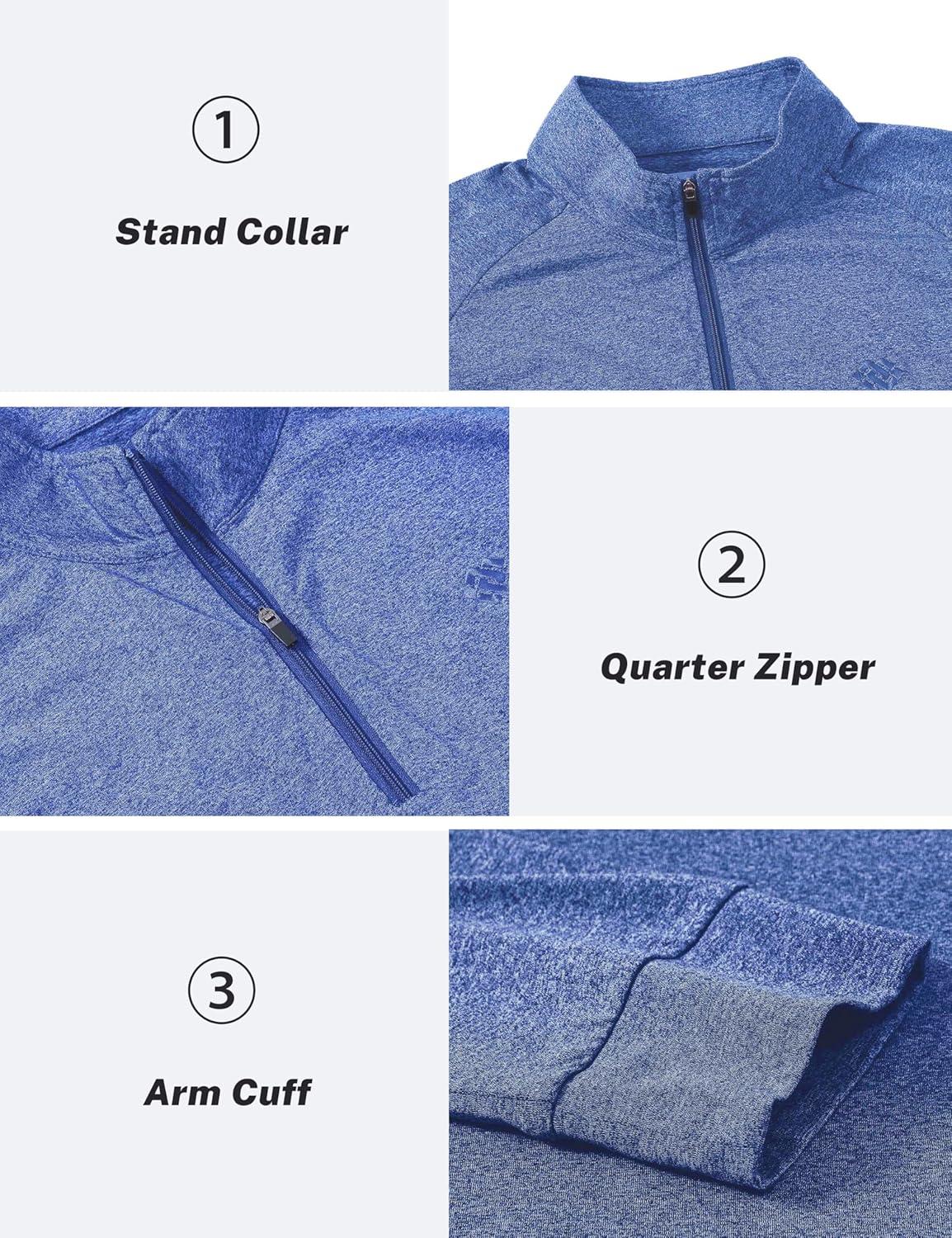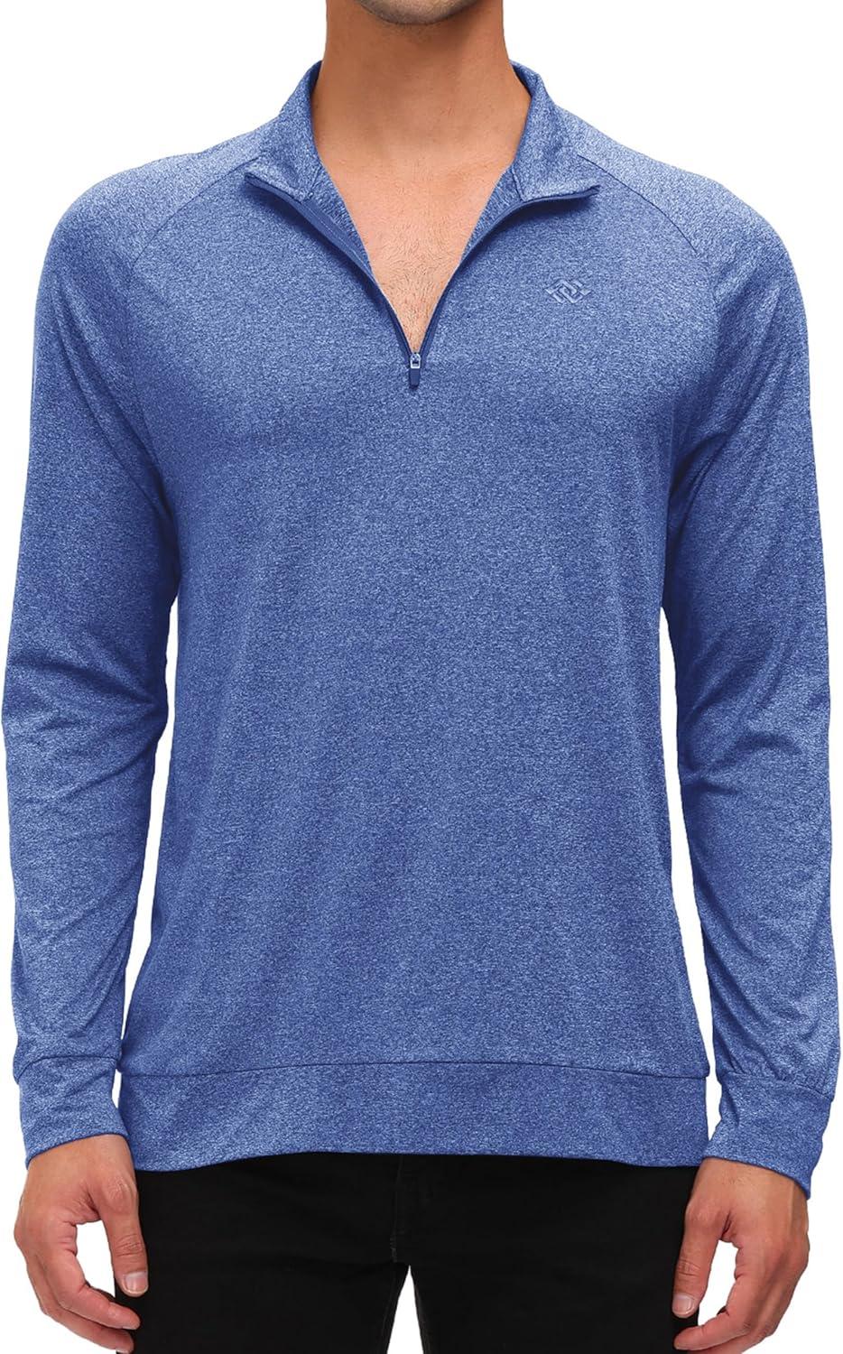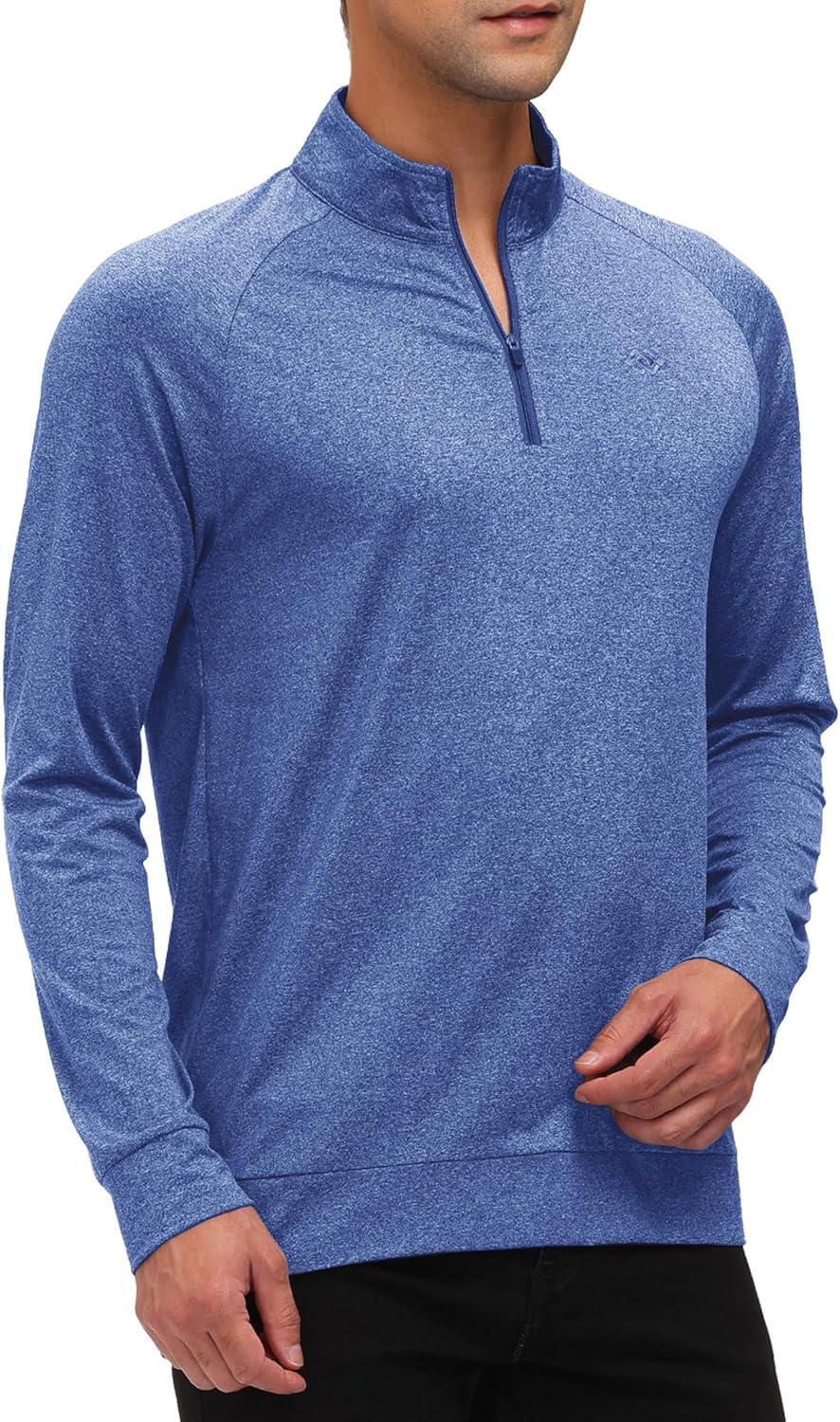 JINSHI Mens Long Sleeve Quarter Zip Pullover Stand Collar Active Golf Polo Shirt 1/4 Zipper Fleece Lining Workout Top(Blue)