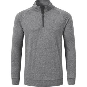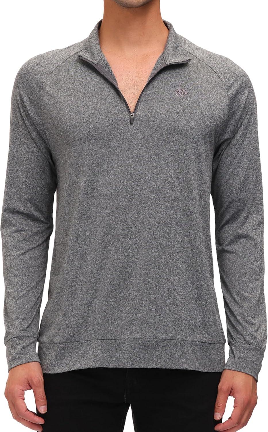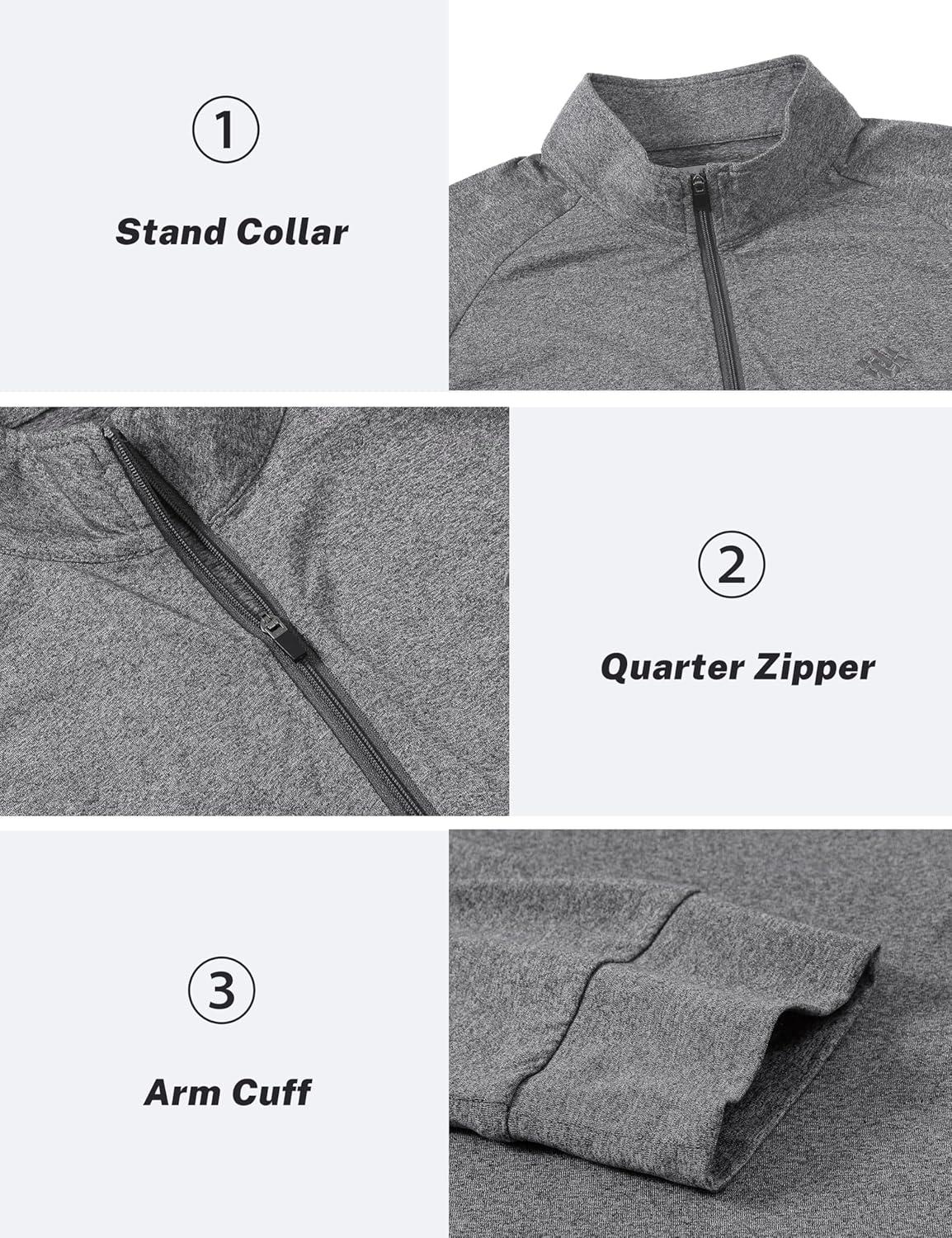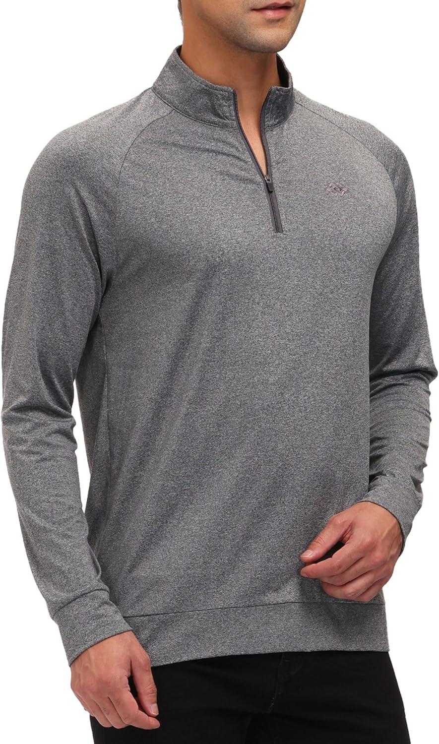 JINSHI Mens Long Sleeve Quarter Zip Pullover Stand Collar Active Golf Polo Shirt 1/4 Zipper Fleece Lining Workout Top(Dark Grey)
