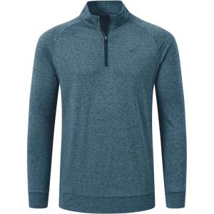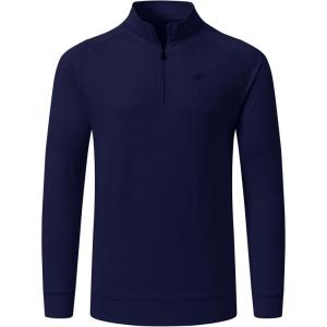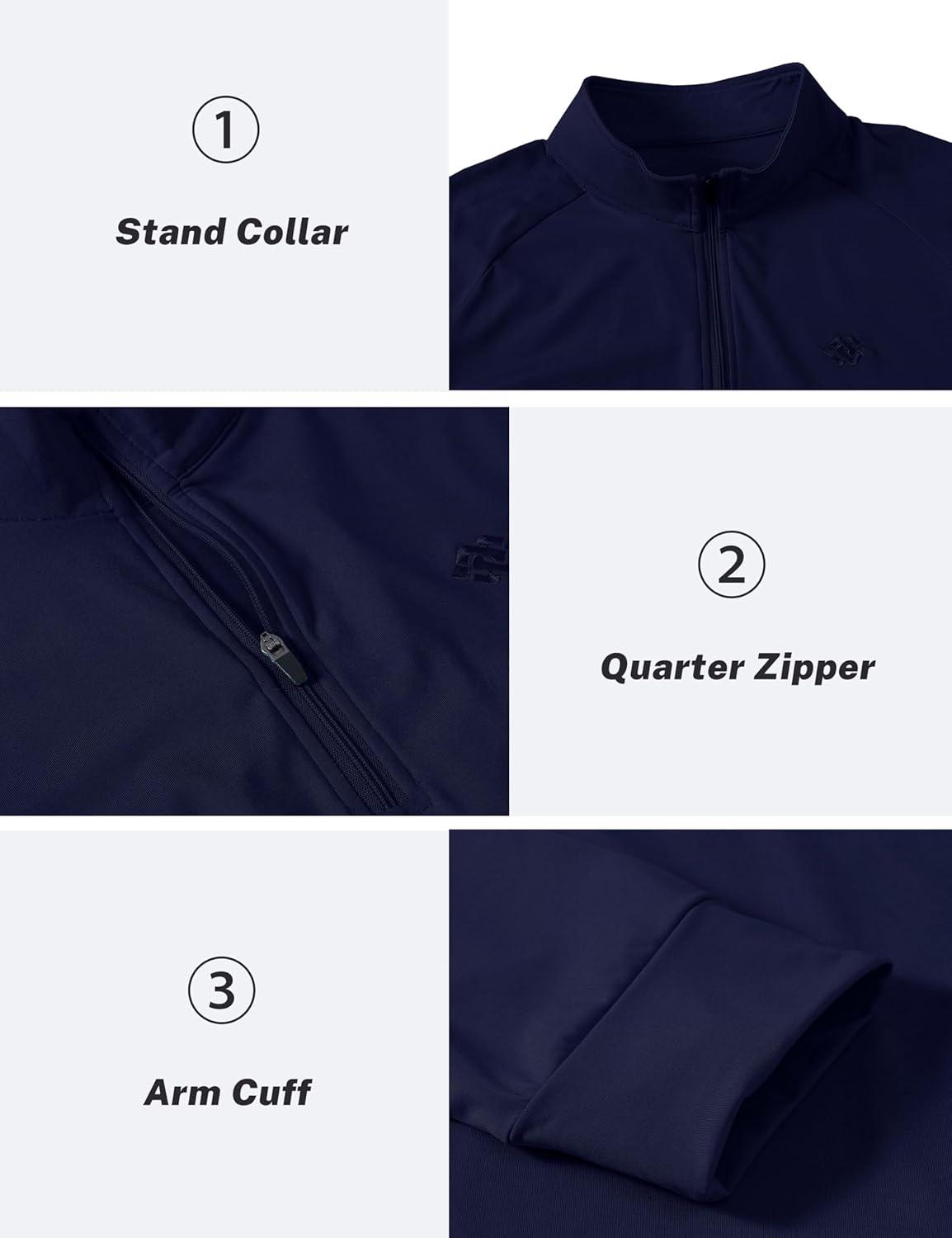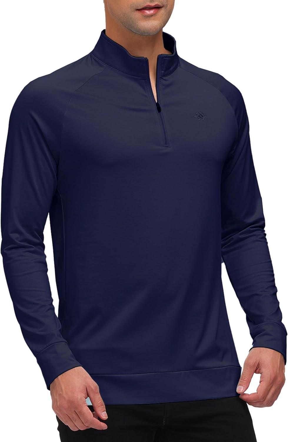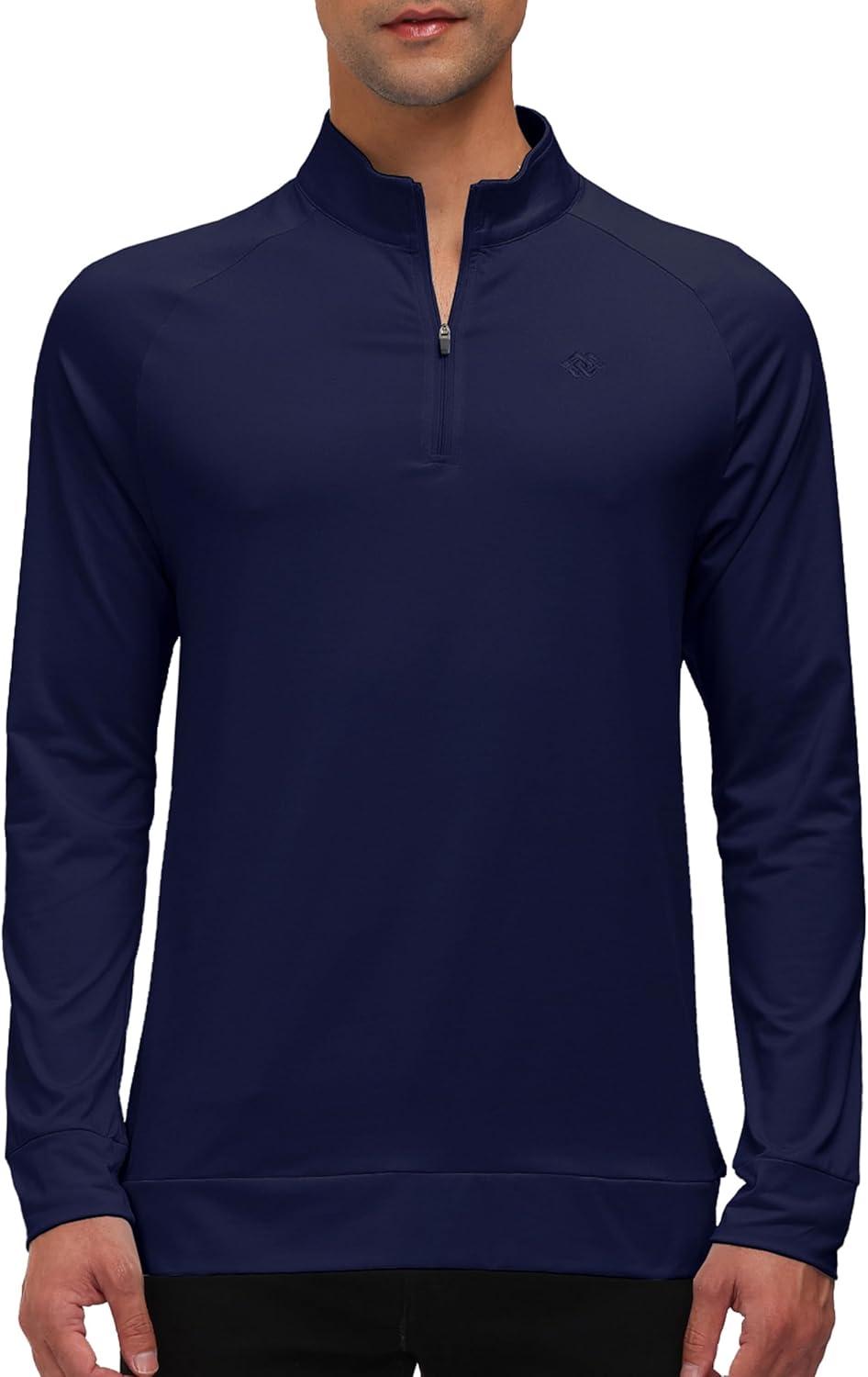 JINSHI Mens Long Sleeve Quarter Zip Pullover Stand Collar Active Golf Polo Shirt 1/4 Zipper Fleece Lining Workout Top(Navy)