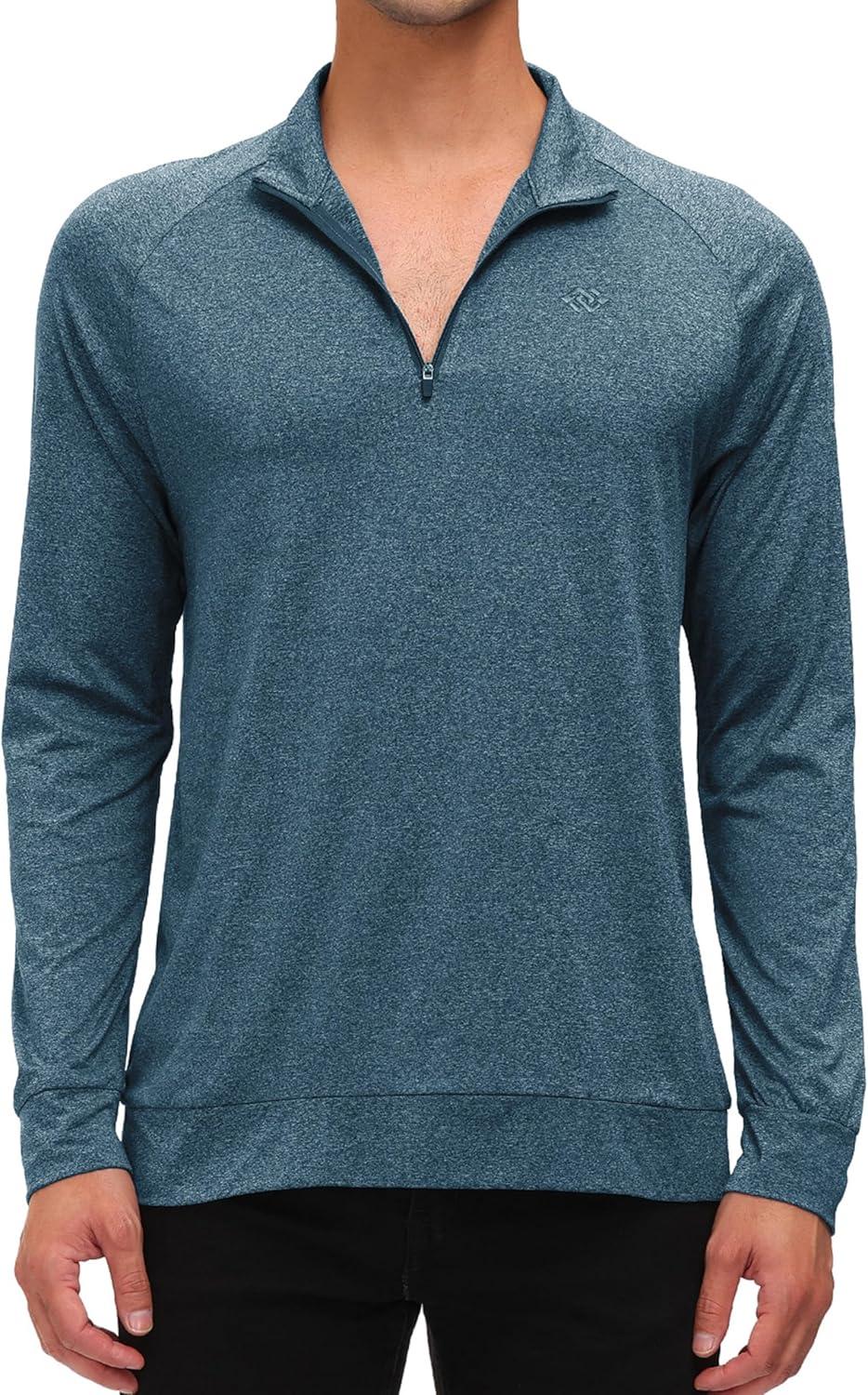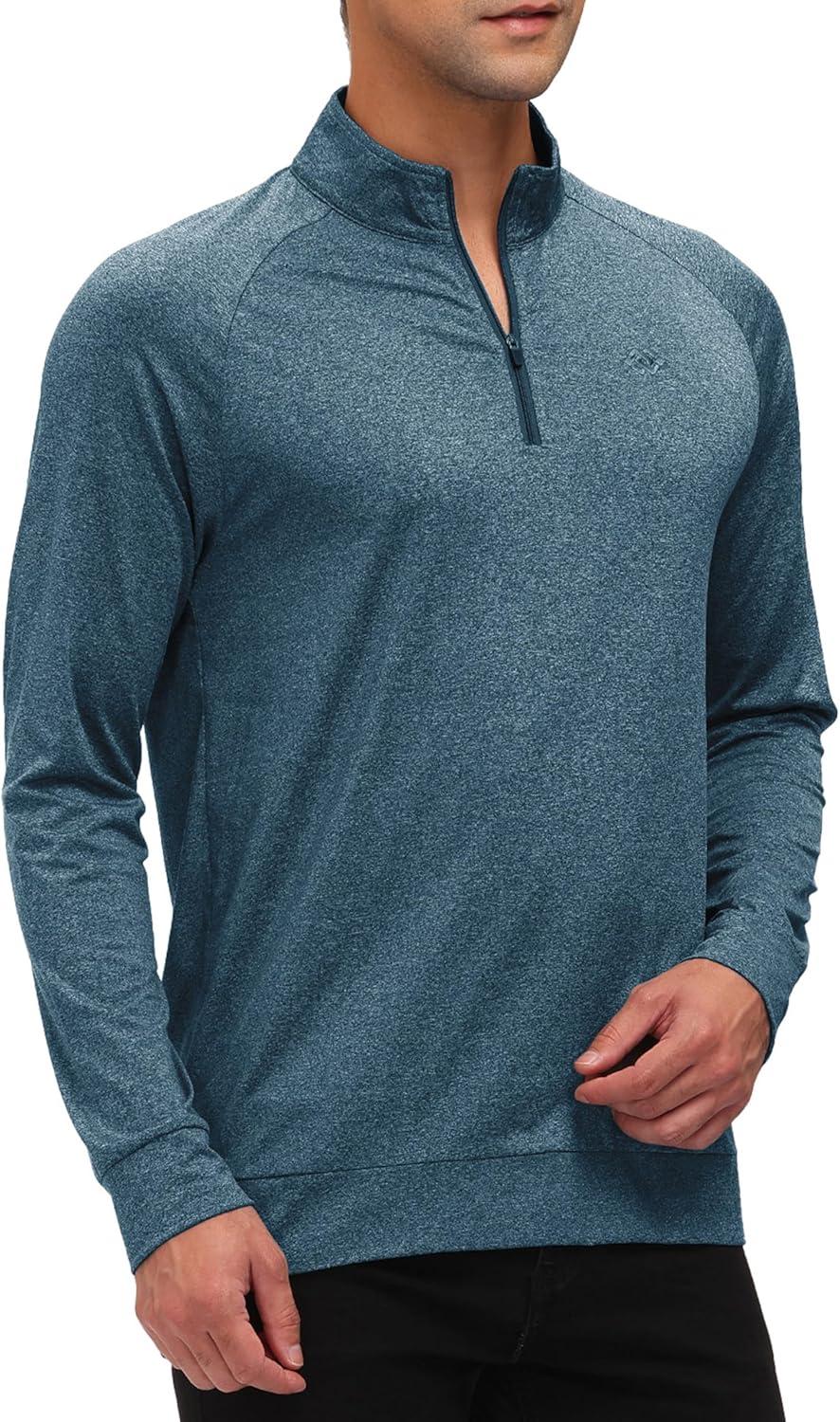 JINSHI Mens Long Sleeve Quarter Zip Pullover Stand Collar Active Golf Polo Shirt 1/4 Zipper Fleece Lining Workout Top(Ocean Blue)