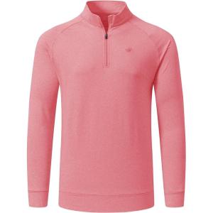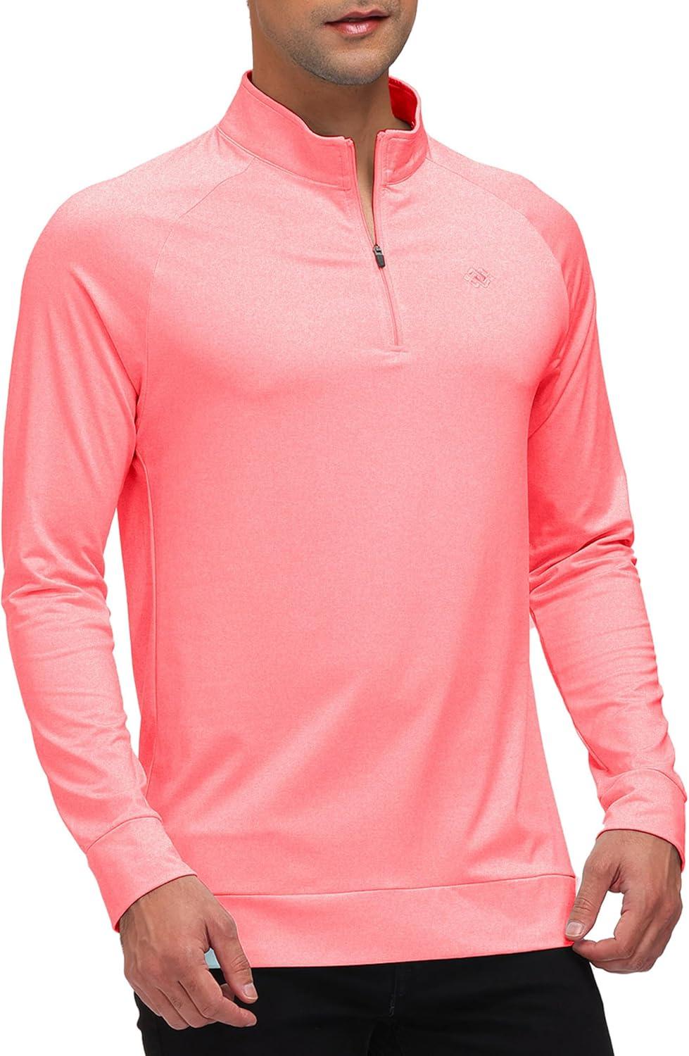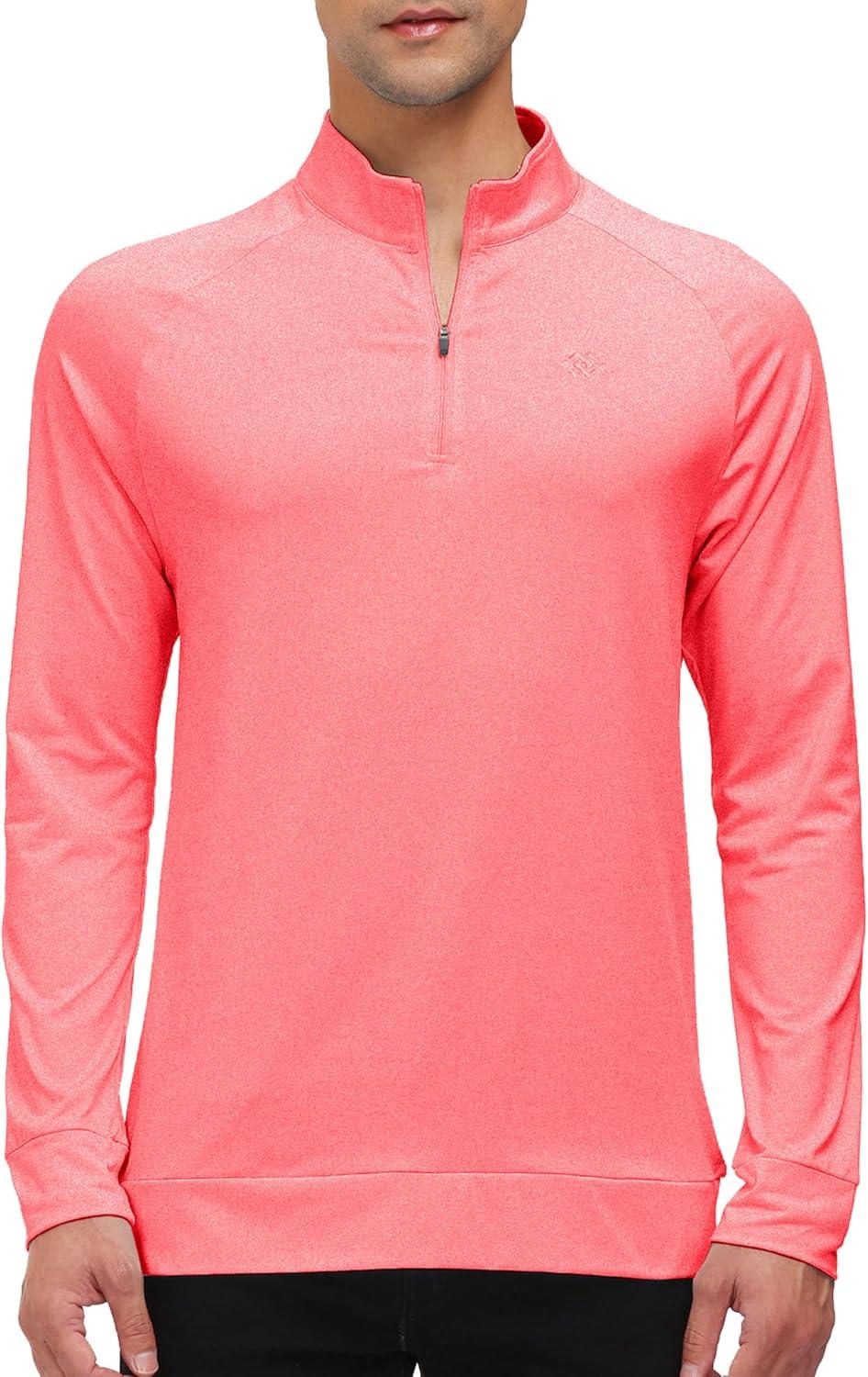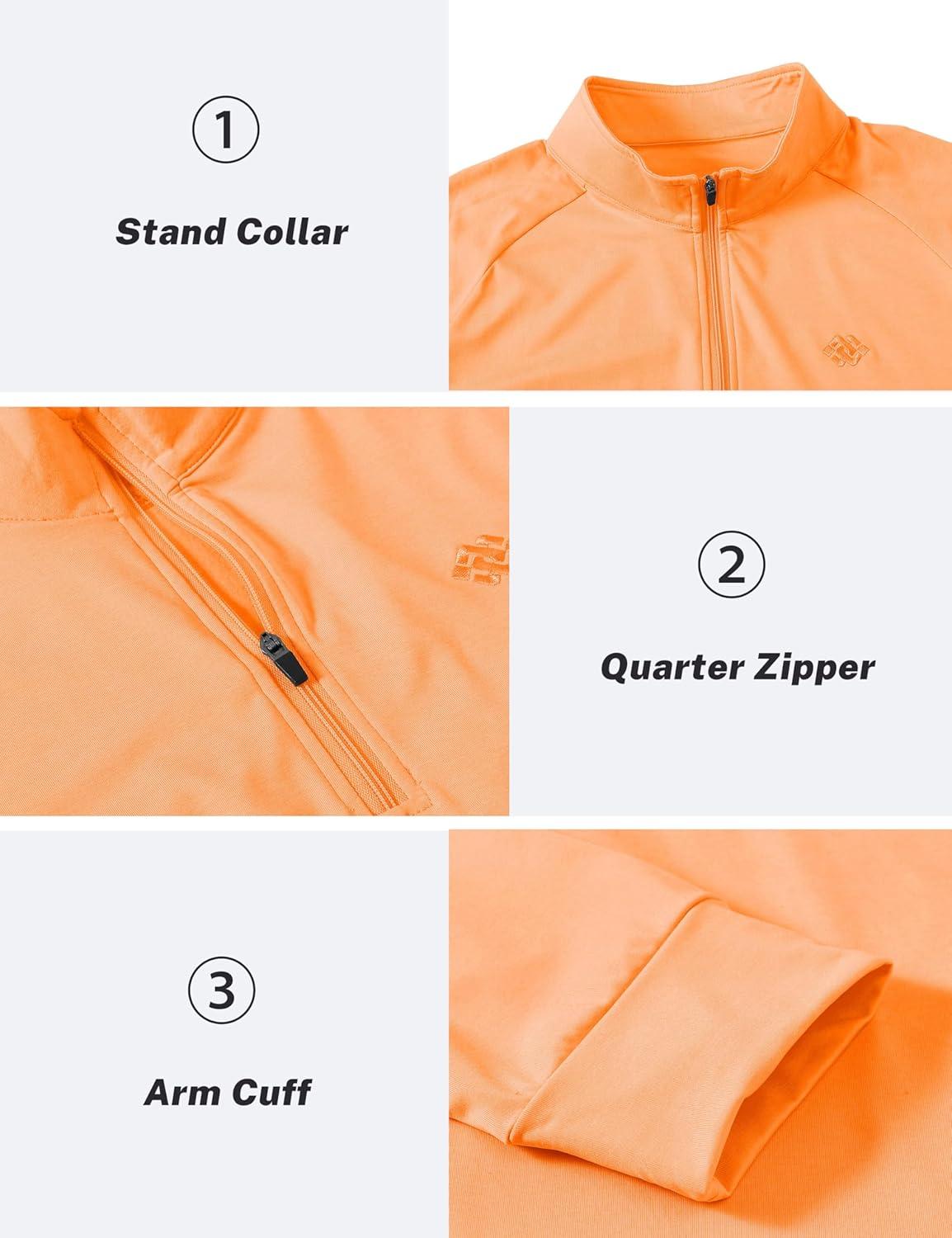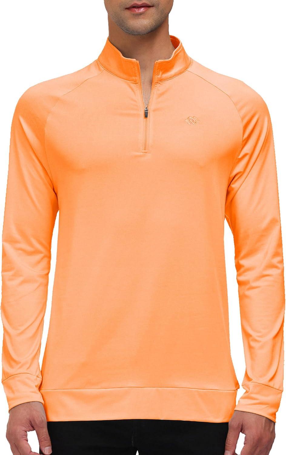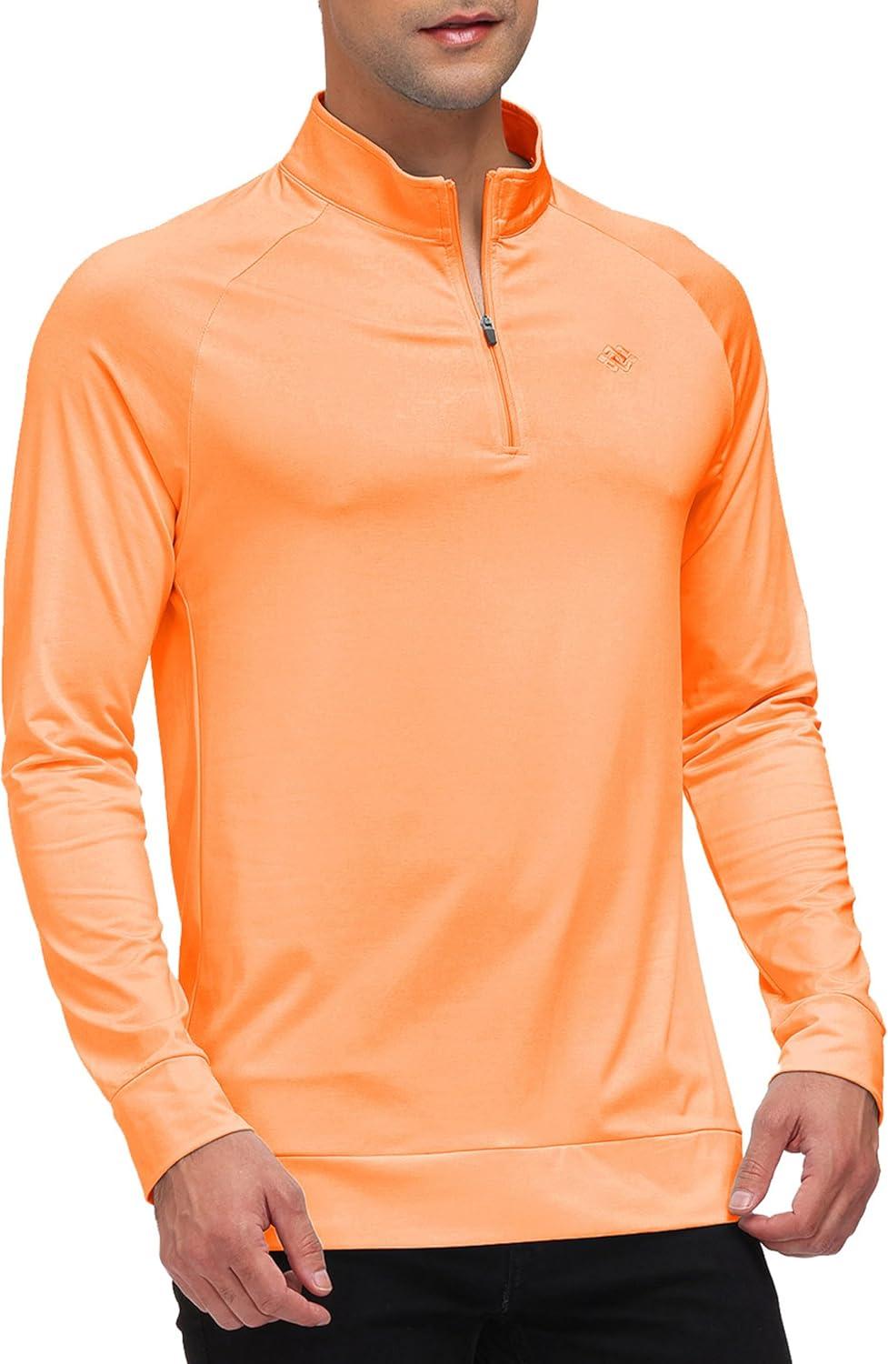 JINSHI Mens Long Sleeve Quarter Zip Pullover Stand Collar Active Golf Polo Shirt 1/4 Zipper Fleece Lining Workout Top(Orange 1)