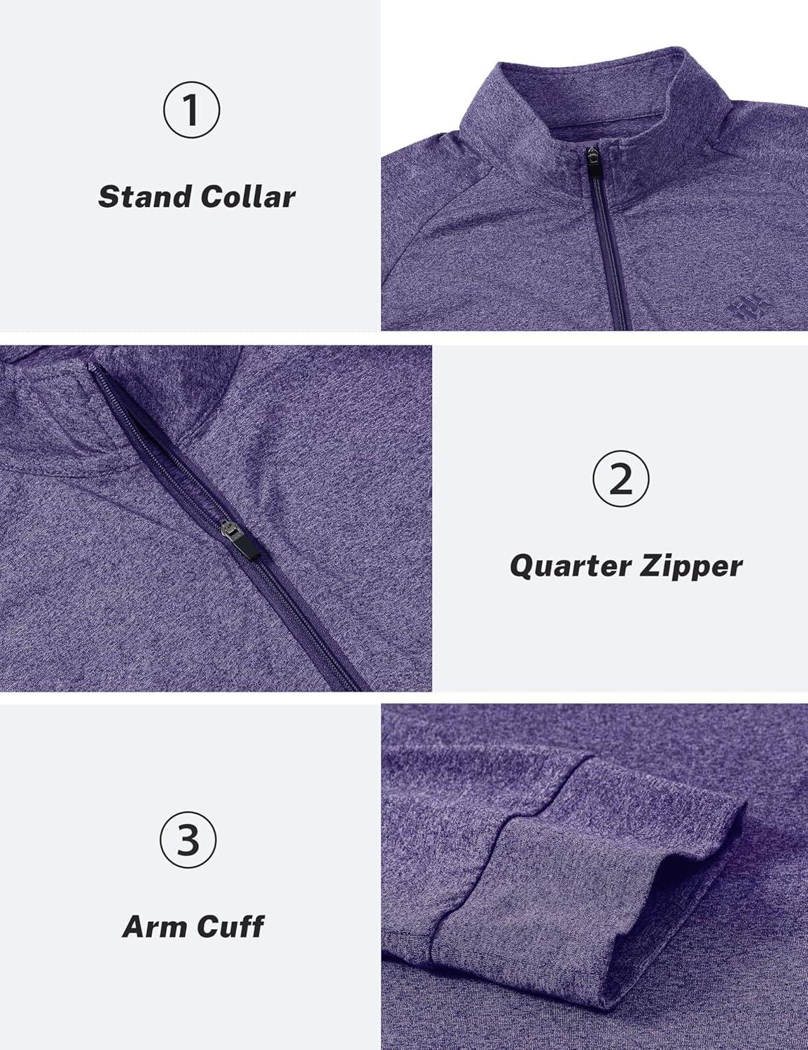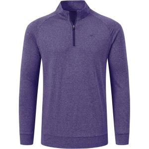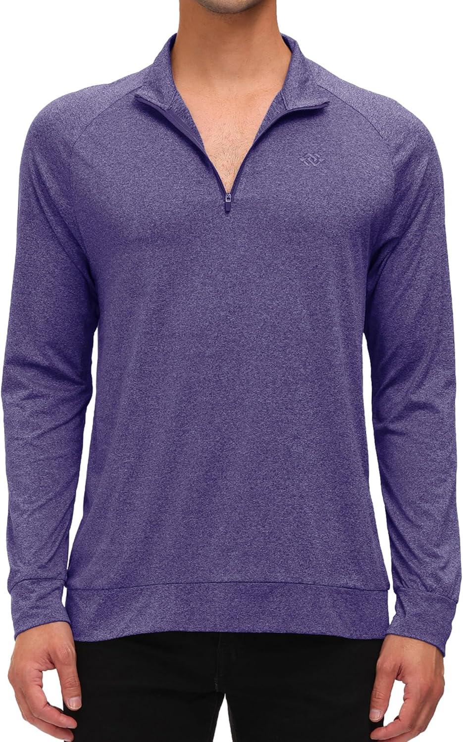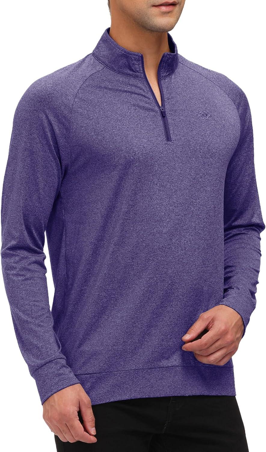 JINSHI Mens Long Sleeve Quarter Zip Pullover Stand Collar Active Golf Polo Shirt 1/4 Zipper Fleece Lining Workout Top(Purple)
