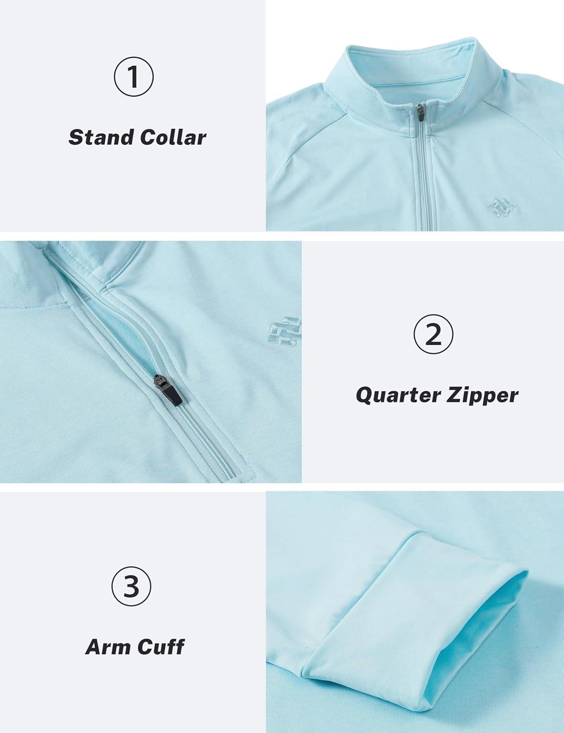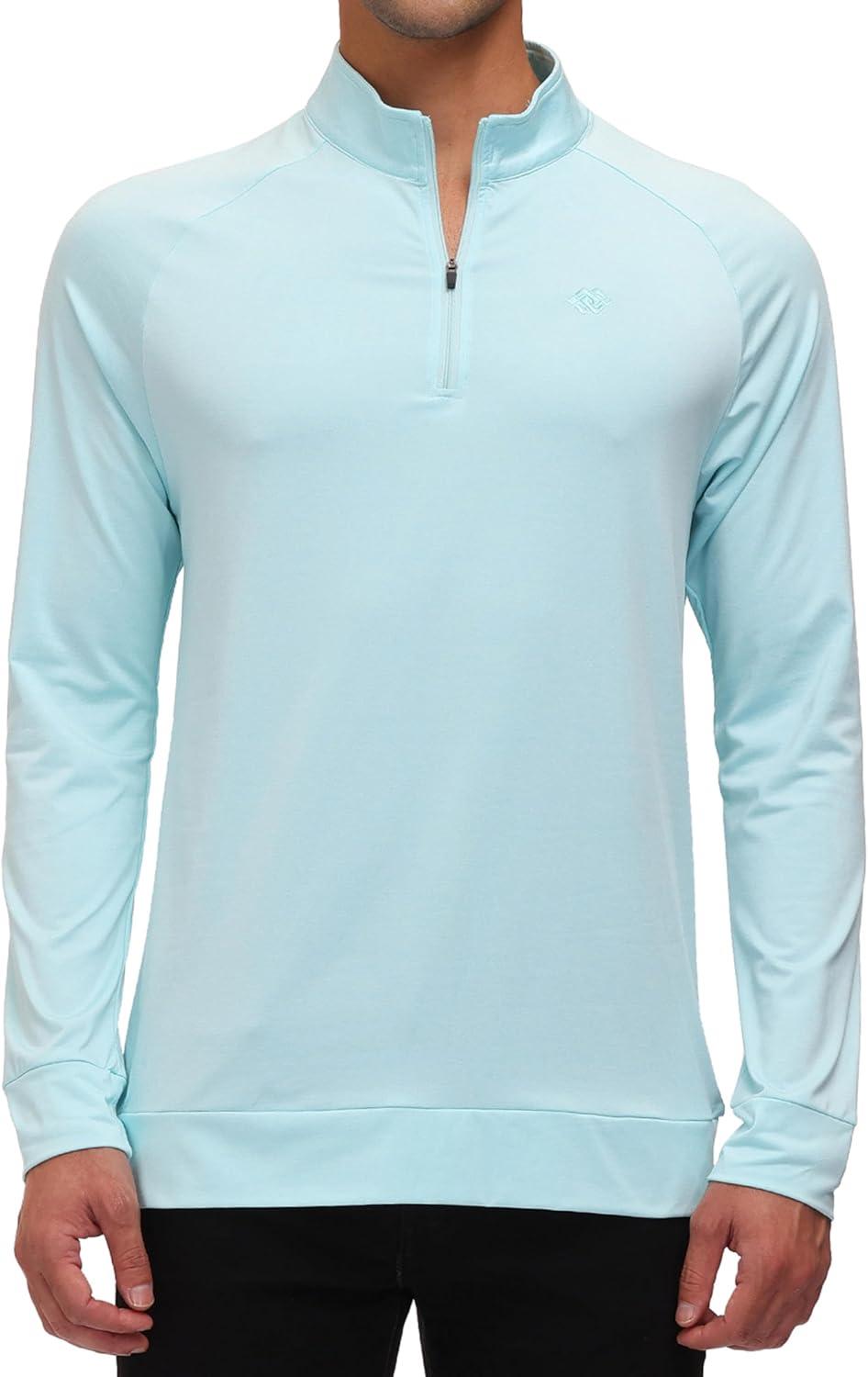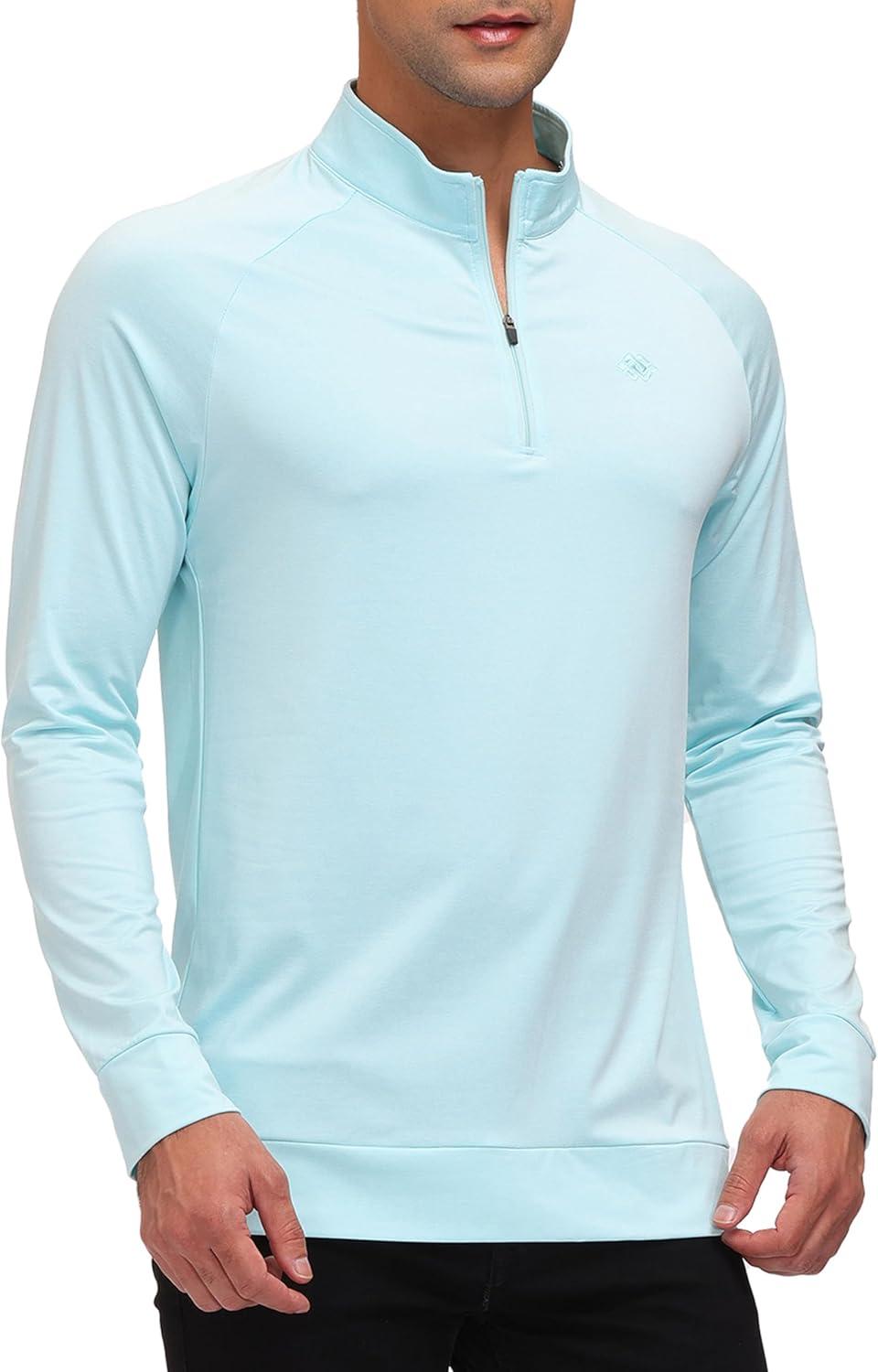 JINSHI Mens Long Sleeve Quarter Zip Pullover Stand Collar Active Golf Polo Shirt 1/4 Zipper Fleece Lining Workout Top(Sky Blue)