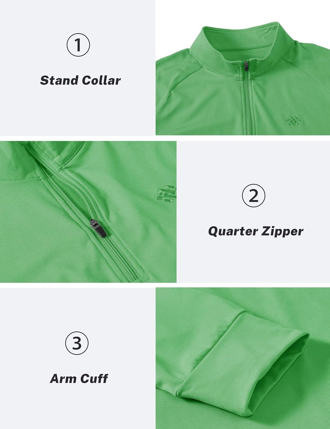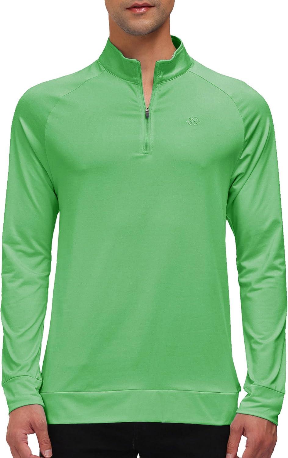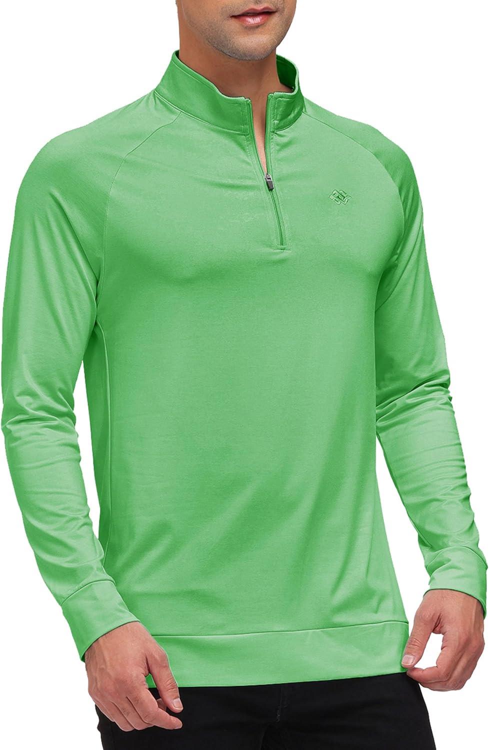 JINSHI Mens Long Sleeve Quarter Zip Pullover Stand Collar Active Golf Polo Shirt 1/4 Zipper Fleece Lining Workout Top(Green)