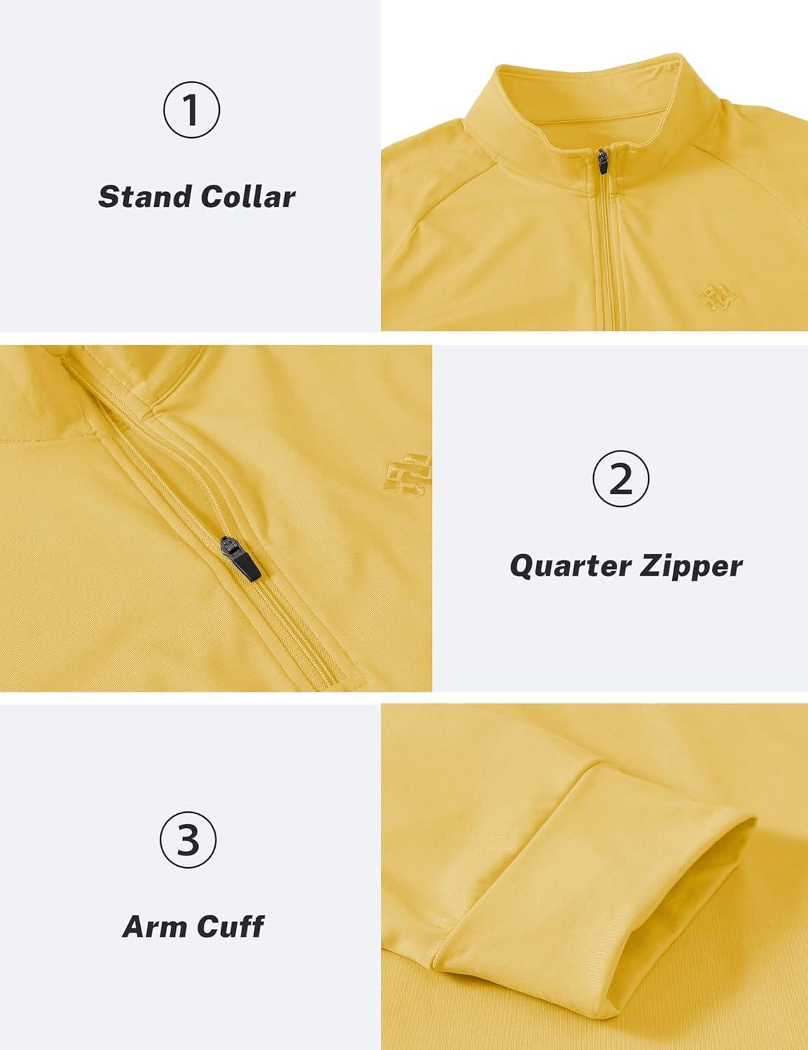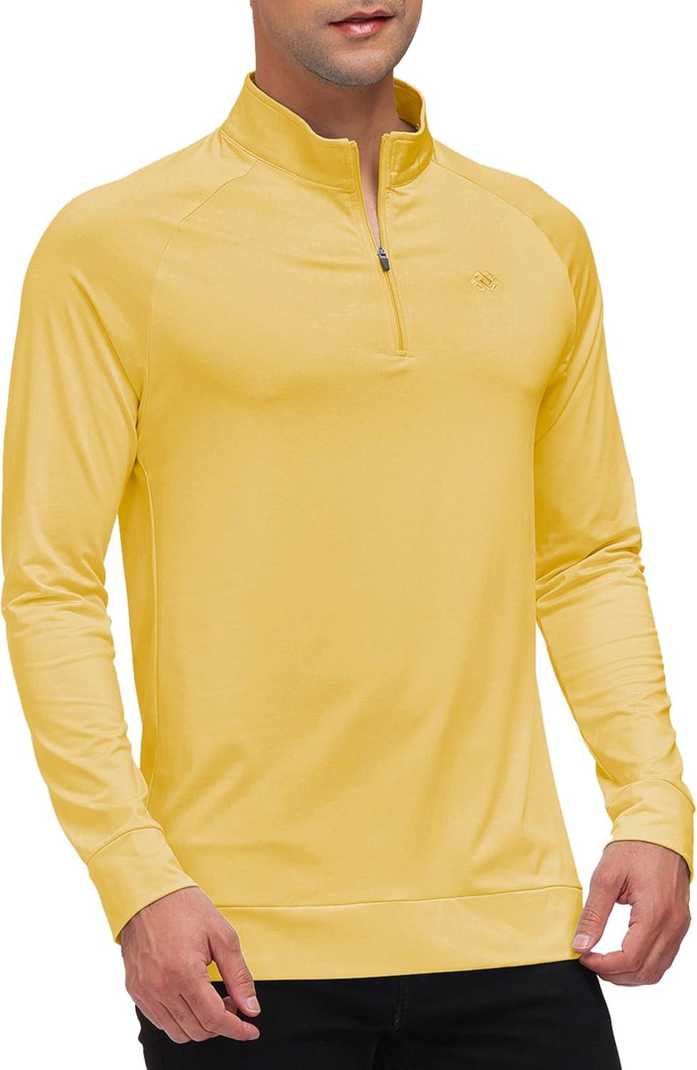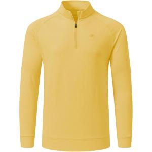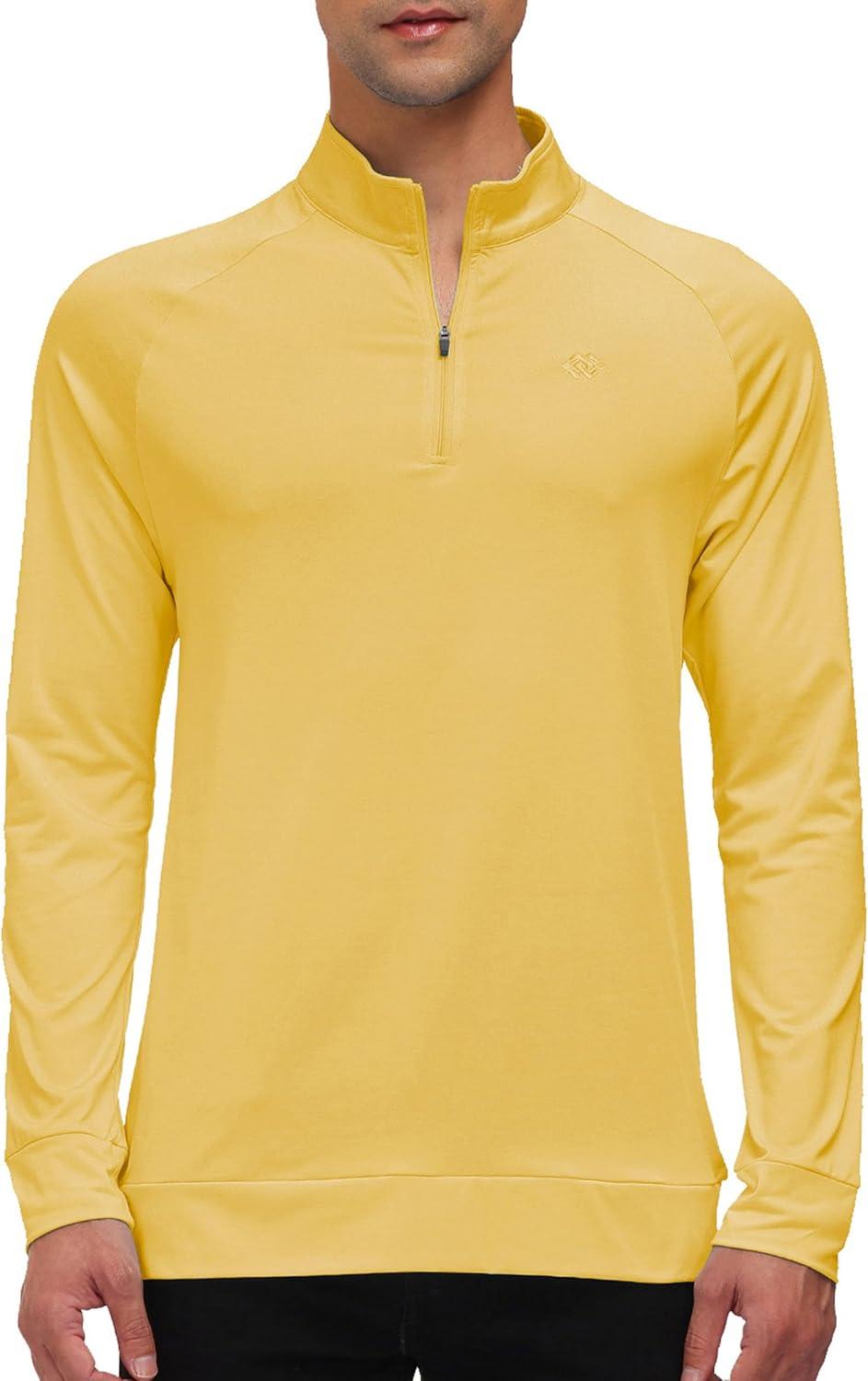 JINSHI Mens Long Sleeve Quarter Zip Pullover Stand Collar Active Golf Polo Shirt 1/4 Zipper Fleece Lining Workout Top(Yellow)
