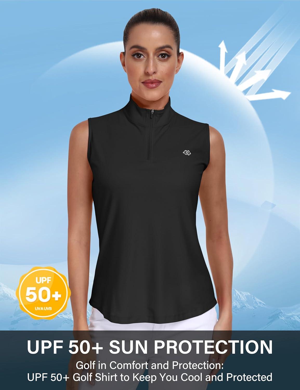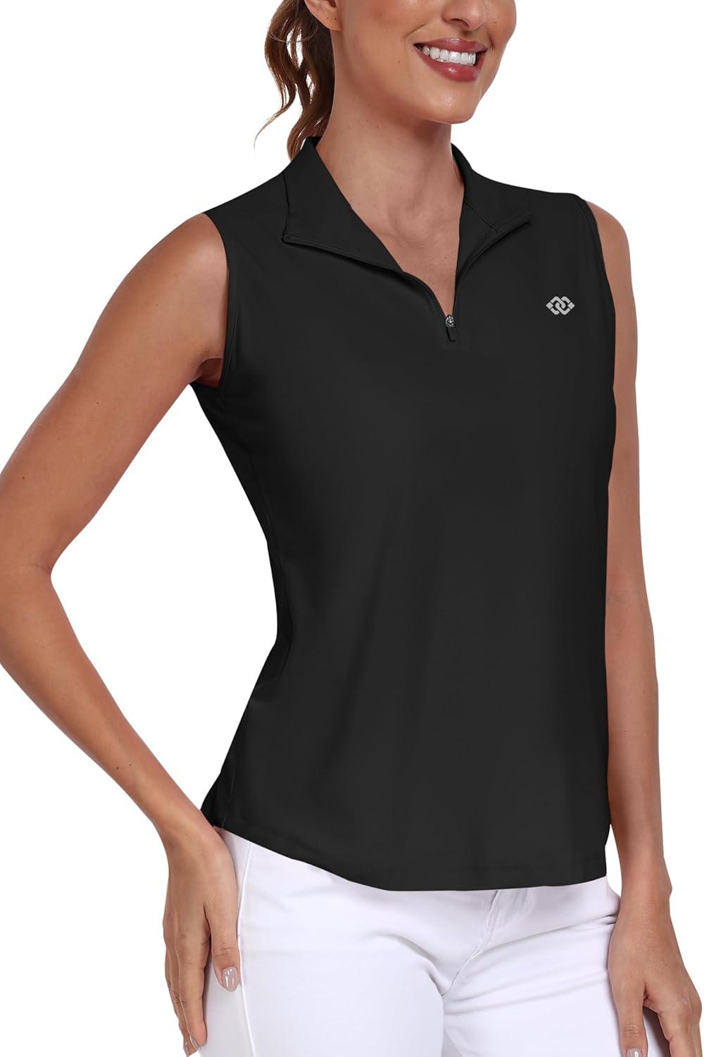 AIRIKE Sleeveless Golf Shirts for Women UPF 50+ Quarter Zip Quick Dry Tennis Workout Tank Tops(2025-black)