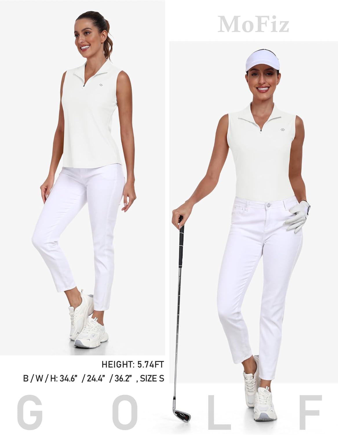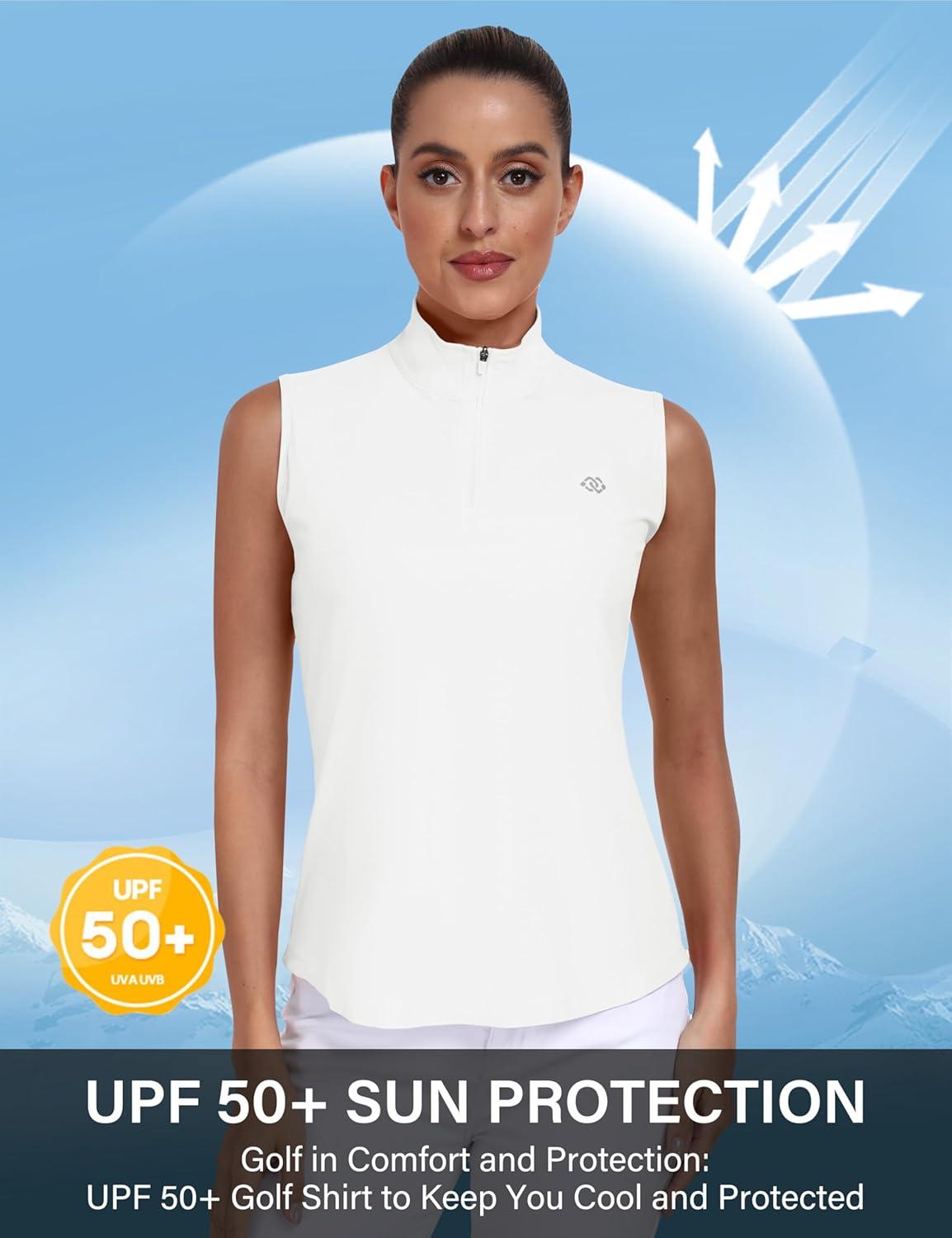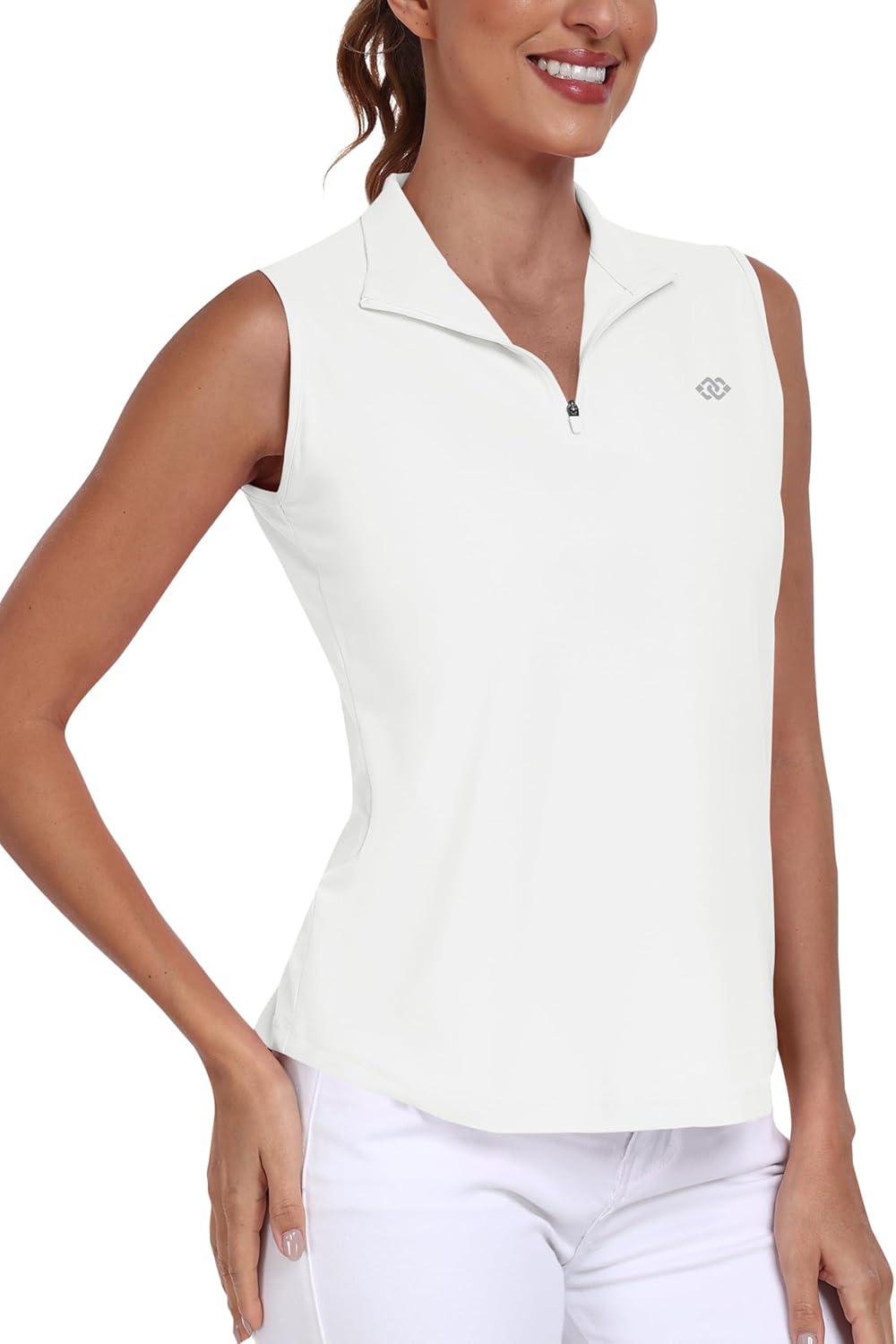 AIRIKE Sleeveless Golf Shirts for Women UPF 50+ Quarter Zip Quick Dry Tennis Workout Tank Tops(2025-white)