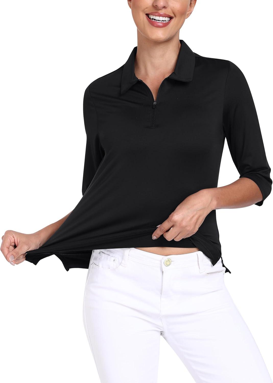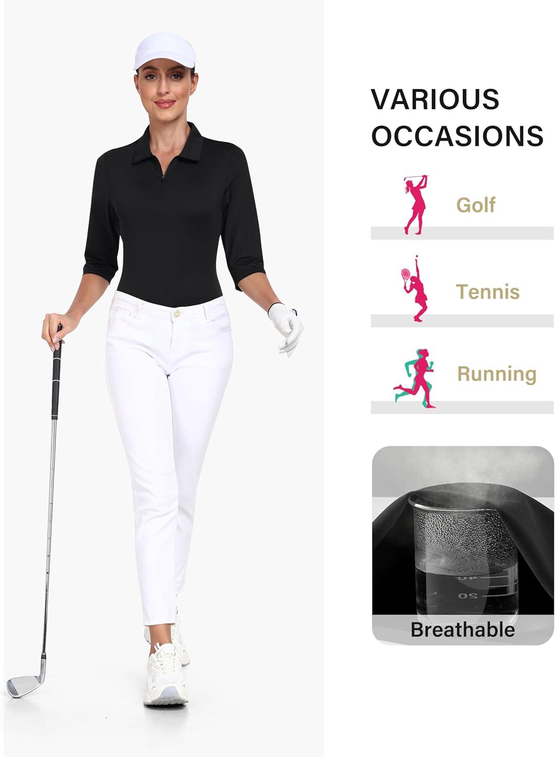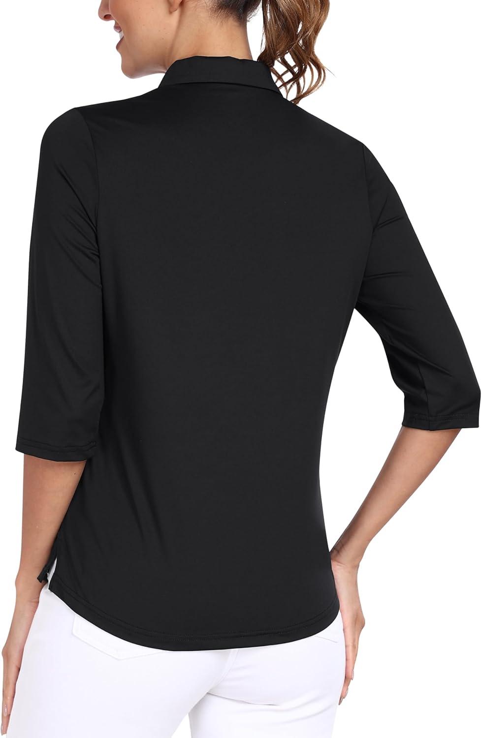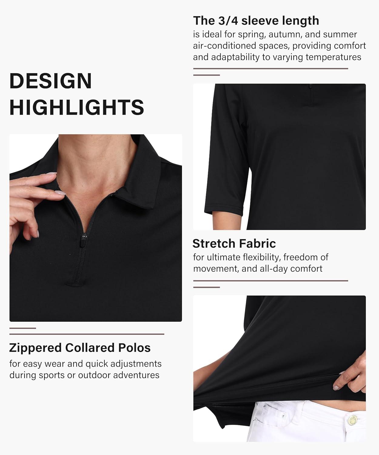 MoFiz 3/4 Short Sleeve Golf Shirt for Women Quick Dry Quarter Zip Athletic Polo Shirts Lightweight Workout Casual Tops(2025-black)