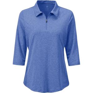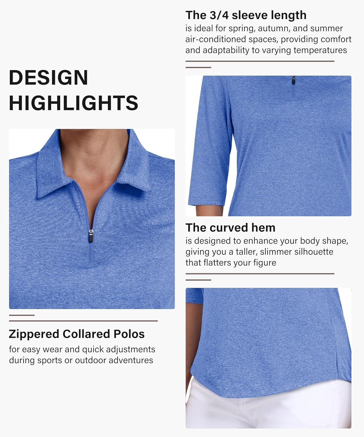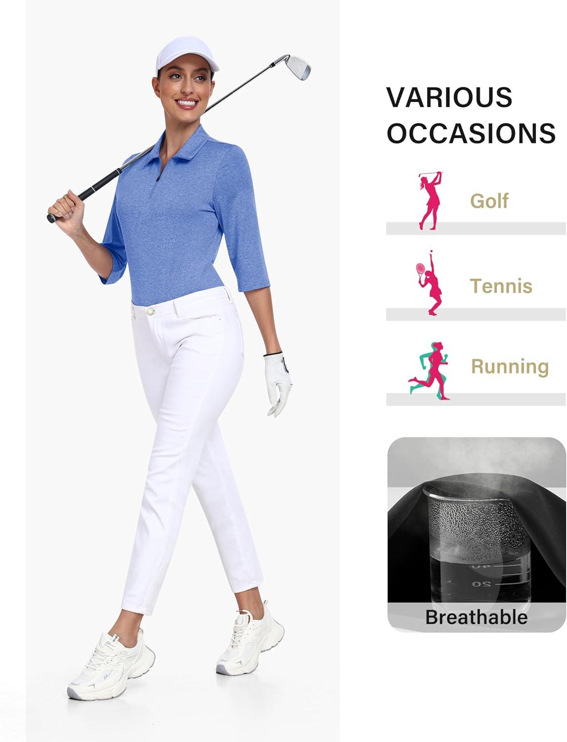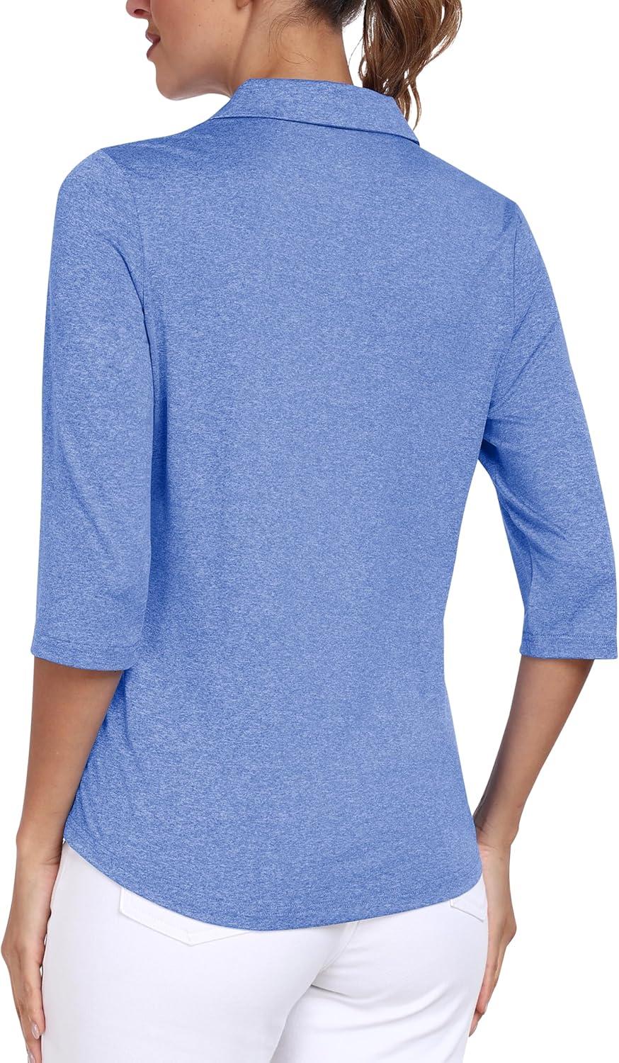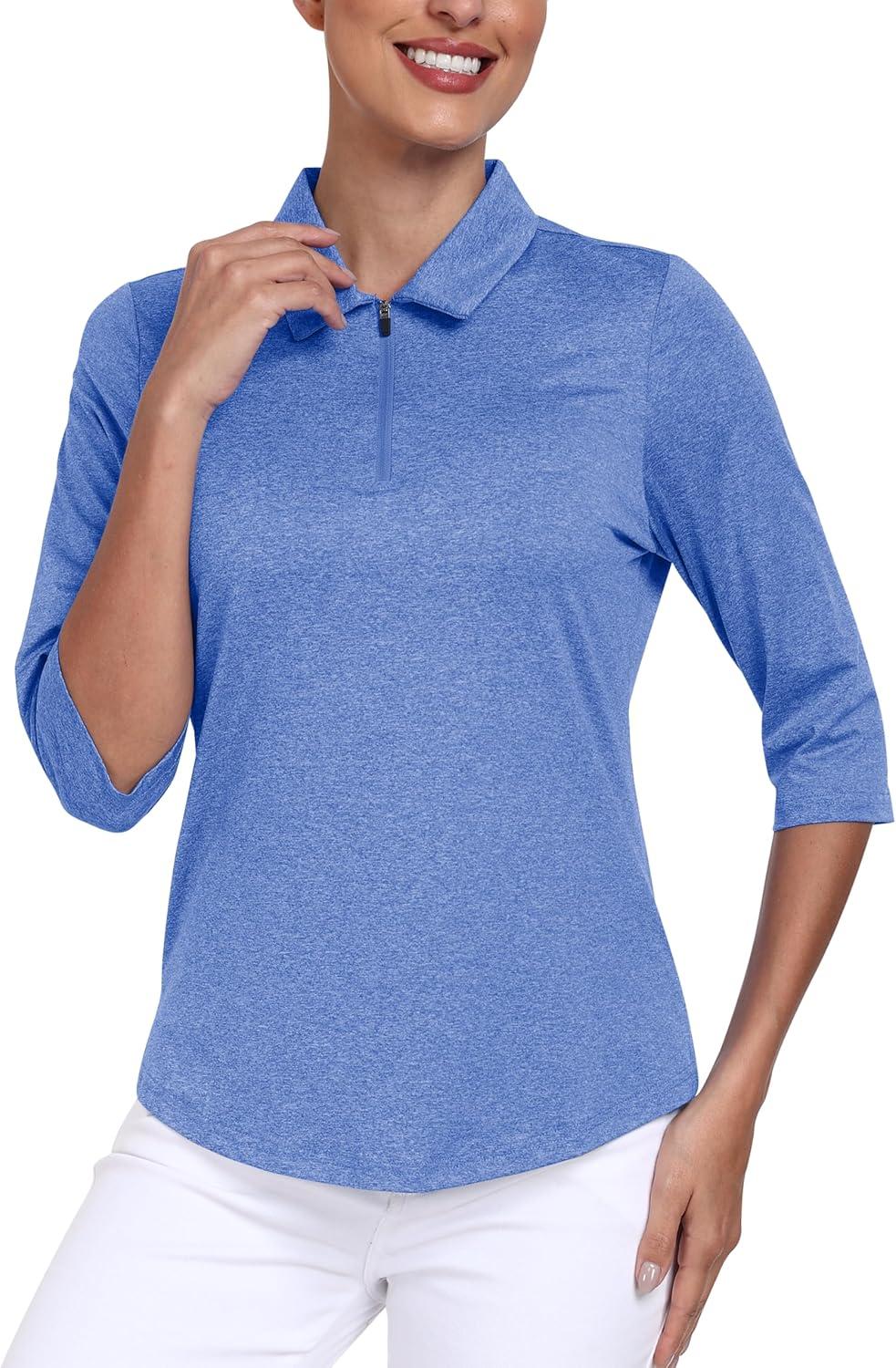 MoFiz 3/4 Short Sleeve Golf Shirt for Women Quick Dry Quarter Zip Athletic Polo Shirts Lightweight Workout Casual Tops(2025-blue)