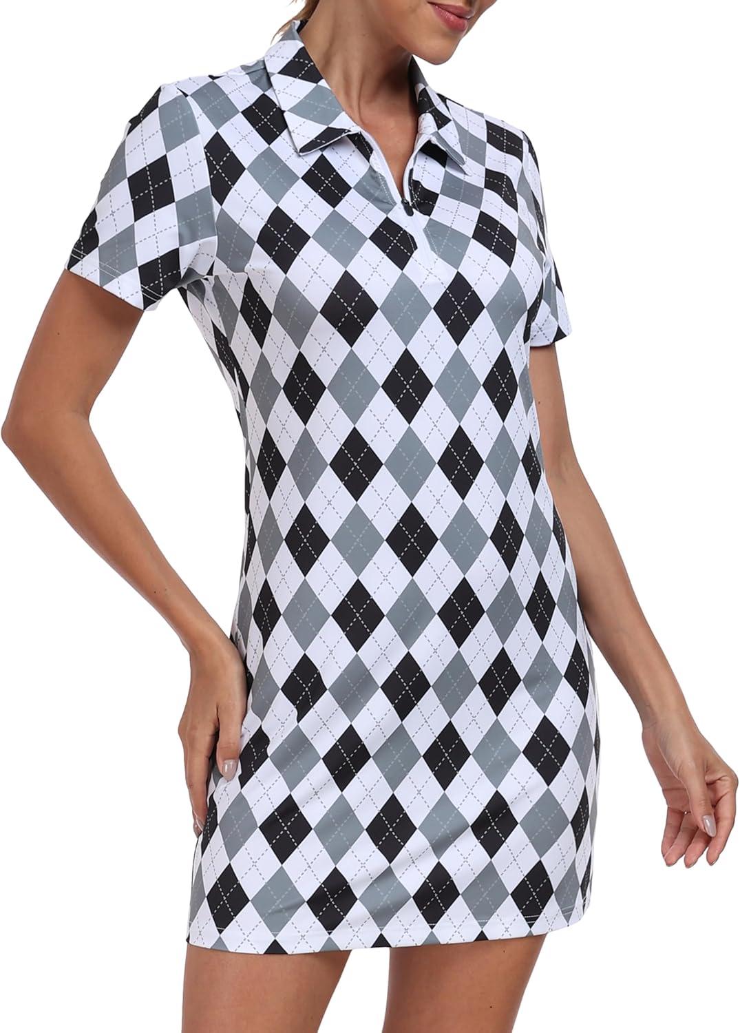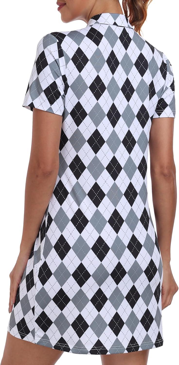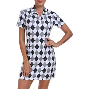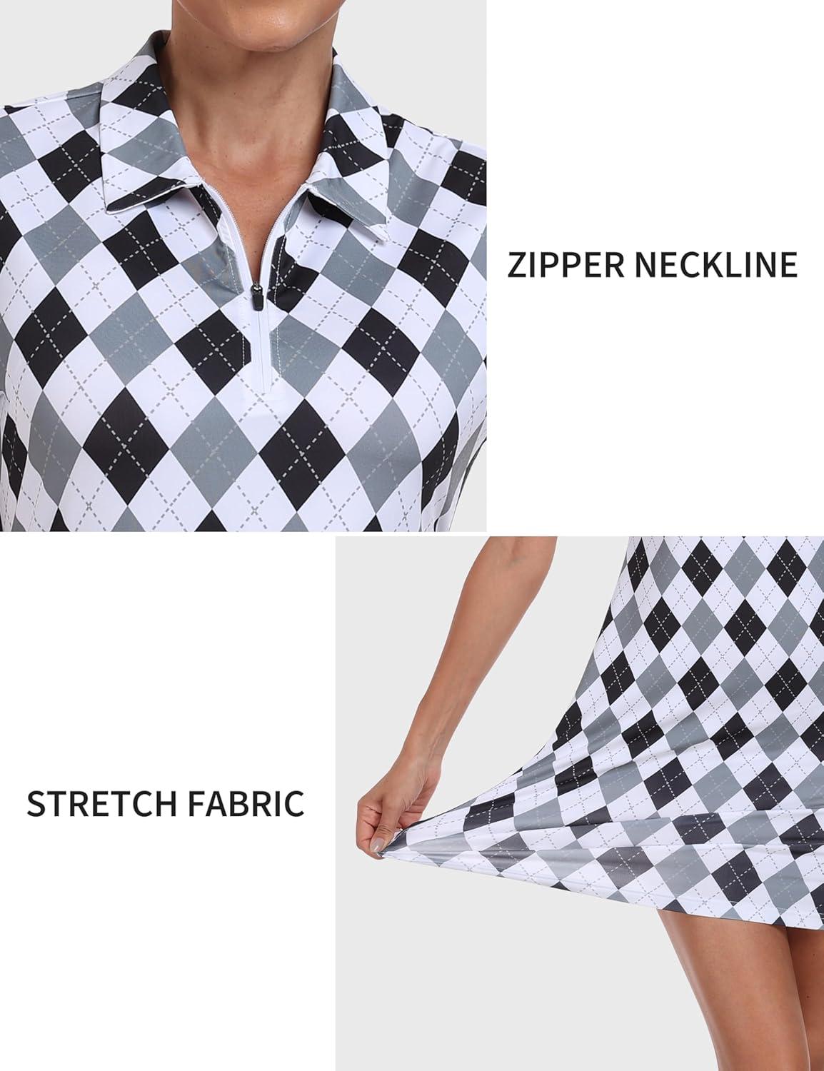 JINSHI Women’s Golf Dress Quick Dry V Neck Short Sleeve Zip Up Workout Athletic Tennis Dresses