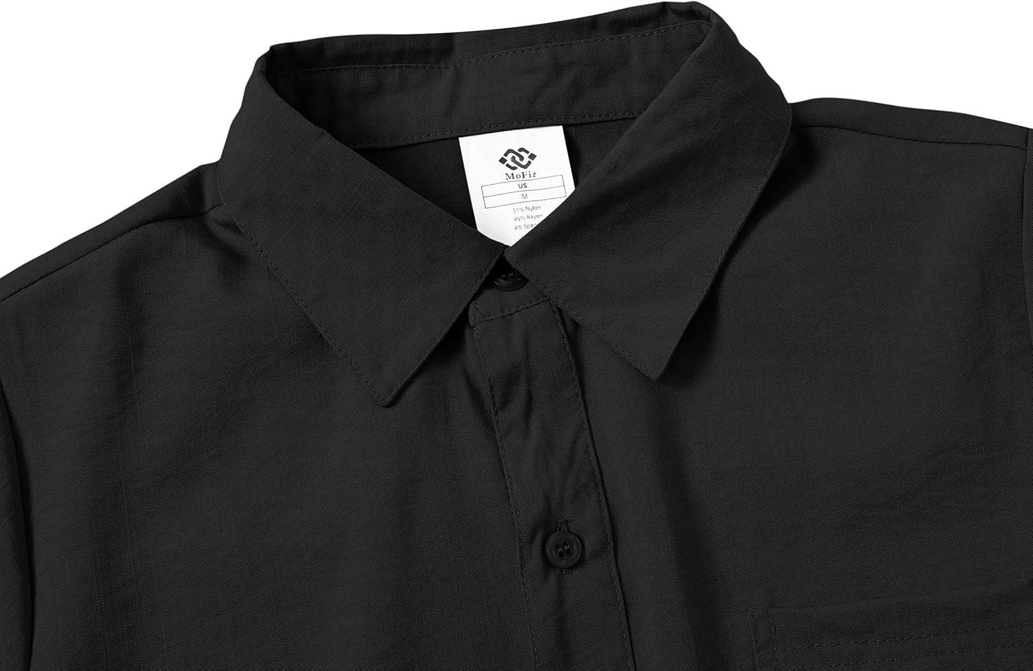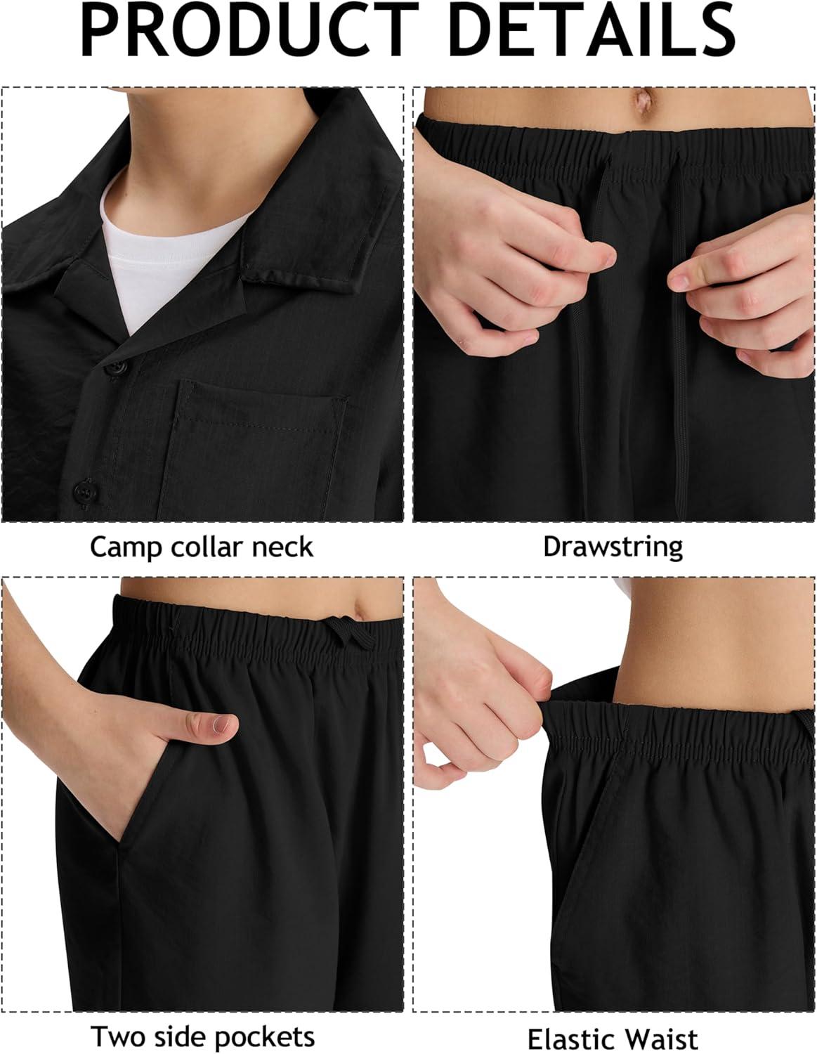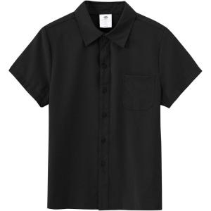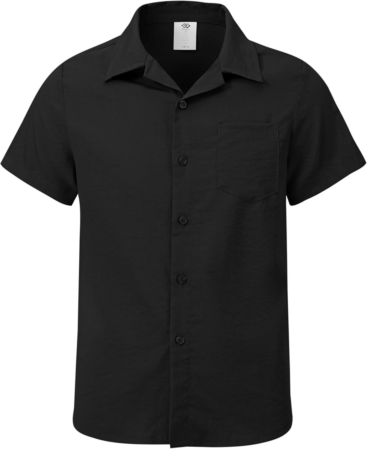 MoFiz Boys Short Sleeve Button Down Shirts Collared Beach Shirt(Black)